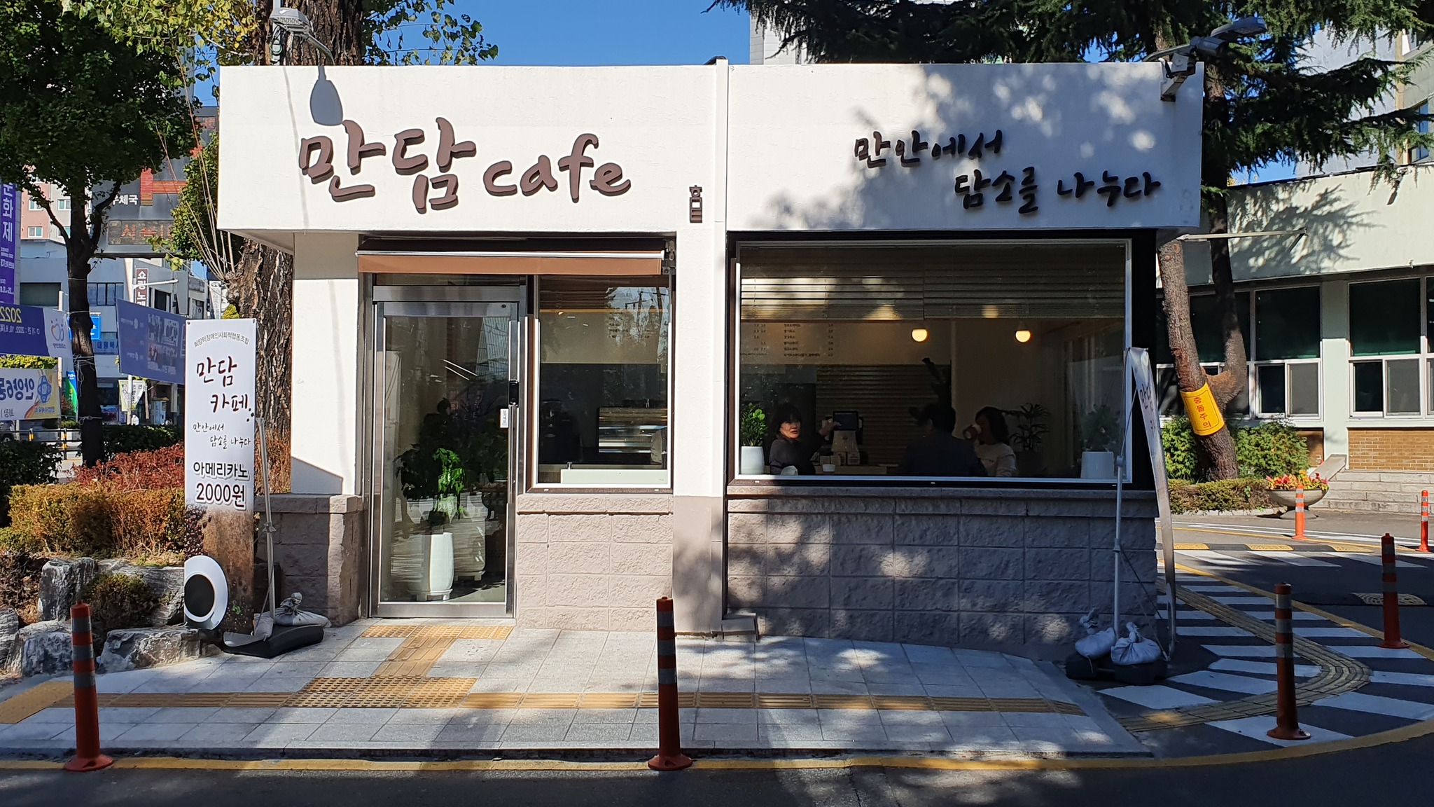 2024.09.30/ #만담카페 #안양 #만안구청/ 만안구청 입구 이태리포플러나무 아래 경비실 공간을 개조해 새롭게 꾸몄던 만담카페가 어느새 2주년 맞이해 이벤트 행사를 하네요. 만담카페는 성인이 된 청년 발달장애인이 교육과 훈련을 통해 사회인으로 성장하도록 발달장애인 부모들이 협력하여 희망터 사회적협동조합에서 운영하는 곳입니다. 앞으로도 따뜻한 관심과 애정을 부탁드립니다. "청년 발달장애인들을 응원합니다"