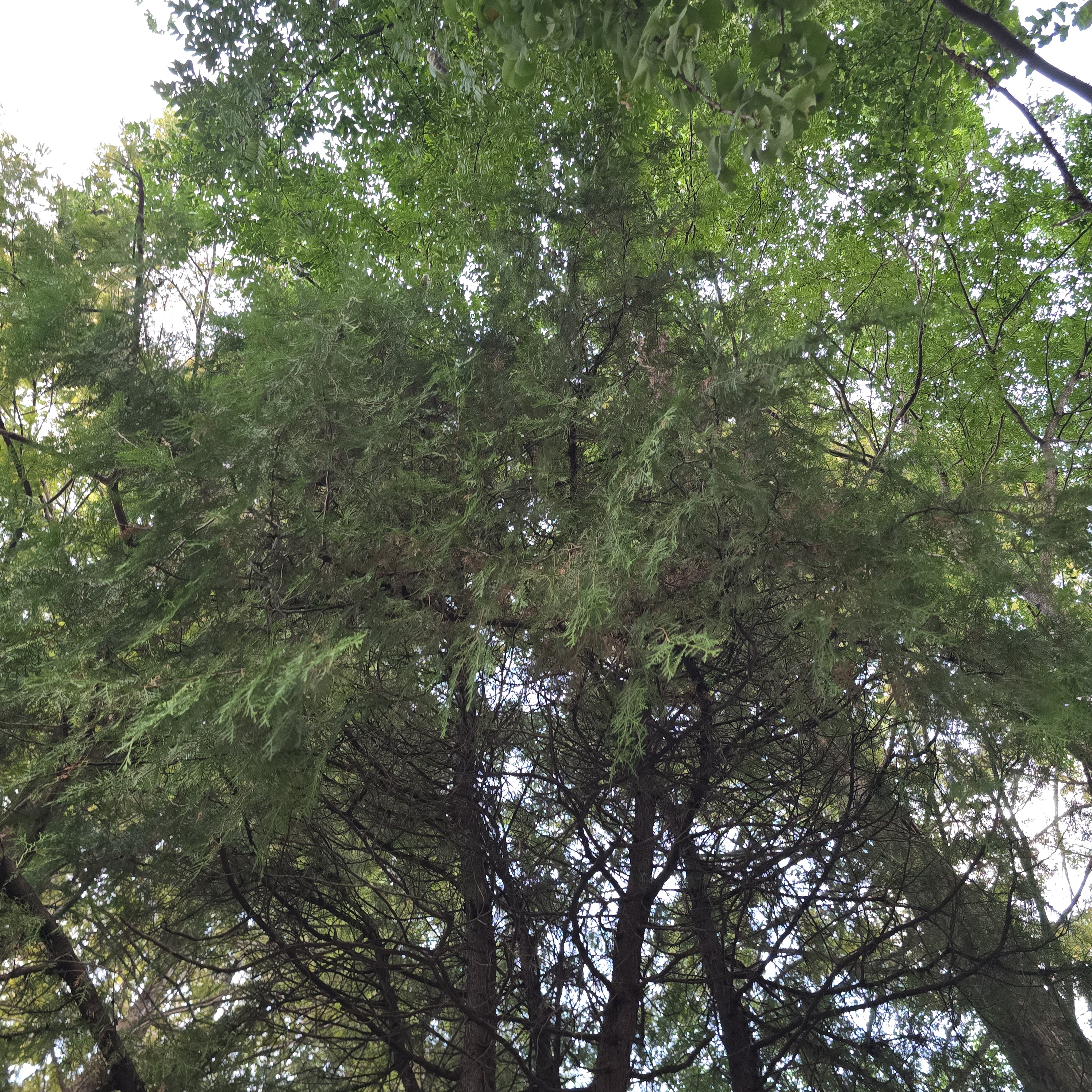 2024.10.01/ #도시기록 #옛검역원 #미개방구역/ 사람의 발길이 오랫동안 끊겻던 안양6동 옛검역원내 철조망 안쪽 제한구역. 해질 무렵아라 사진이 흐릿하지만 나무는 빛을 차단할 만큼 하늘을 가리고 수풀은 마치 밀림을 연상케한다.