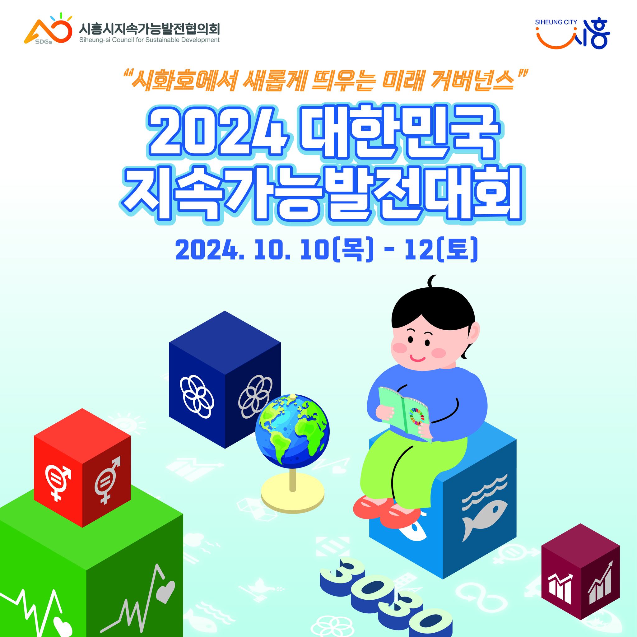 ‘2024 대한민국 지속가능발전대회’가 오는 10월 10일부터 12일까지 사흘간 시흥시 일대(거북섬 웨이브파크 광장, 서울대학교 시흥캠퍼스 등)에서 개최된다.