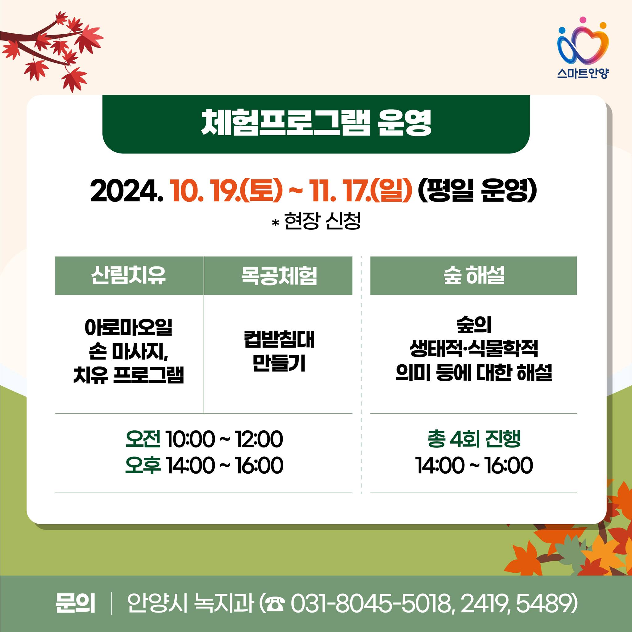 안양시는 지난해 수목원을 찾은 시민을 대상으로 조사한 결과 시범 개방에 대한 만족도가 높은 것으로 나타나자, 지난달 서울대 측과 실무협의를 통해 올가을에는 역대 최장기간 동안 개방하기로 했다.