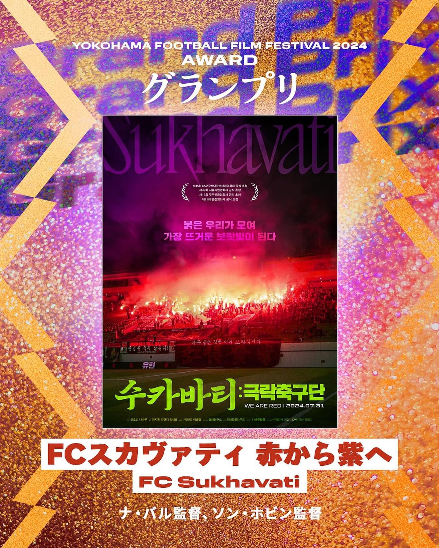 프로축구 FC안양의 공식 서포터즈 ‘A.S.U. RED’의 역사와 여정을 다룬 나바루, 선호빈 감독이 제작한 다큐멘터리 영화 <수카바티 극락축구단>이 올해 열리는 요코하마축구영화제에서 대상에 해당하는 ‘그랑프리’를 수상했다.