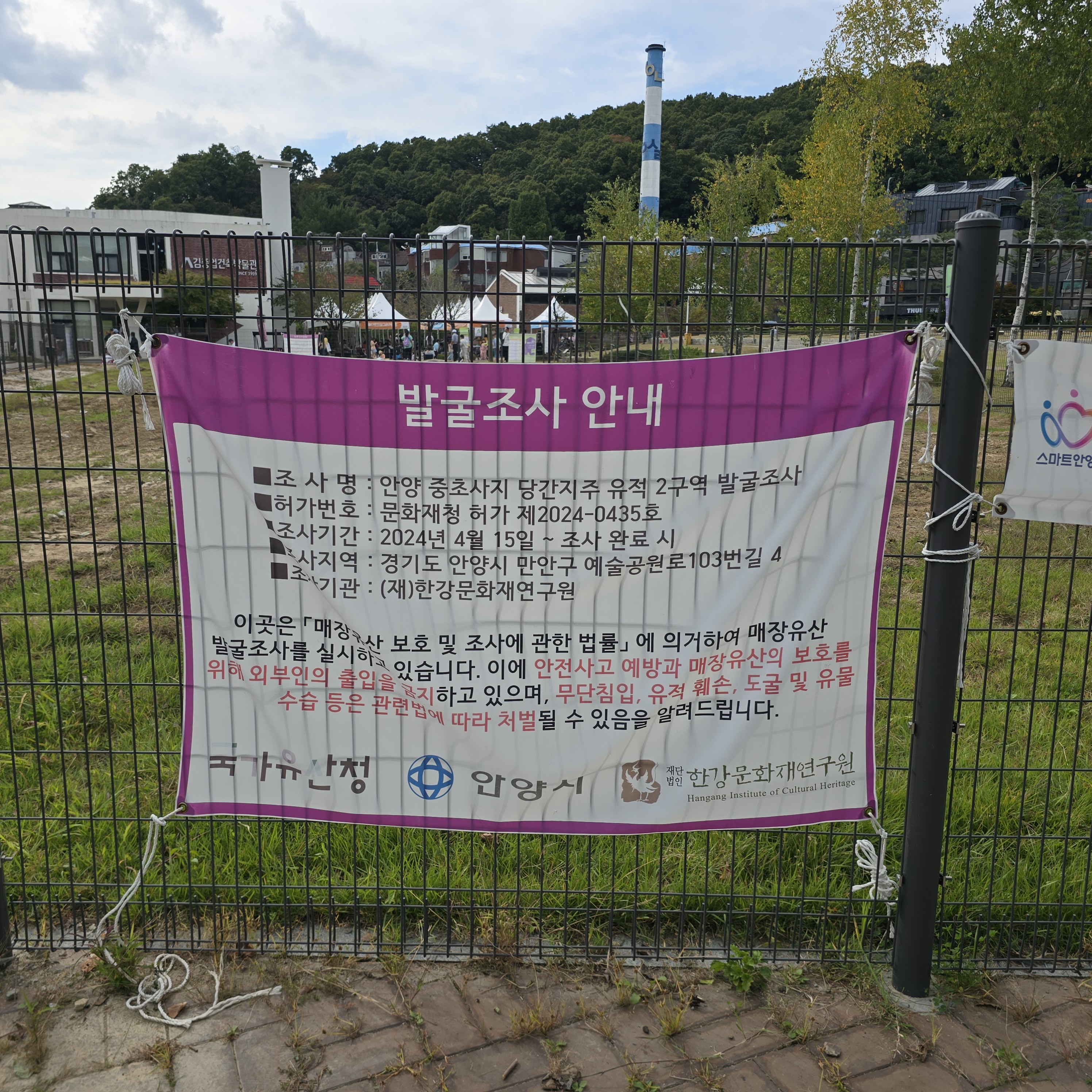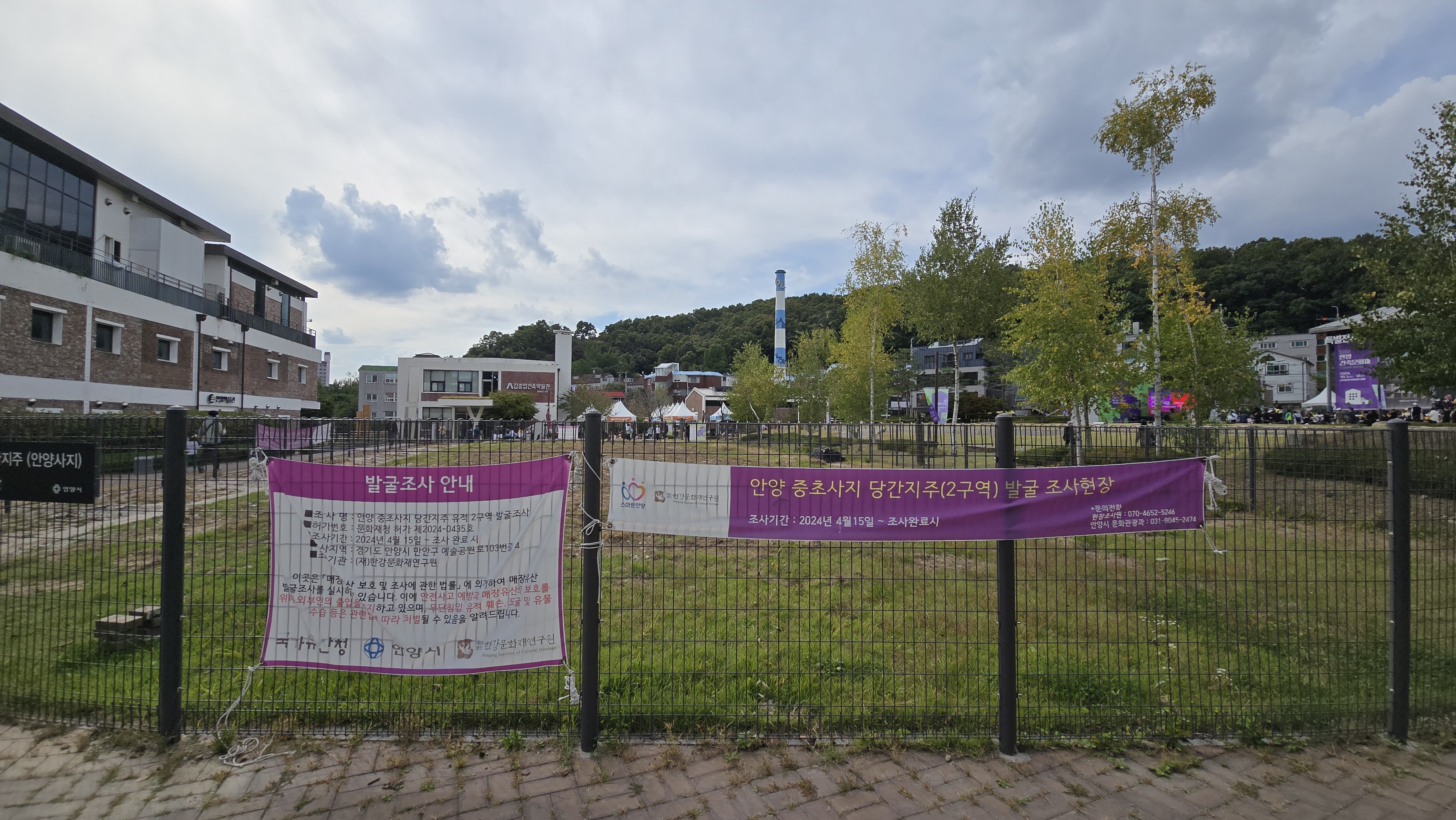 2024.10.09/ #도시기록 #안양 #중초사지 #안양사지 #문화유산 #발굴조사/. 안양예술공원 중초사지(안양사지) 안양박물관 북쪽 건물 기둥 있던 지리에 대한 문화재 발굴작업 시작. 국가유산청.안양시.한강문화재연구원