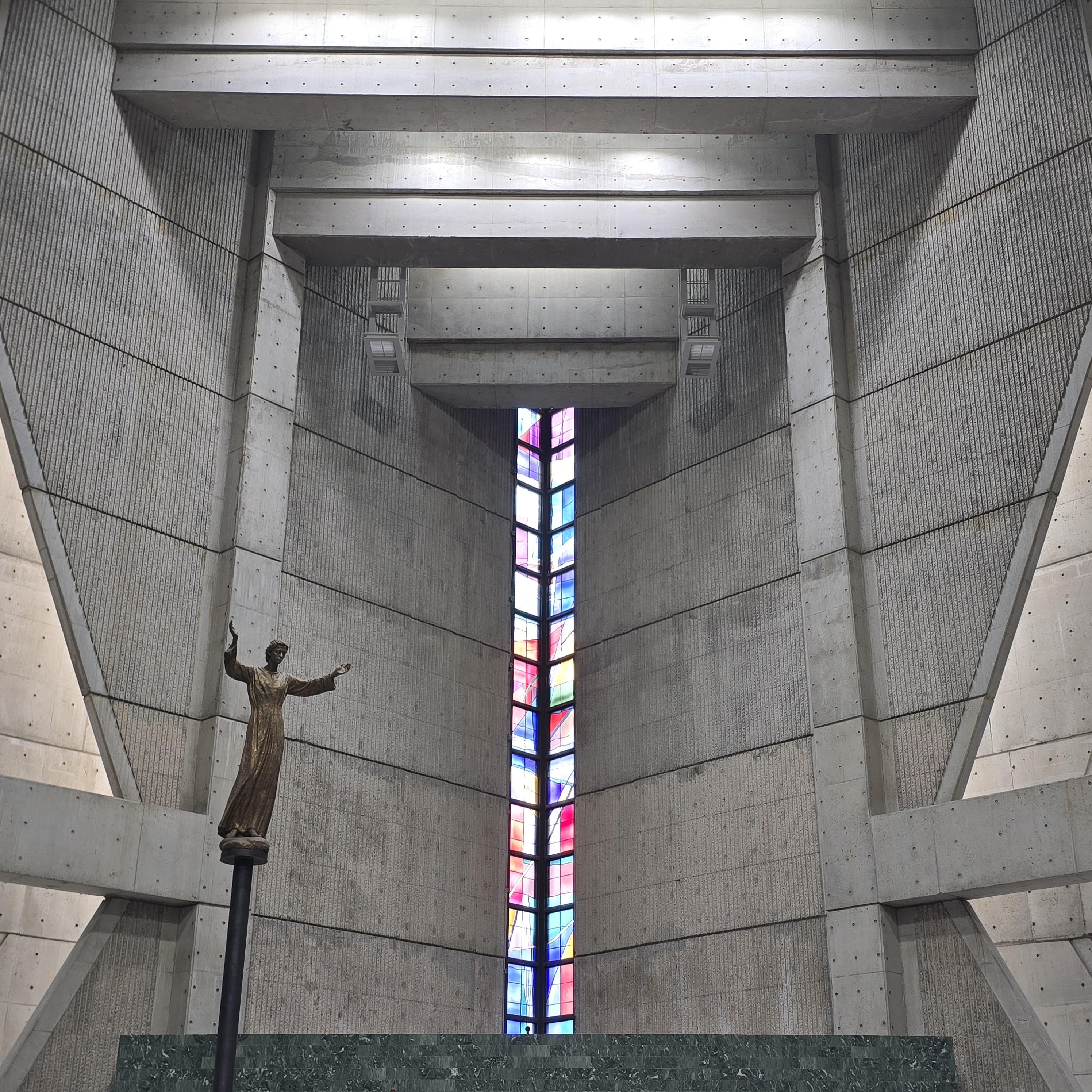 최종단계에서 2,500석으로 줄어들기는 하였지만 대규모의 신자석(약 36m×54m)을 무주공간으로 처리하기 위한 구조상의 특수해를 생각하였다. 일반적인 구조개념으로는 평범한 건물밖에 되지 않아 종교건물이 갖는 특수한 형태와 내부공간, 구조 등을 고려하여 사각형의 대각선 사용을 기본적으로 구상하게 된것이다.