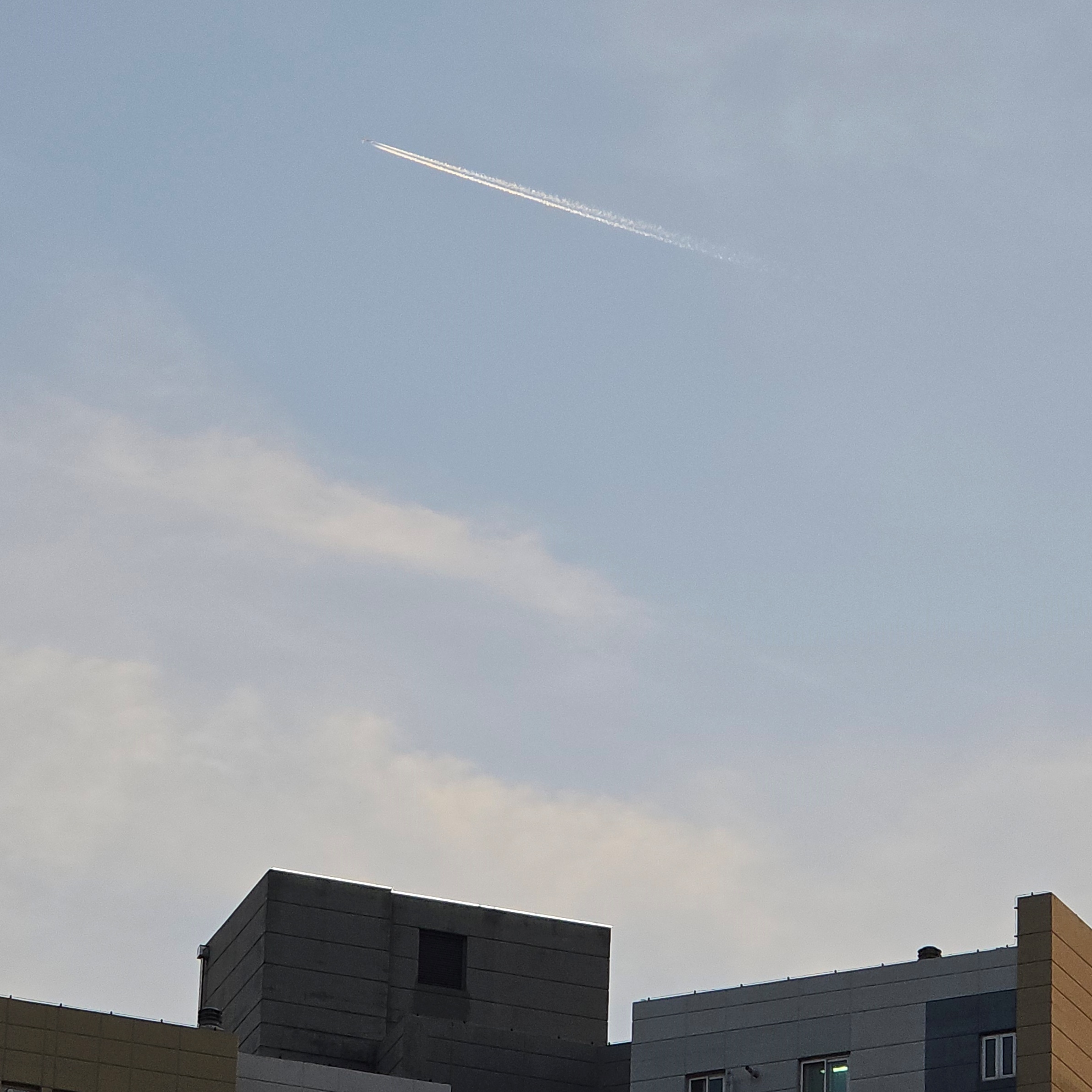 높은 하늘에 마치 하얀 백묵으로 선을 긋듯 하늘 높이 날아가는 비행기들은 대부분 국제선 비행기들이다. 일본에서 이륙한후 한반도 영공을 통과해 중국이나 유럽으로 가는 여객기도 있고, 인천공항에서 이륙해 미주쪽으로 가는 비행기도 있는듯 싶다.