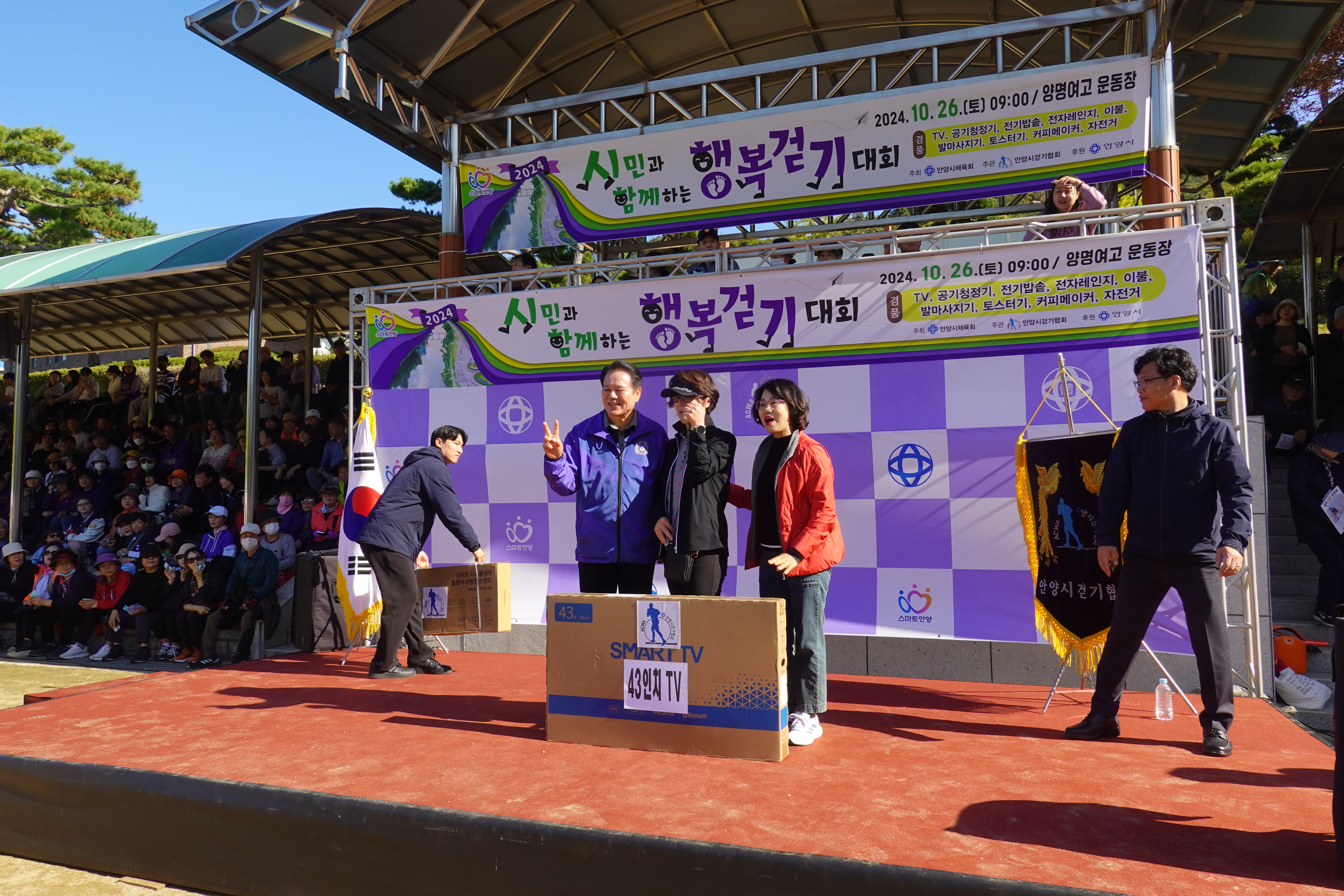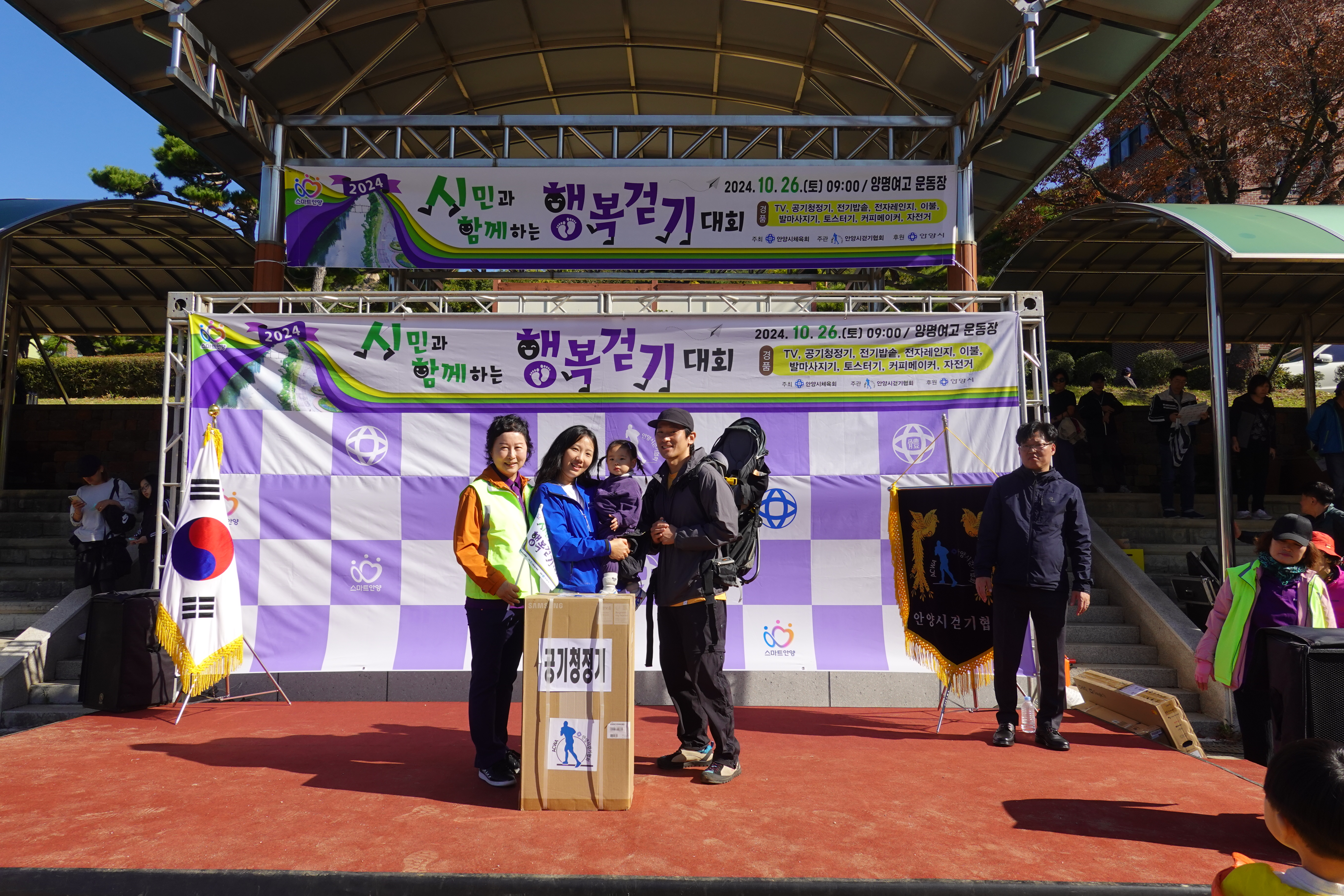 안양시걷기협회는 이번 행복걷기대회에 참가한 시민을 위해 TV, 공기청정기, 전기밥솥, 전자레인지, 자전거, 쌀 등 다양한 경품을 준비했다.