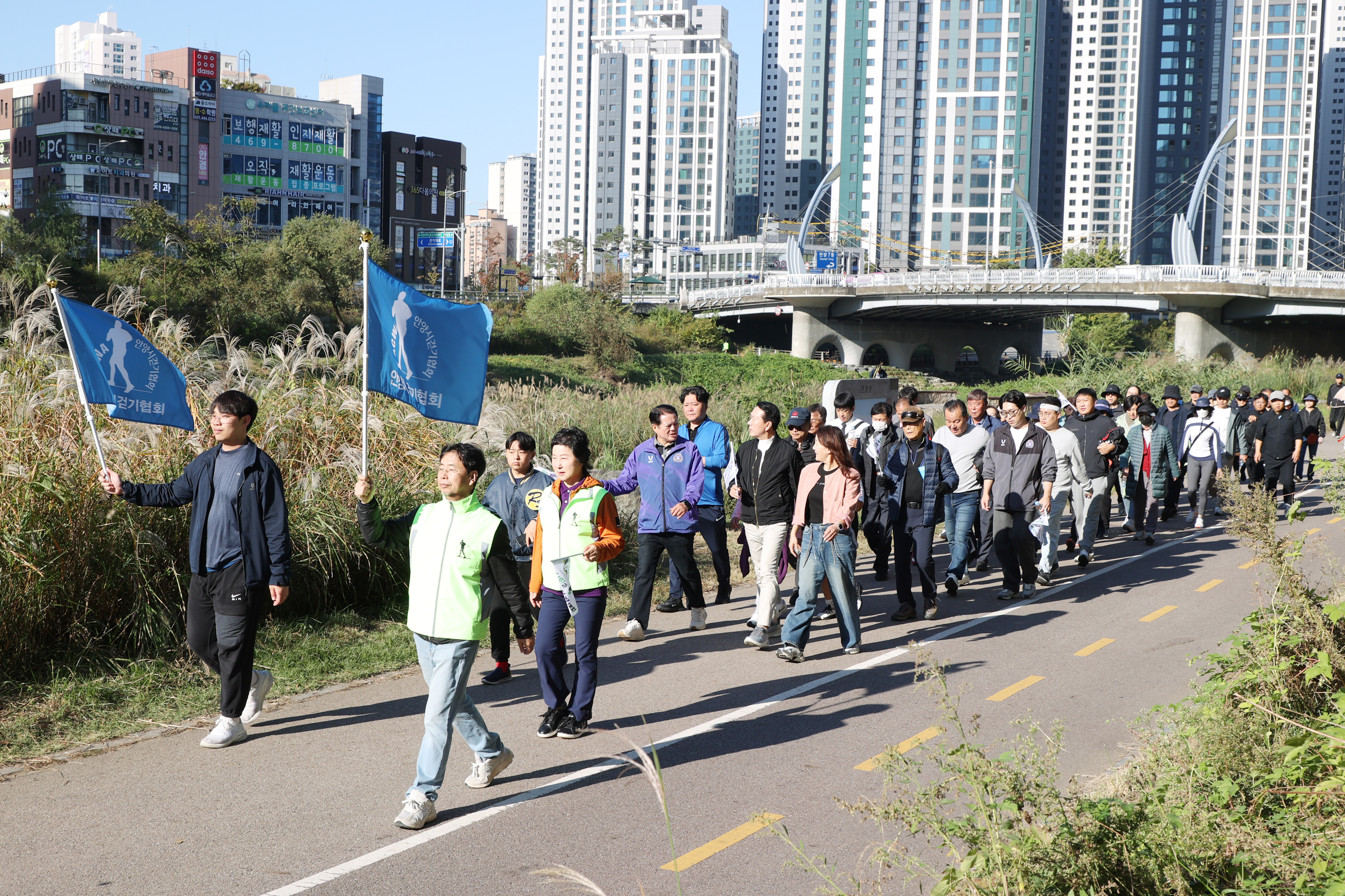 안양시체육회가 주최하고 안양시걷기협회가 주관한 이날 행복걷기대회는 안양2동 양명여고 운동장을 출발해 비산대교를 지나 세월교를 반환점으로 되돌아오는 안양천 약 3.5㎞ 코스로 약 1시간이 소요됐다.