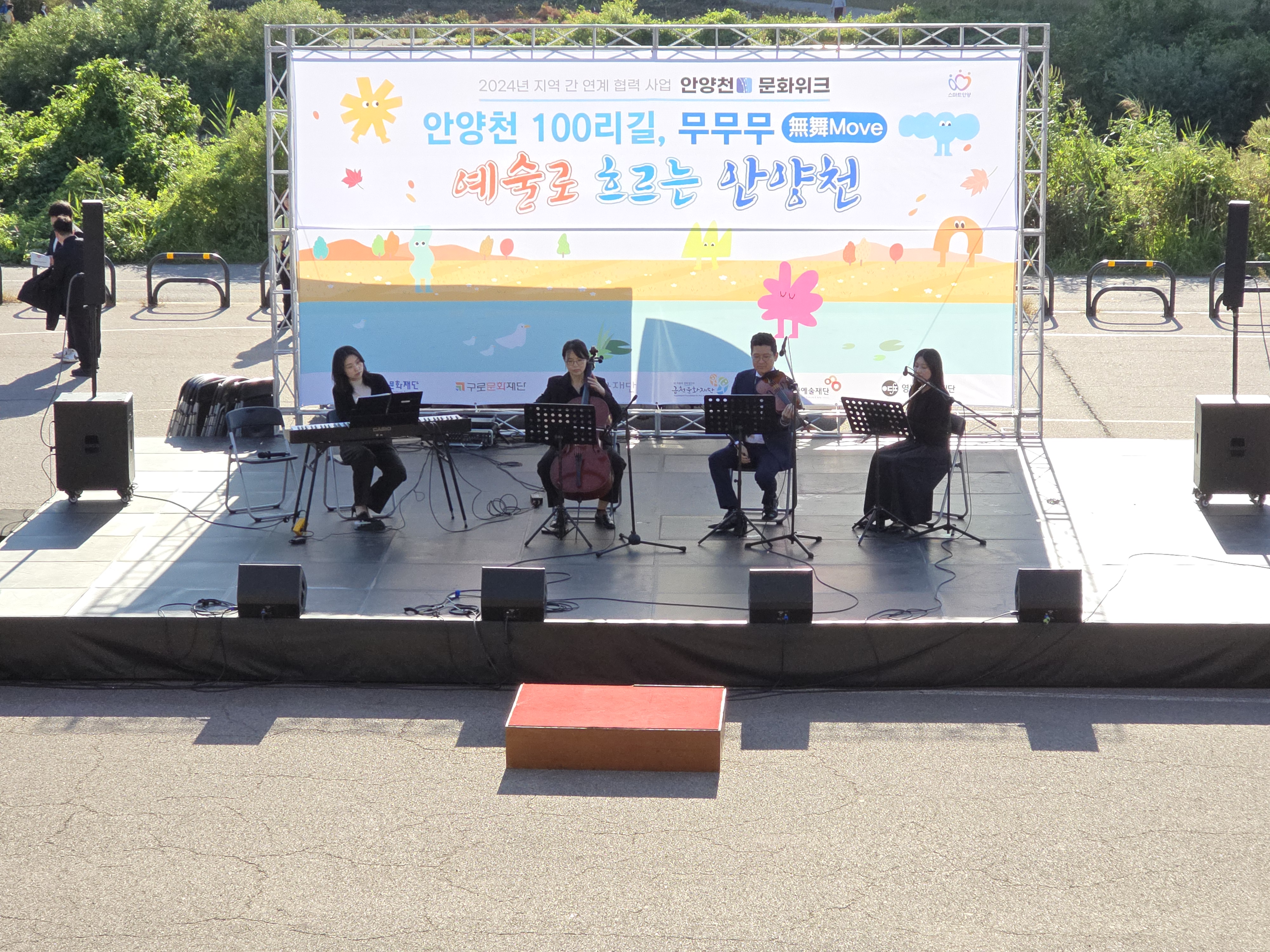 안양문화예술재단이 지난 10월 26일 오후 안양천이 흐르는 석수동 충훈2교 다리밑에서 <안양천 문화위크> 사업의 일환으로 안양천 100리길 무무무-예술로 흐르는 안양천을 개최했다.