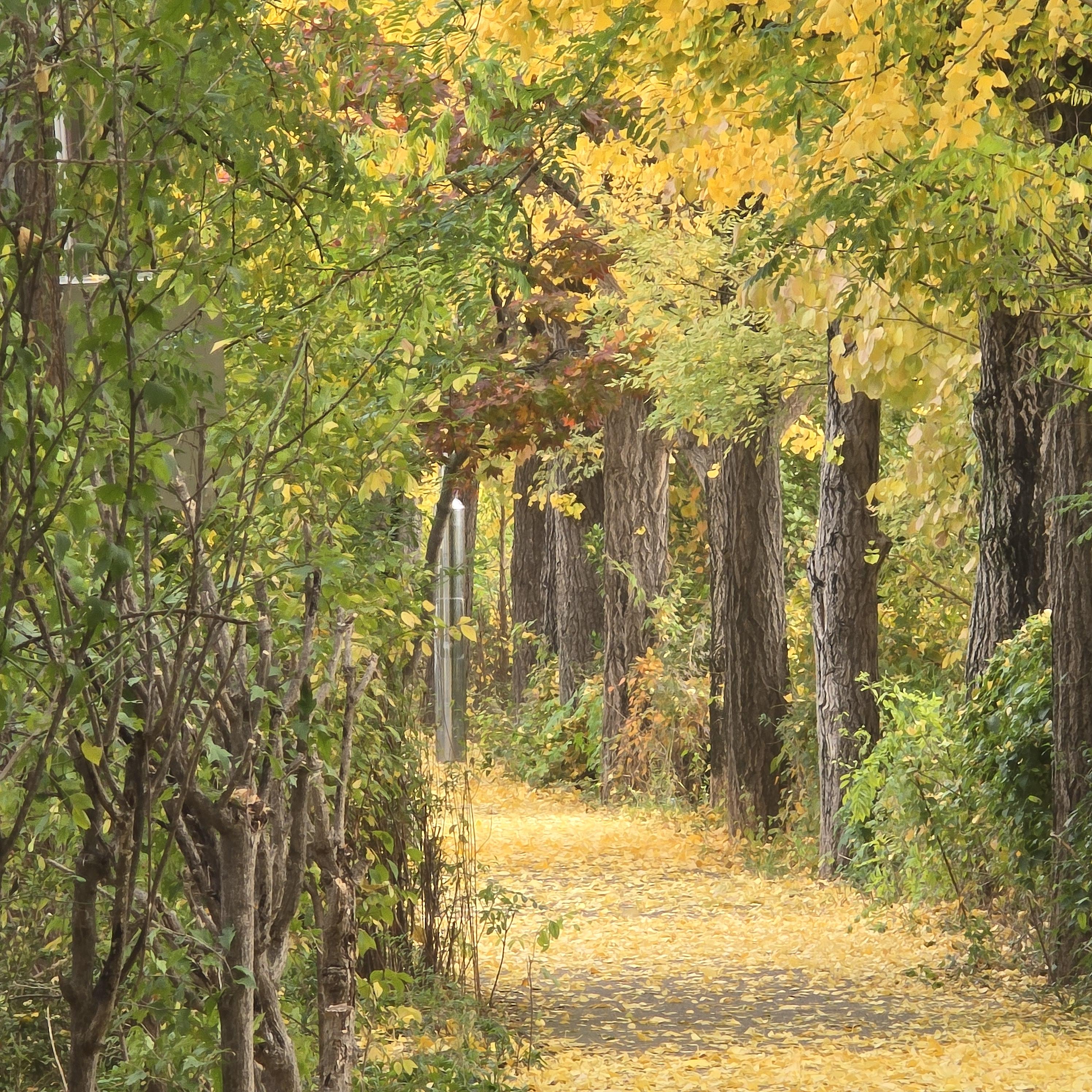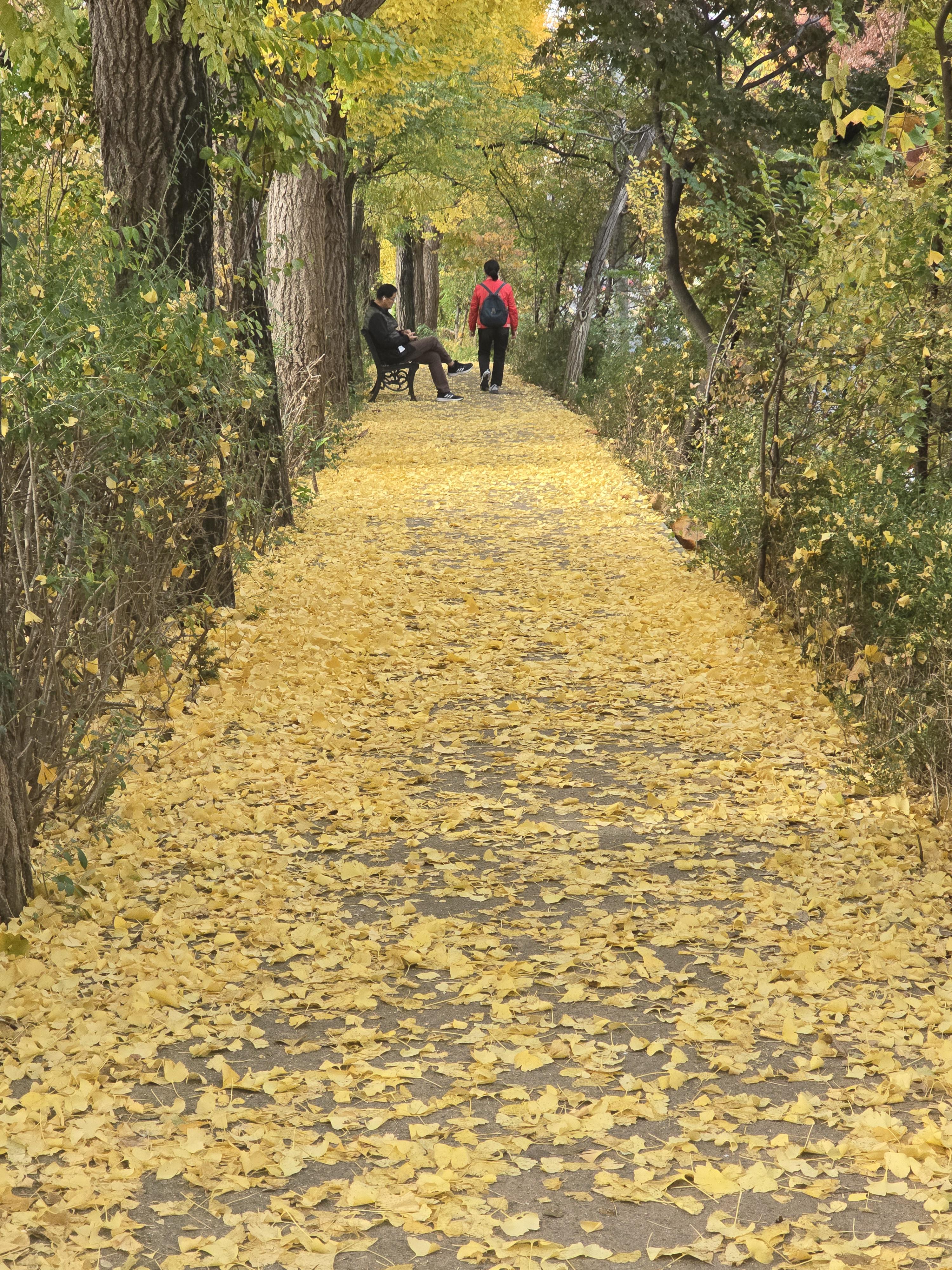 2024.11.15/ #도시기록 #안양 #학의천 #제방길/ 학의천 비산인도교부터 수촌교 꾸간의 북쪽 재방위 산책길에 마치 노란색의 카페트를 깔아놓은듯 은행나무 낙엽이 깔려 장관입니다. 은행잎을 밟고 걷다보면 간혹 은행이 톡톡 터지는 소리가 들리기도 합니다.