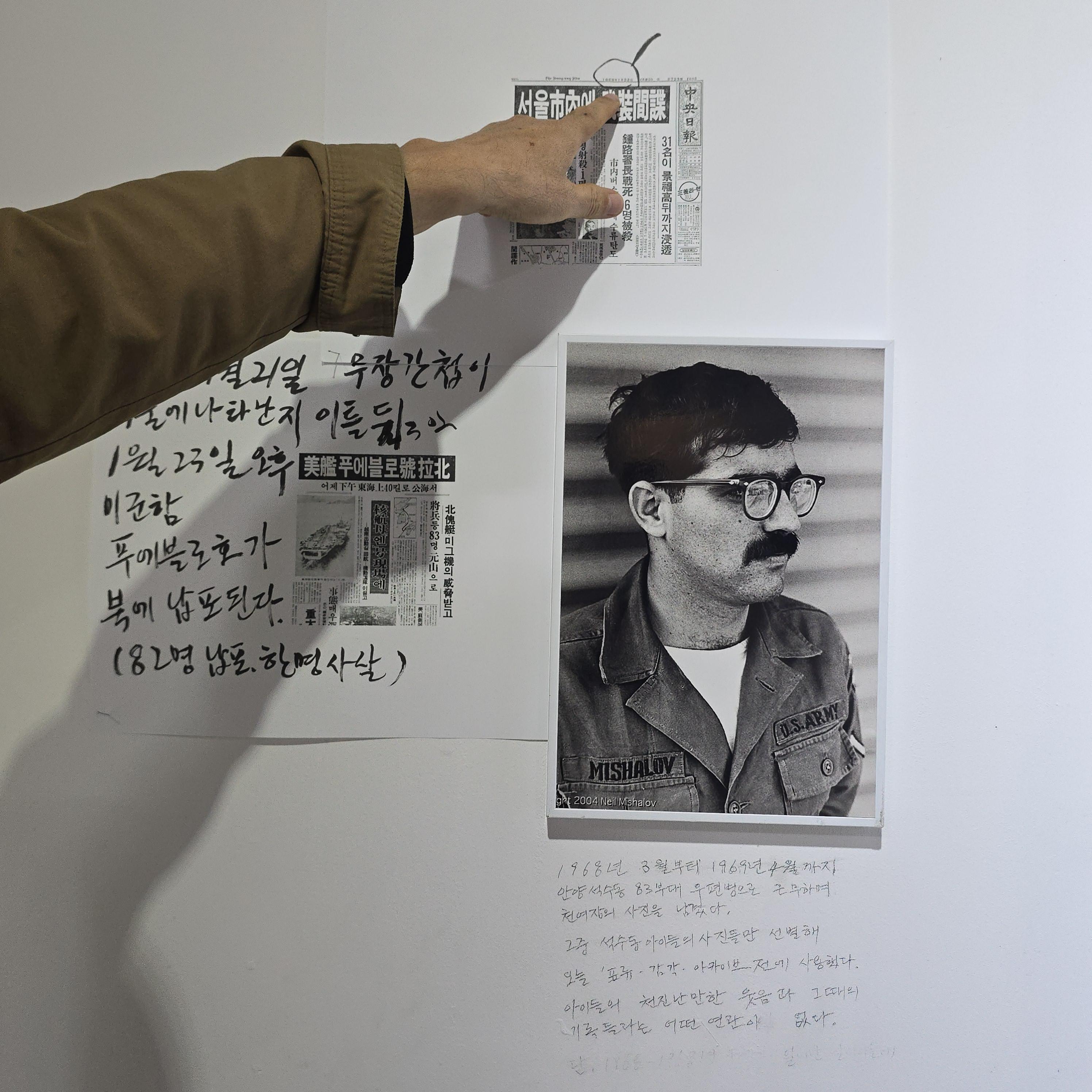 마지막으로 표류의 기억은 어린 시절 반복해서 꾸었던 악몽에 관한 것인데, 최근 작가는 이 악몽을 주제로 『소년, 날다!』(책마을 해리, 2024)라는 그림책을 출판하기도 했다. 이 세션에는 그림책에 사용되었던 원화와 더미북 그리고 꿈의 직접적인 배경이 된 1968-1969년 사이의 일어난 간첩사건들과 그로 인해 파생된 사회적 이슈들과 그가 목격한 한미연합군사훈련 ‘포커스 레티나(Focus Retina)’의 아카이브가 함께 전시되어 있다, 그림책에 그려진 그림은 작가의 ‘근원적인 공포’에 관한 것으로 표류하던 중에 그려낸 것이다.
