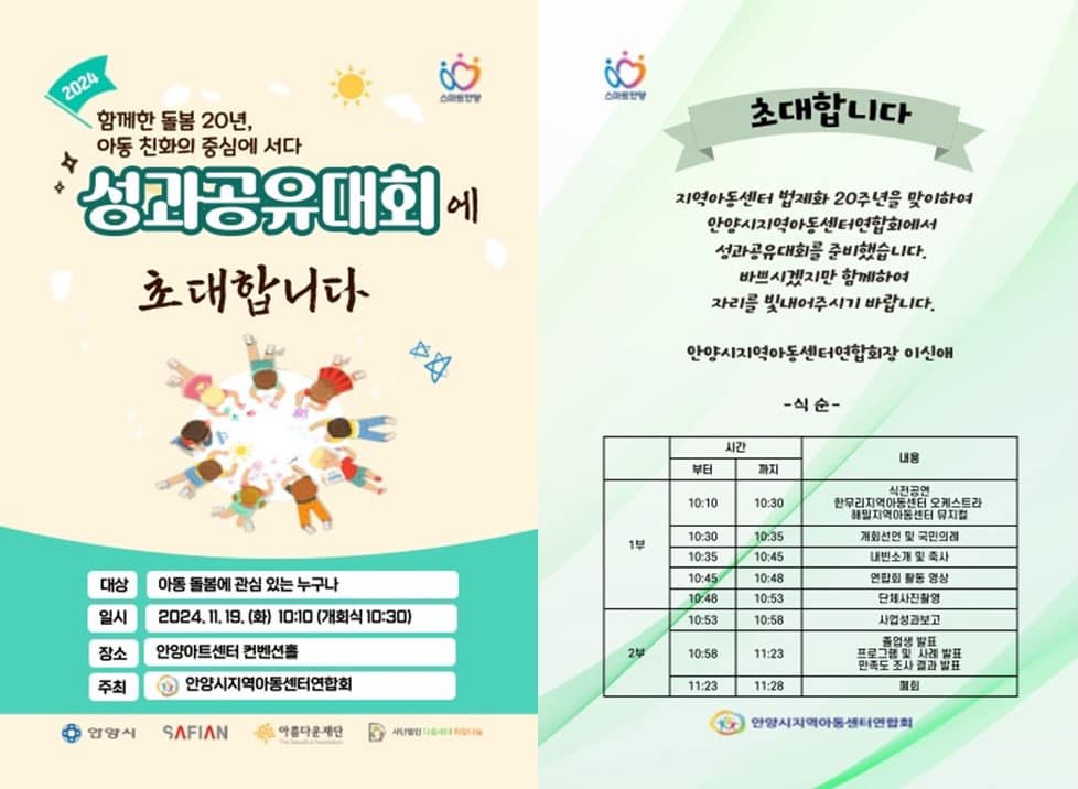 | [20241110]안양시지역아동센터연합회 19일 성과공유대회 (0) | 2024.11.10 |