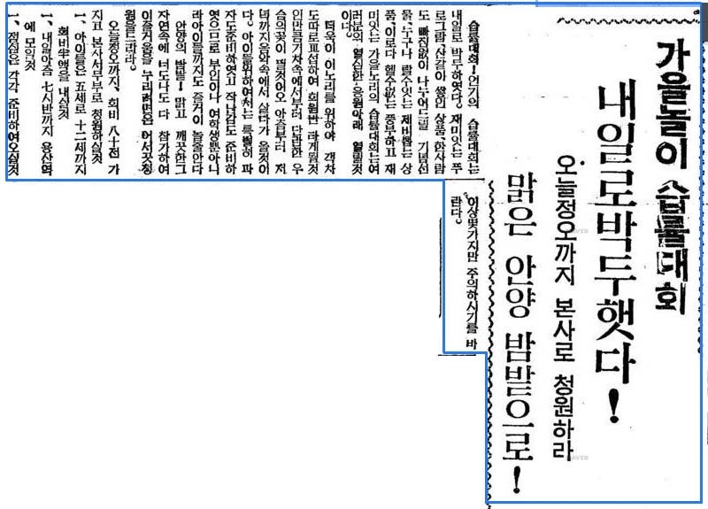 [옛신문]제1회 안양 밤줍기대회 참관 후기(1933.10.04 동아일보)