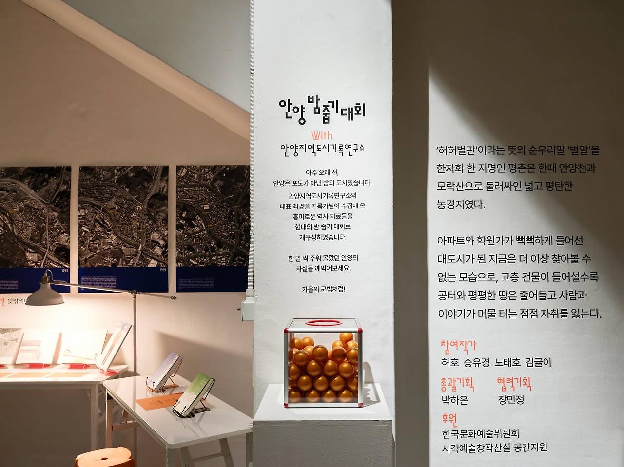 100년전 안양은 밤나무 천지였다. 안양의 역사와 변천사를 조사하다 보면 숨겨지고 감추어진 이야기들이 새롭게 드러난다. 그중 하나가 1960년대 교과서에 경기 5미중 하나로 안양포도가 실릴 정도로 안양하면 1960-70년대 포도가 유명했는데 그보다 앞서 1920-30년대에는 안양에서 '전국부녀자밤줍기대회' 가 열렸을 정도로 밤이 유명했었다.