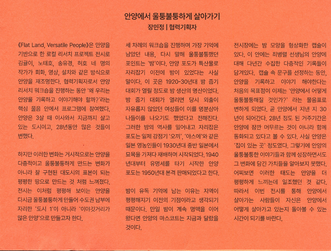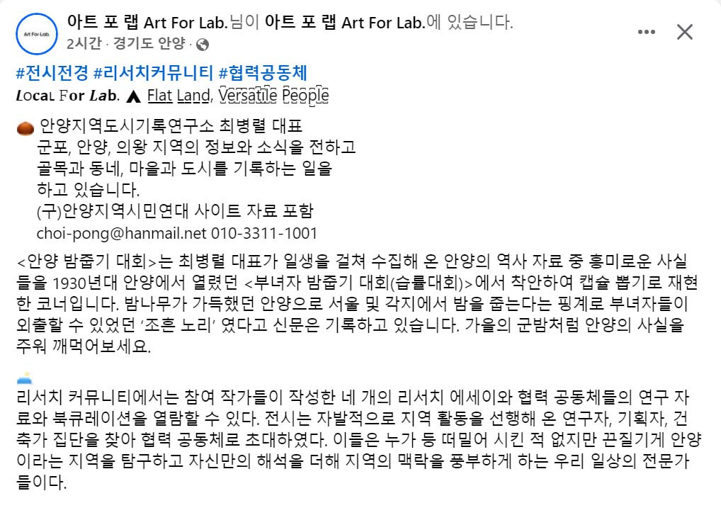 100년전 안양은 밤나무 천지였다. 안양의 역사와 변천사를 조사하다 보면 숨겨지고 감추어진 이야기들이 새롭게 드러난다. 그중 하나가 1960년대 교과서에 경기 5미중 하나로 안양포도가 실릴 정도로 안양하면 1960-70년대 포도가 유명했는데 그보다 앞서 1920-30년대에는 안양에서 '전국부녀자밤줍기대회' 가 열렸을 정도로 밤이 유명했었다.