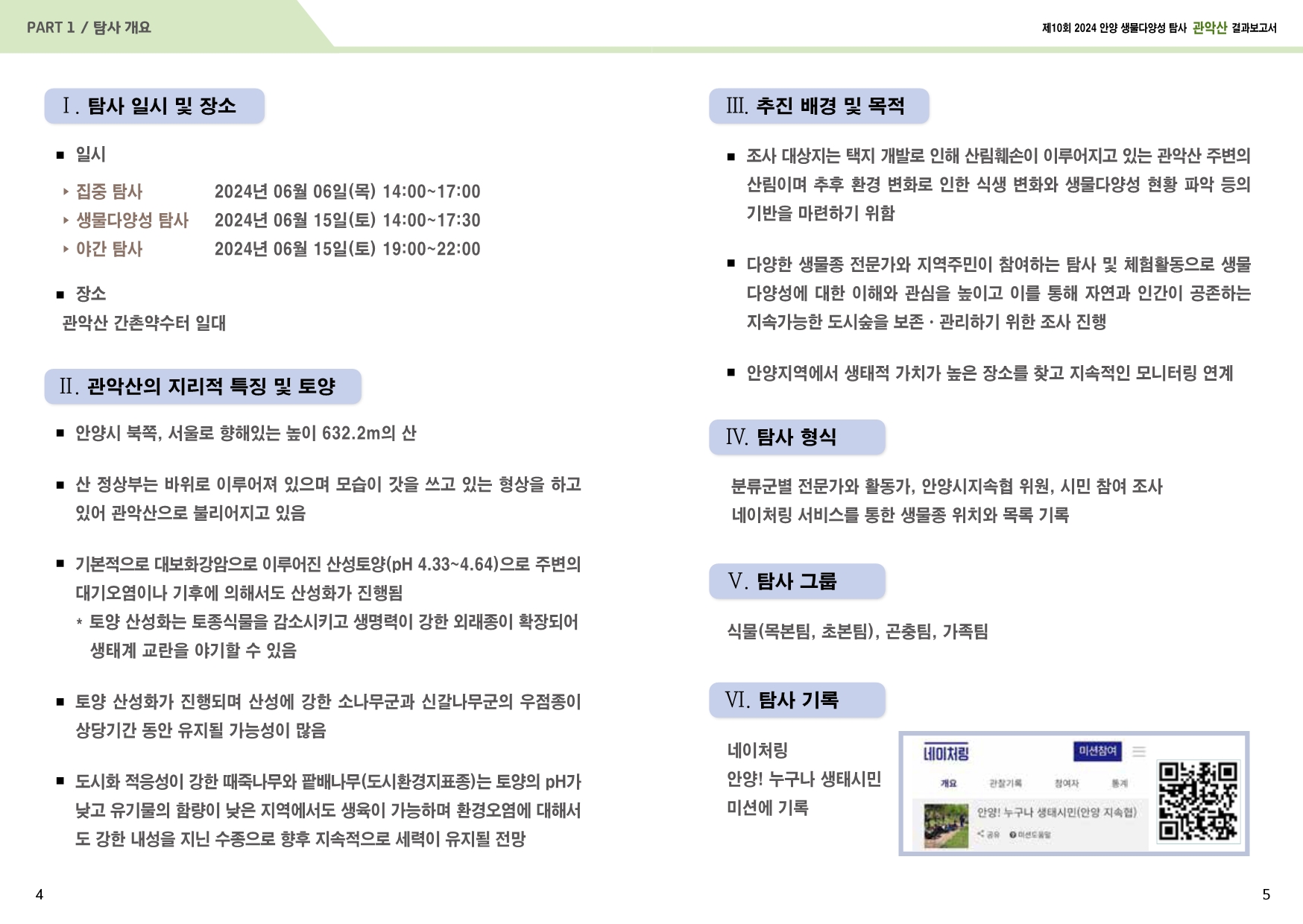 안양시지속가능발전협의회가 12월 7일 '2024 안양 생물다양성탐사 결과보고서'를 펴냈다.