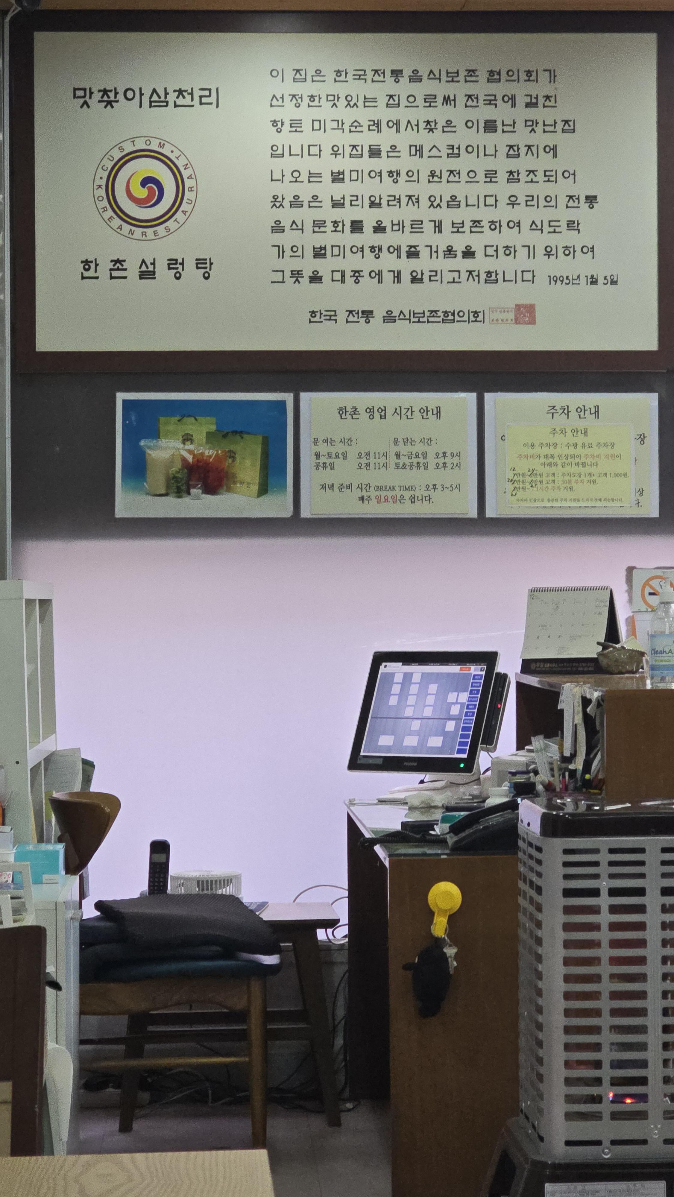 2024.12.07/ #식당 #안양 #한촌설렁탕 #sine1991 #노포 #국밥집/ 안양은 예로부터 경민식당, 풍년관, 한촌 등 설렁탕집이 많았다.국밥집이 그리운 계절, 안양 만안구청 옆에 있는 오래된 한촌에 들리다. 1991년 3월에 개업했으니 어느새 30년이 넘엇다. 안양 학원가 등에 한촌설렁탕 간판을 단 집(체인점)이 많은데 이 집은 체인점이 아니다. 만안구청이 안양시청이던 시절에는 주변에 풍년관, 옛골, 연천민물매운탕 등 입소문났던 노포급 맛집들이 여럿 있었는데 하나둘 없어지기 시작하면서 지금은 대부분 사라지고 몇집 남지 않았다.