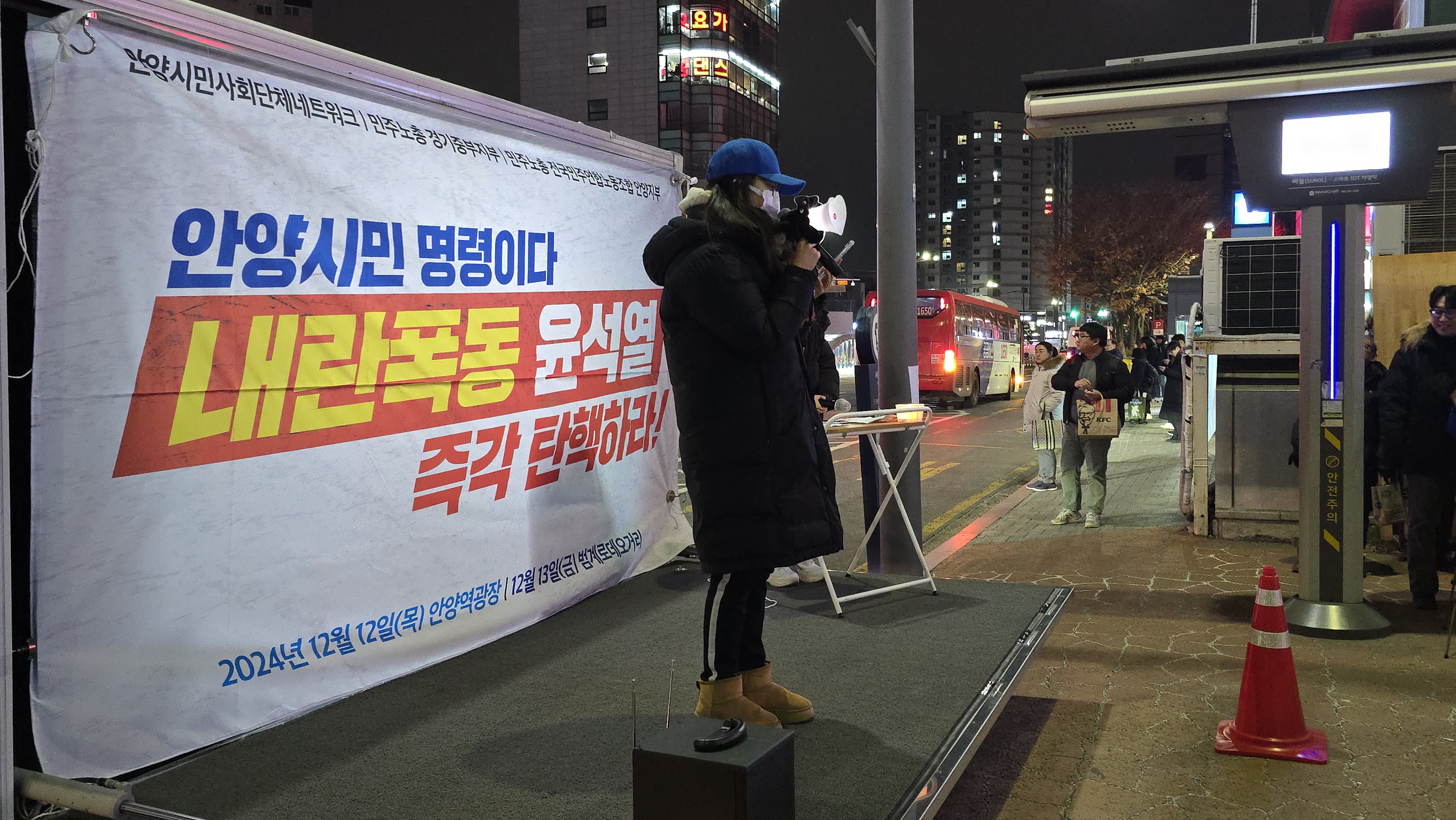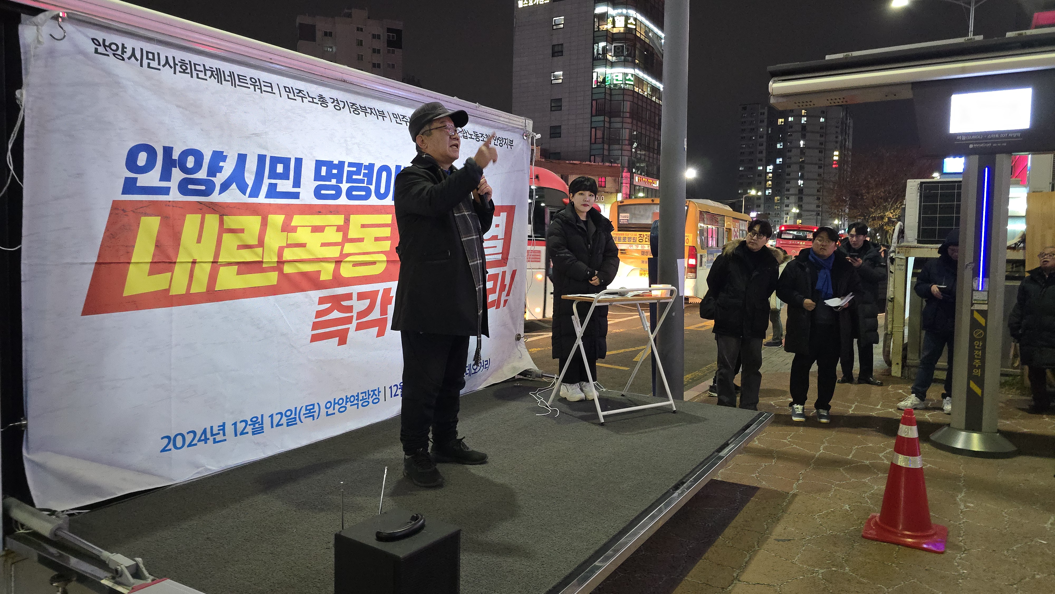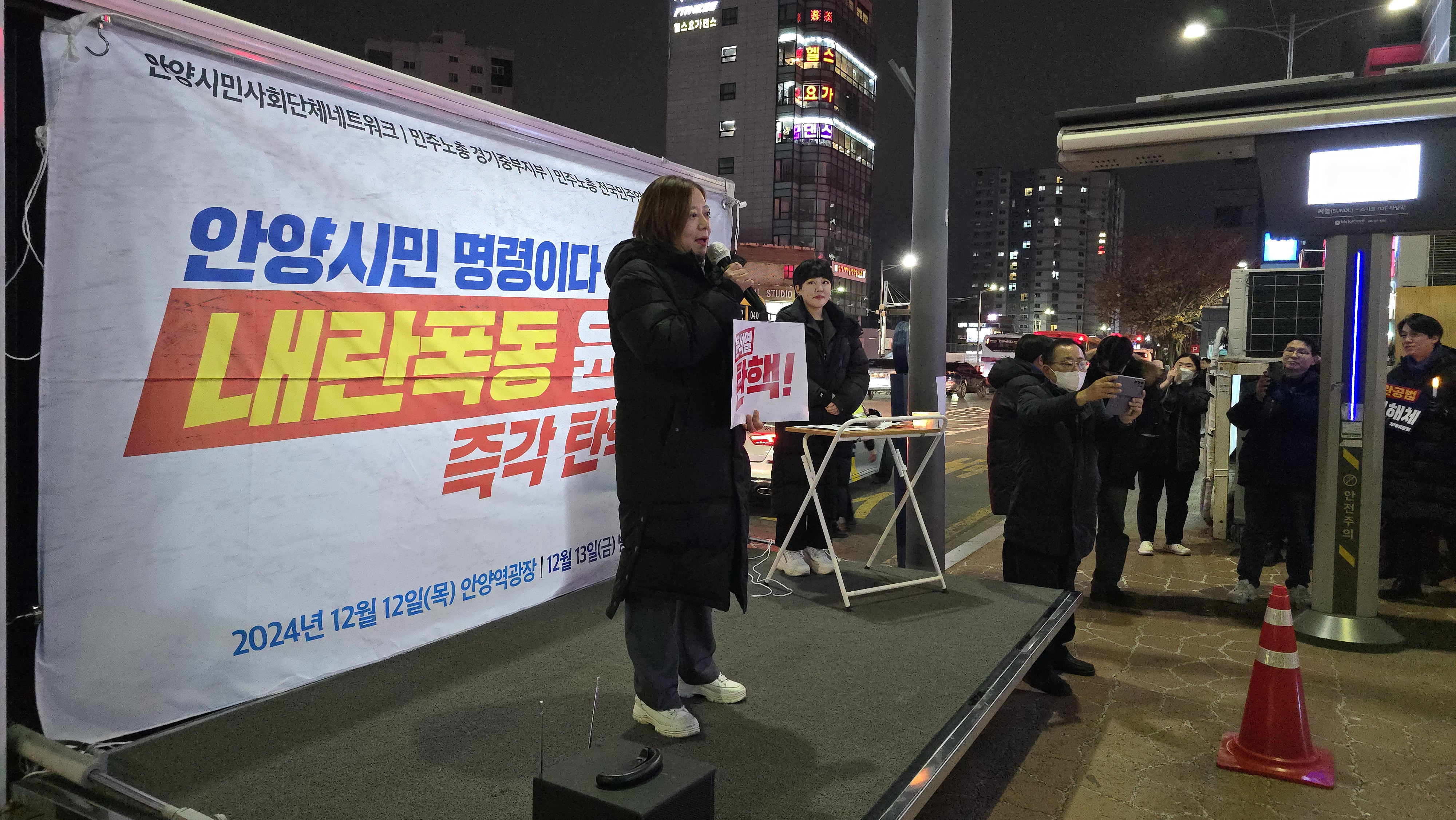 안양시민사회단체 연대체인 안양시민사회단체네트워크와 민주노총경기중부지부, 전국민주연합노조안양지부, 더불어민주당 안양원팀지역위원회 등으로 구성된 안양촛불연대가 주최한 이날 행사는 안양에서 열린 최초의 '윤석열 탄핵 촉구' 집회로 더불어민주당 소속 최대호 안양시장과 강득구 국회의원, 민주당 시·도 의원들도 참여했다.