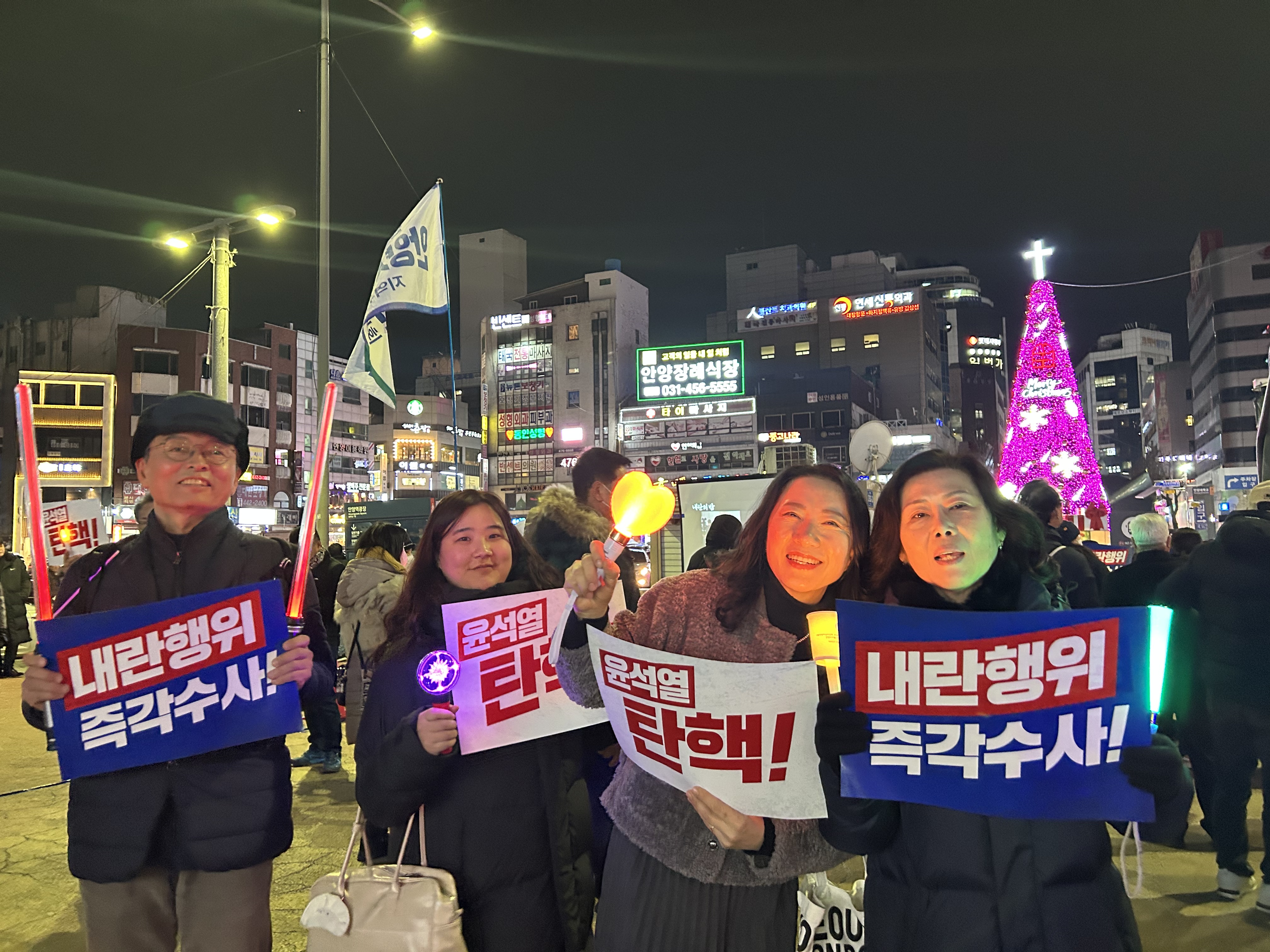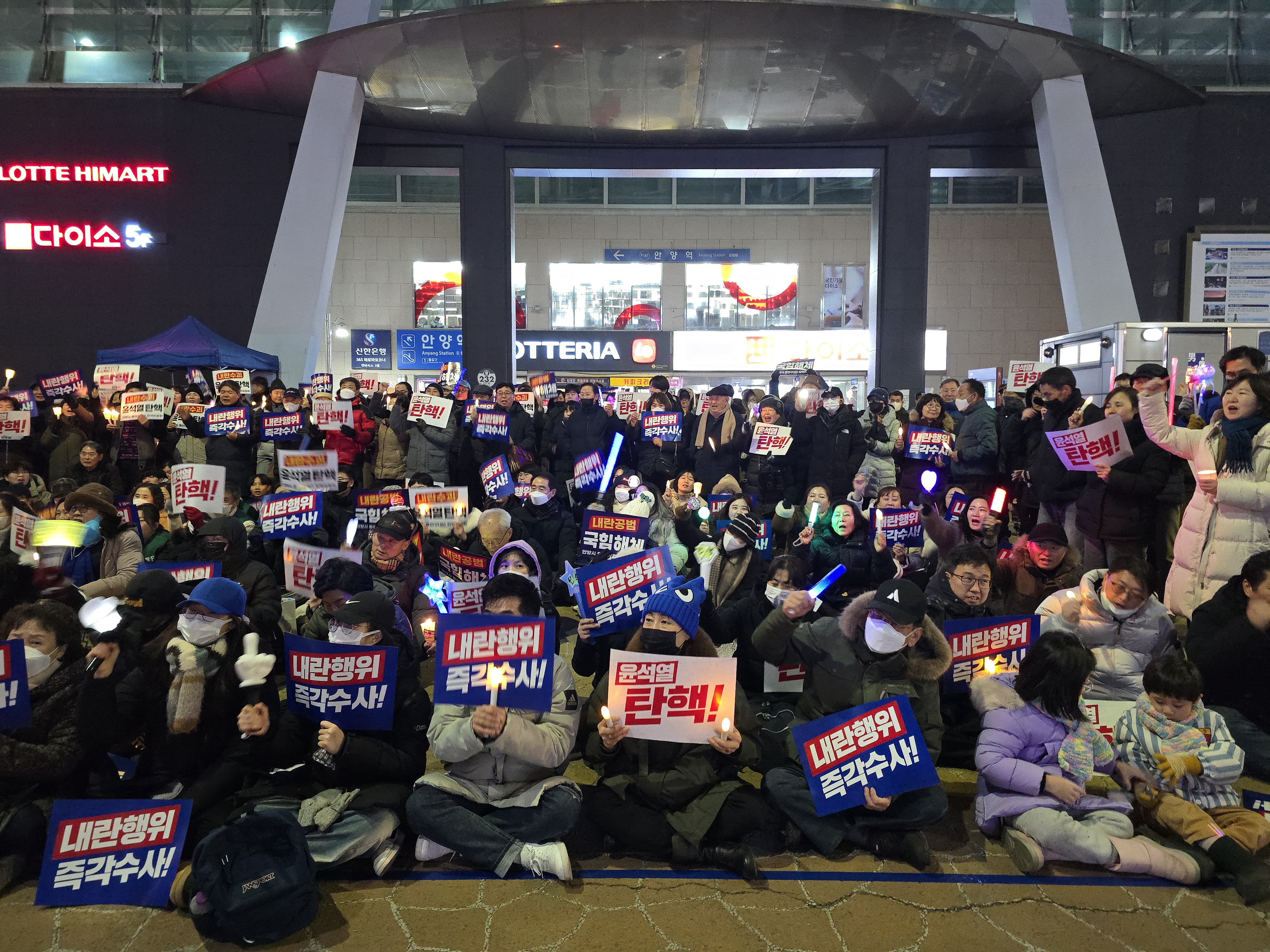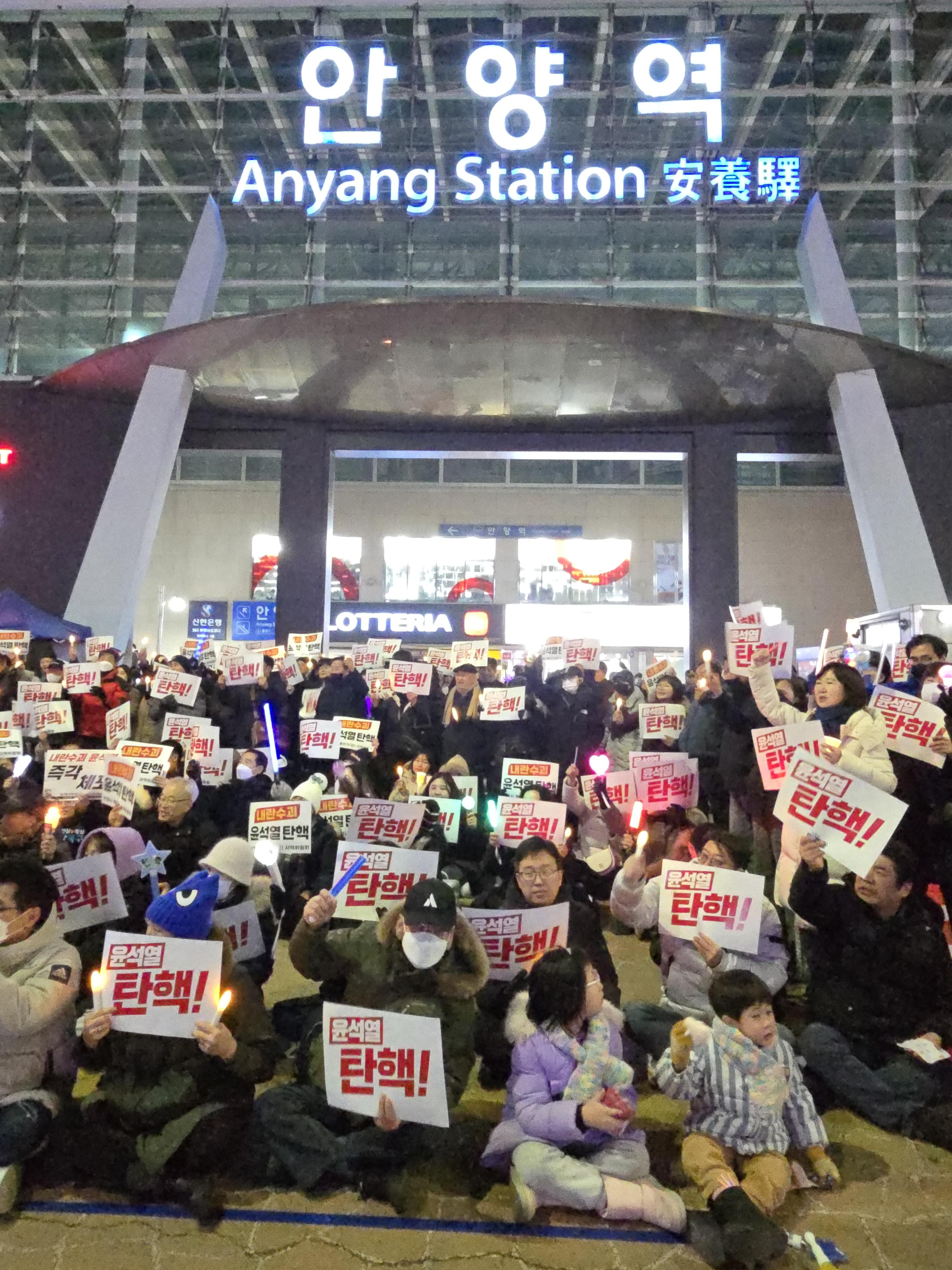 안양시민 500여 명이 12일 오후 6시 30분 안양역 광장에서 촛불과 응원봉을 들고 "윤석열 탄핵"을 촉구했다.