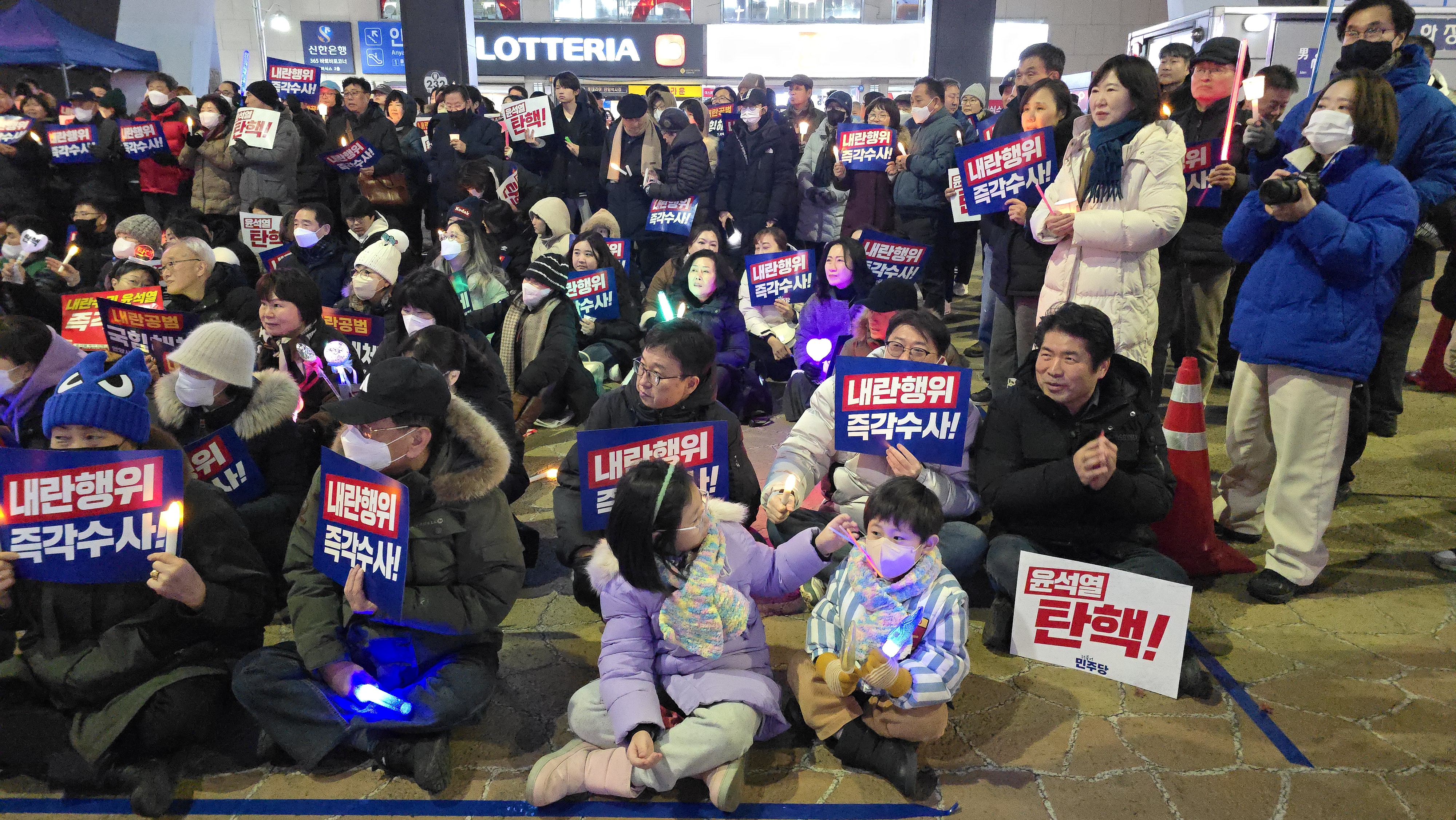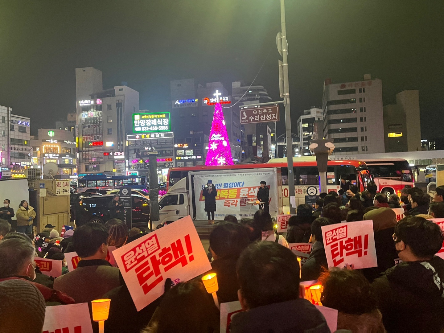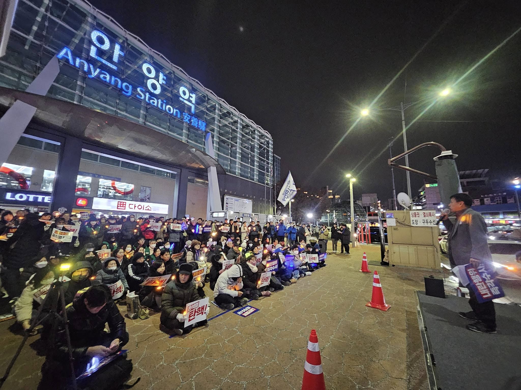 안양시민 500여 명이 12일 오후 6시 30분 안양역 광장에서 촛불과 응원봉을 들고 "윤석열 탄핵"을 촉구했다.