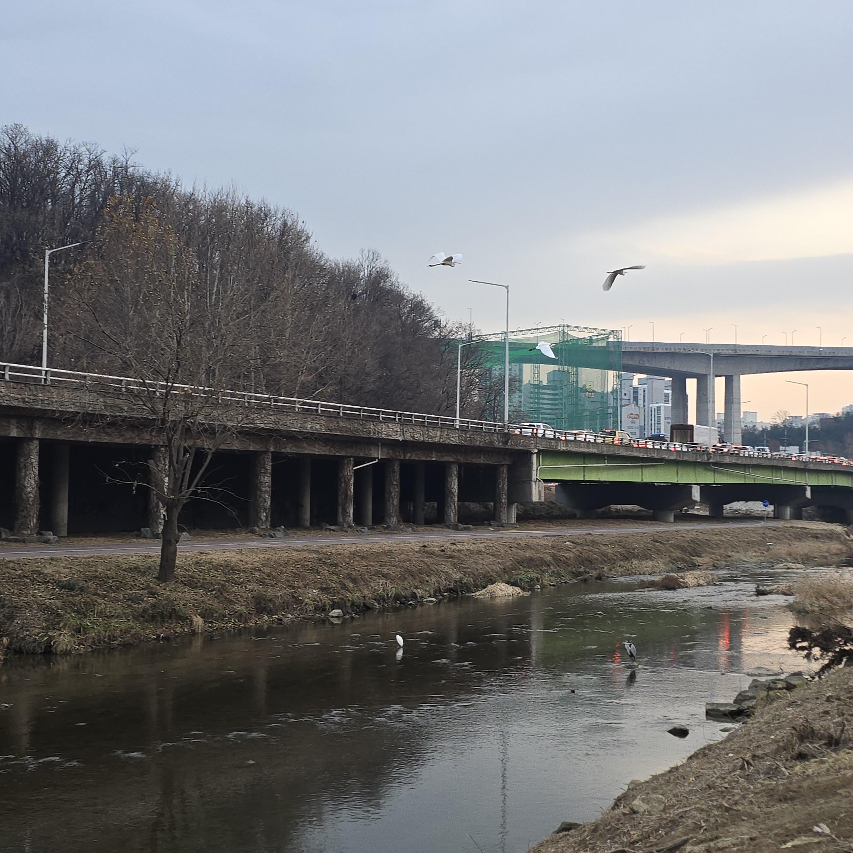 2024.12.20/ #도시기록 #백로 #안양천/ 안양 명학대교 세월교에서. 매년 겨울이 오면 안양천과 학의천에 백로들이 떼를 이루어 쉬거나 먹이사냥을 하는 호습을 보게된다. 장소는 수시로 달라지지만 안양천 양명고앞, 비산세월교옆, 명학대교 세월교앞 등이고 학의천은 학운굣, 동안굣, 인덕원인도교 등에서 백로떼 군락을 목격한다.