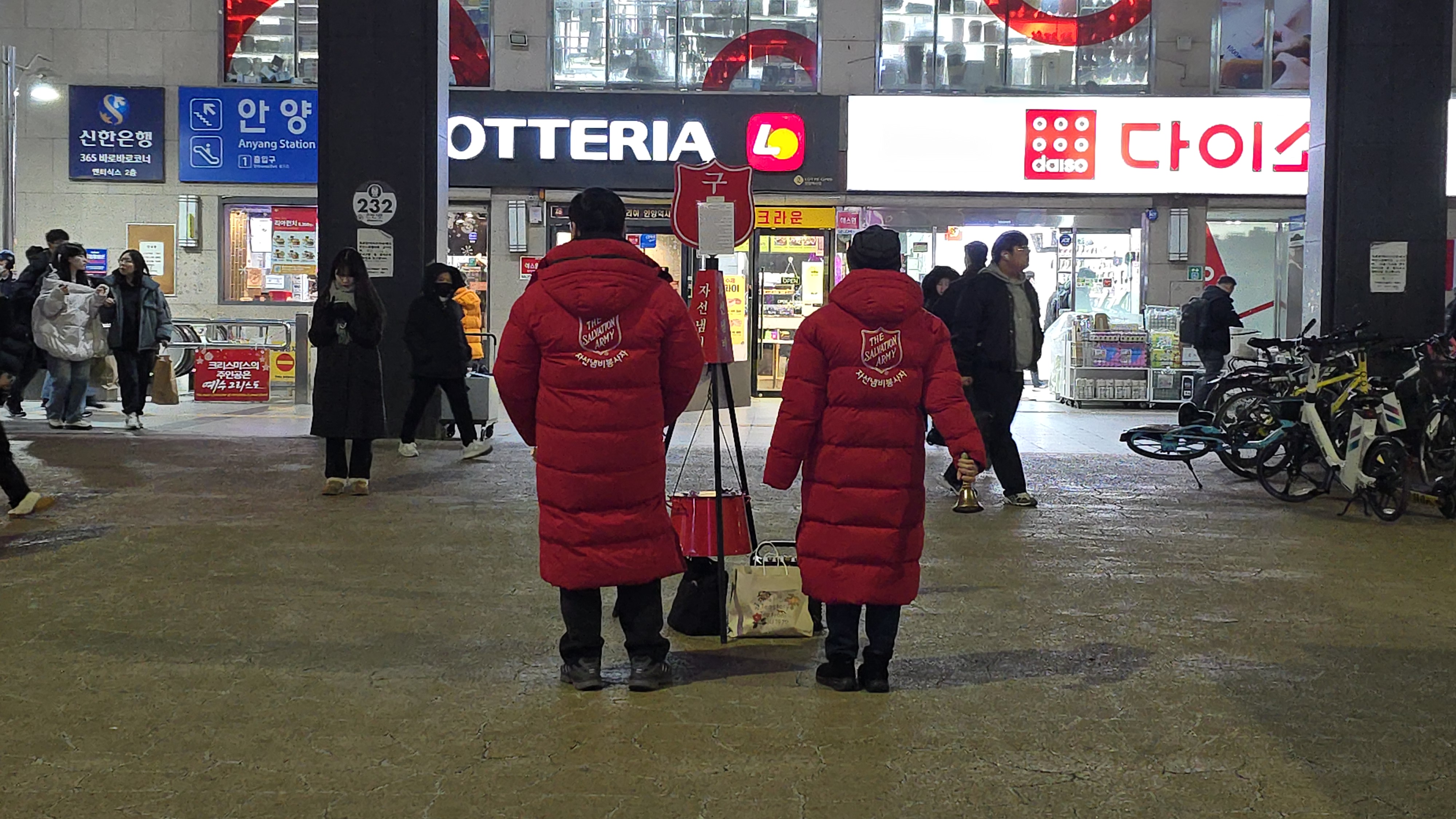 2024.12.24/ #도시기록 #안양 #자선냄비 #구세군/ 딸랑딸랑~~~.안양역앞에서 울리는 구세군 자선냄비 종소리. 구세군 자선냄비 거리모금은 연말을 대표하는 나눔 문화 확산 운동으로 1928년 명동에서 처음 시작된 이후 한국전쟁, 외환위기, 코로나 시기 등 어려운 상황에서도 크리스마스가 되면 96년 동안 거리에서 사랑의 종소리를 울리고 있다.