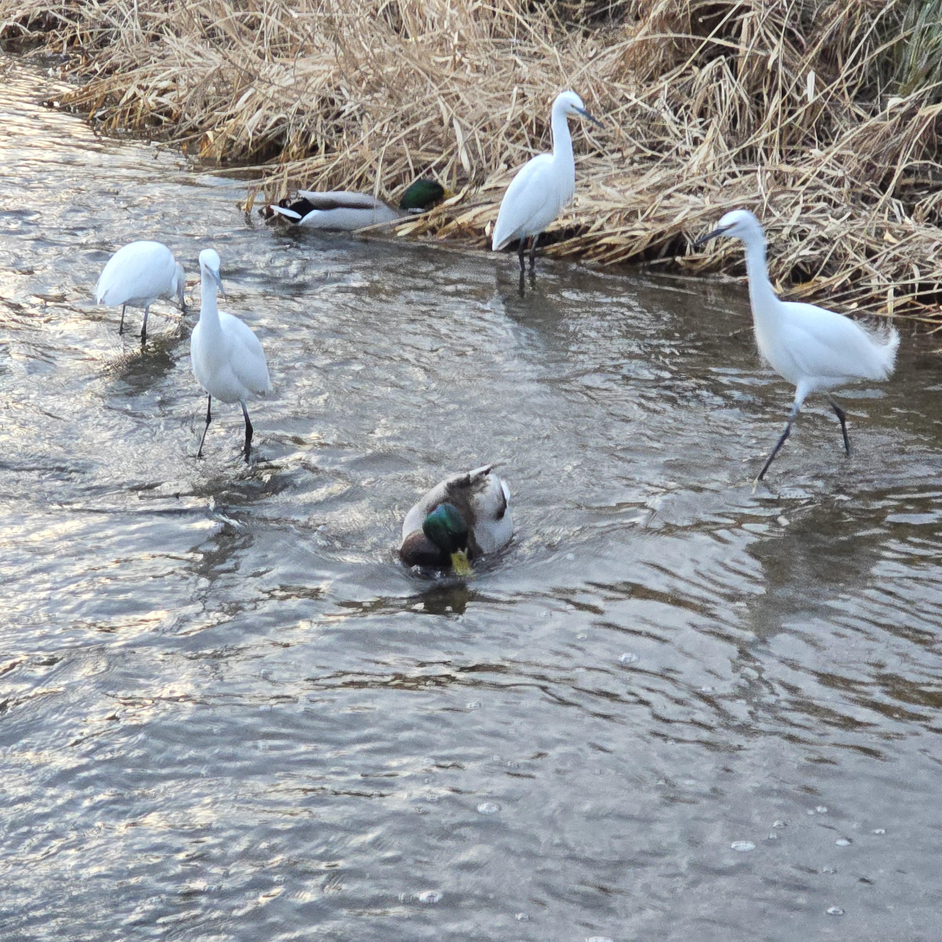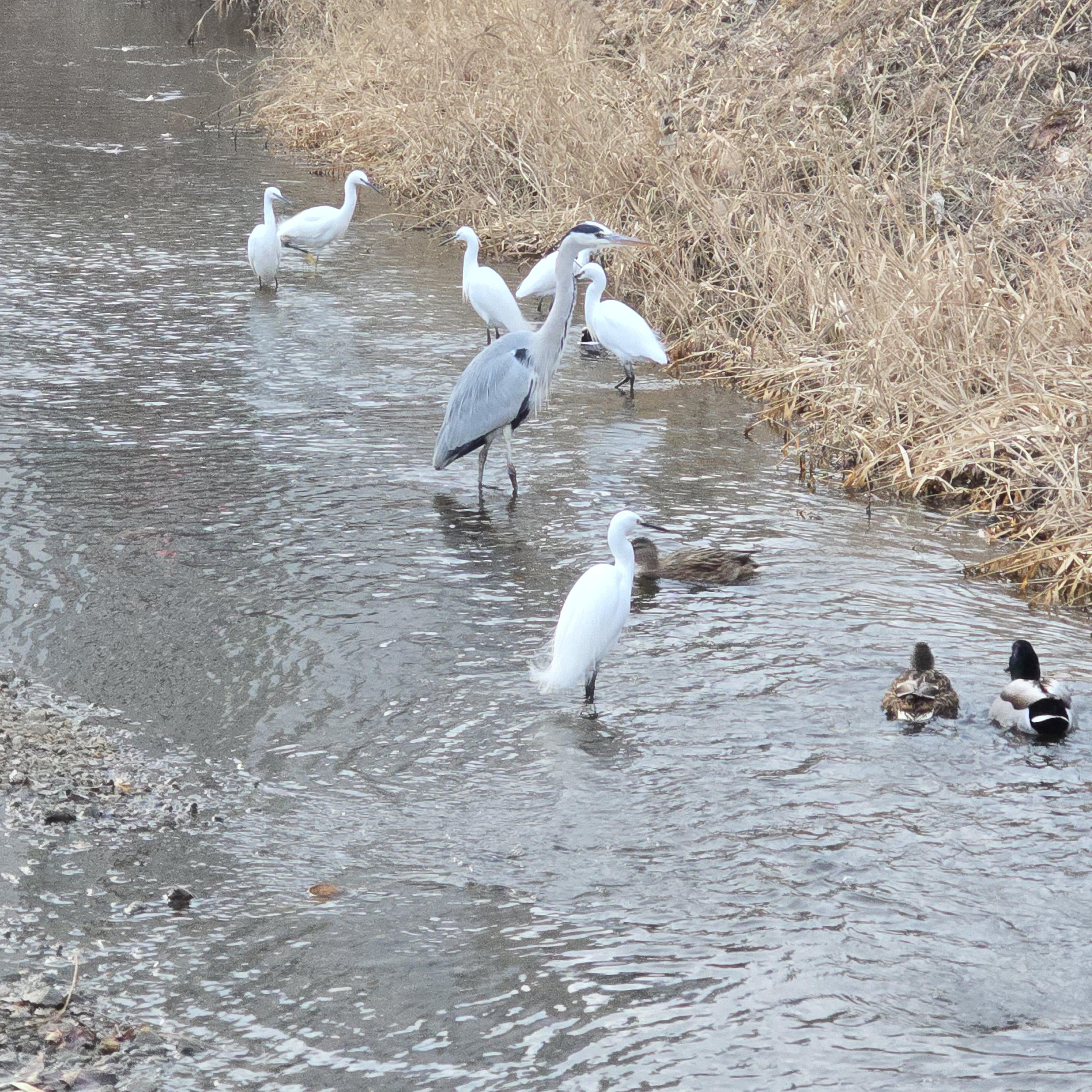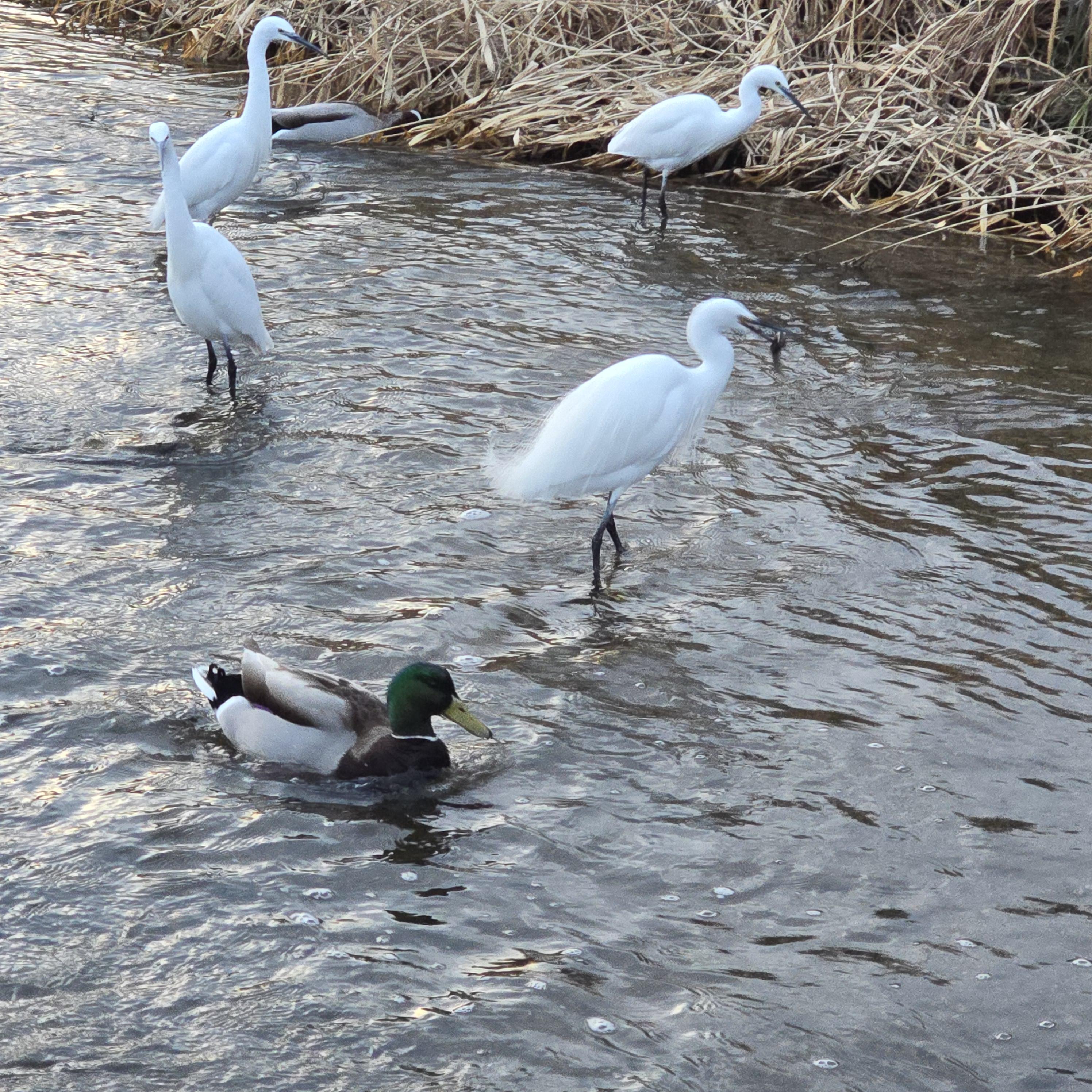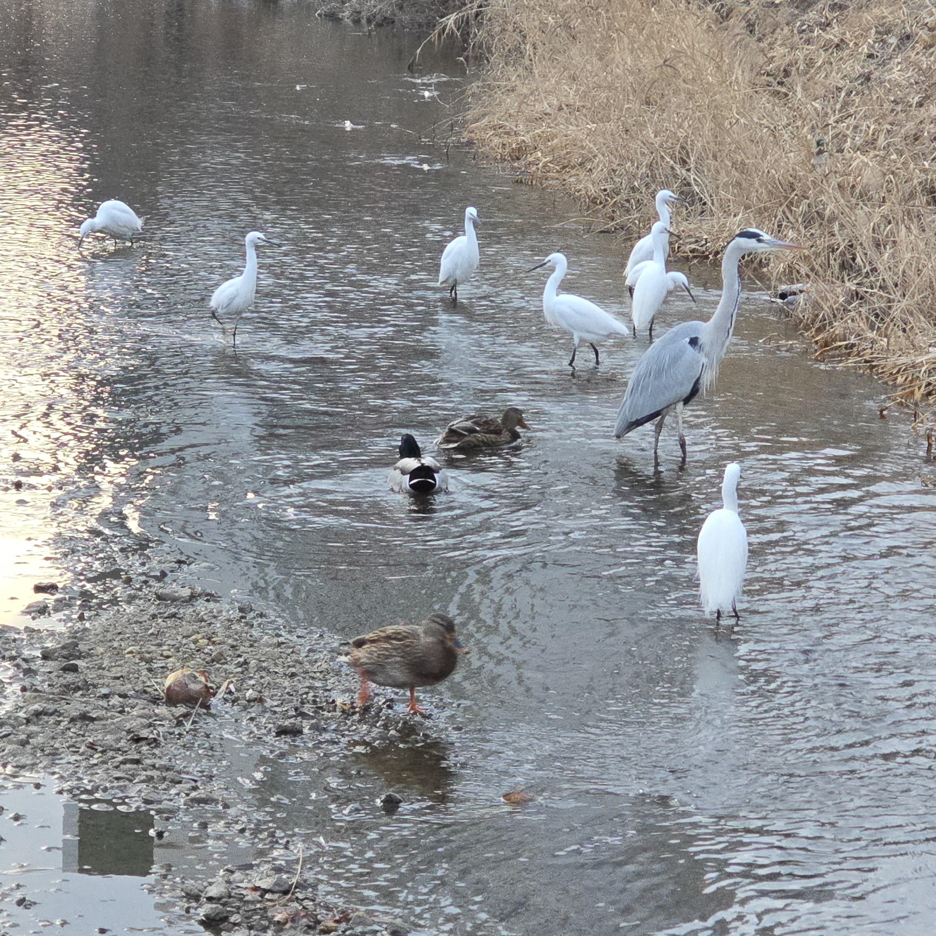 2024.12.29/ #도시기록 #안양 #학의천 #사냥/ 안양 학의천에서 목격한 청둥오리가 물고기를 사냥해서 먹는 희귀 장면. 백로. 왜가리. 청둥오리들의 치열한 물고기 사냥. 청둥오리가 수풀과 물속을 헤집어 물과기를 잡아 울리면 백로가 빼앗아 먹으려고 덤벼든다. 왜가리는 고고한척 옆에 있다가 낼름. 조류전문가는 수면성 오리들은 대개 물풀 뿌리를 먹는데.. 청둥오리가 물고기를 잡아먹다니 단백질이 급했나 보다고 분석한다.