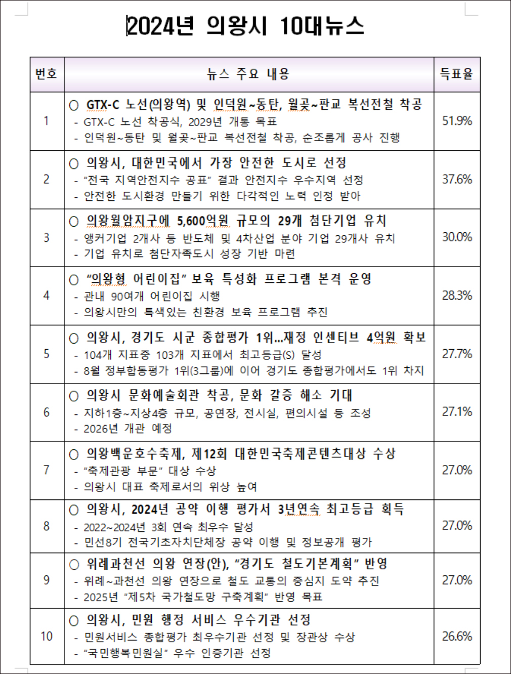 ★ 2024년 의왕시 10대 뉴스 ★