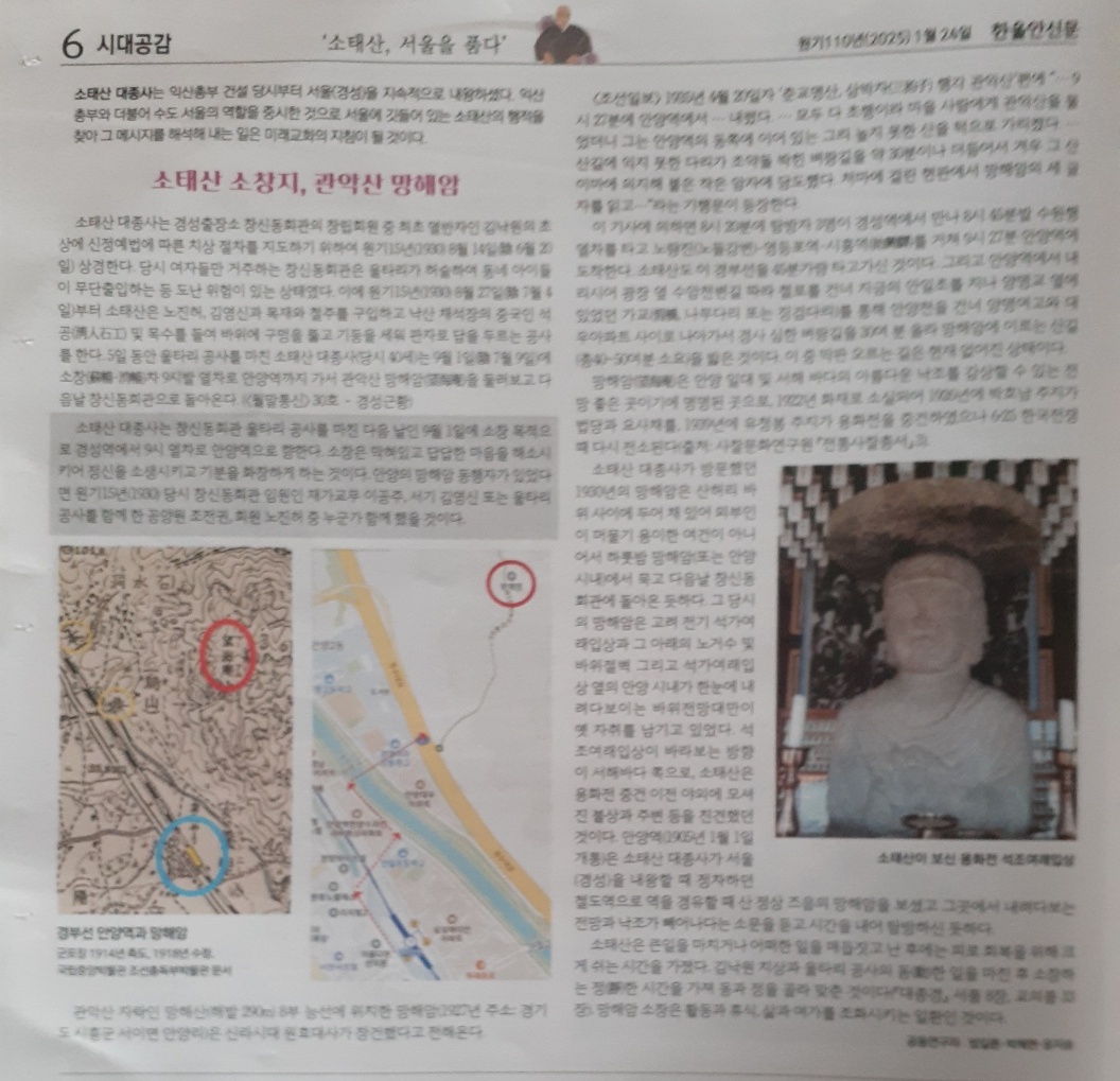 [한울안신문]소태산의 소창지. 관악산 망해암(2025.01.23 11:41)