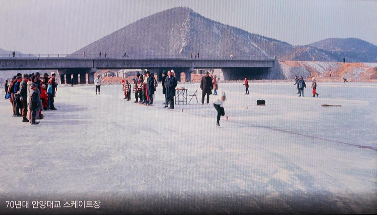 1960-70년대 겨울이 되면 안양천이 꽁꽁 얼어 안양대교와 안양철교 사이의 안양천에는 커다란 스케이트장이 생겼지요. 입장료를 내야하는 유료 스케이트장이었지만 관리를 잘해 빙질이 좋았고, 스케이트날을 가는 아저씨들도 서너명이나 있었고, 따끈한 국믈을 파는 천막도 설치되는 등 당시 안양에서는 최고의 겨울철 놀이터였자 각종 빙상대회가 열리던 곳이었지요.