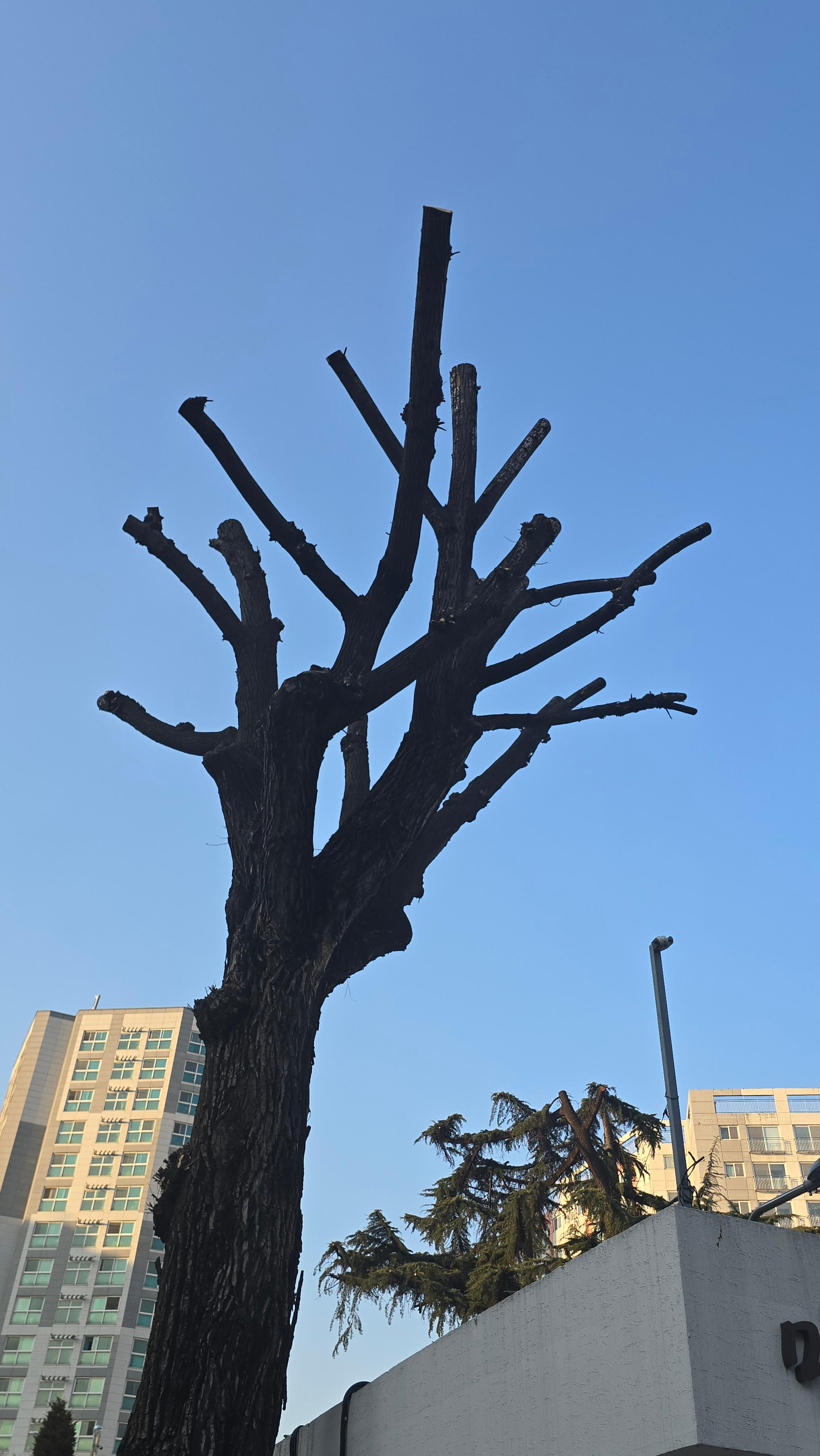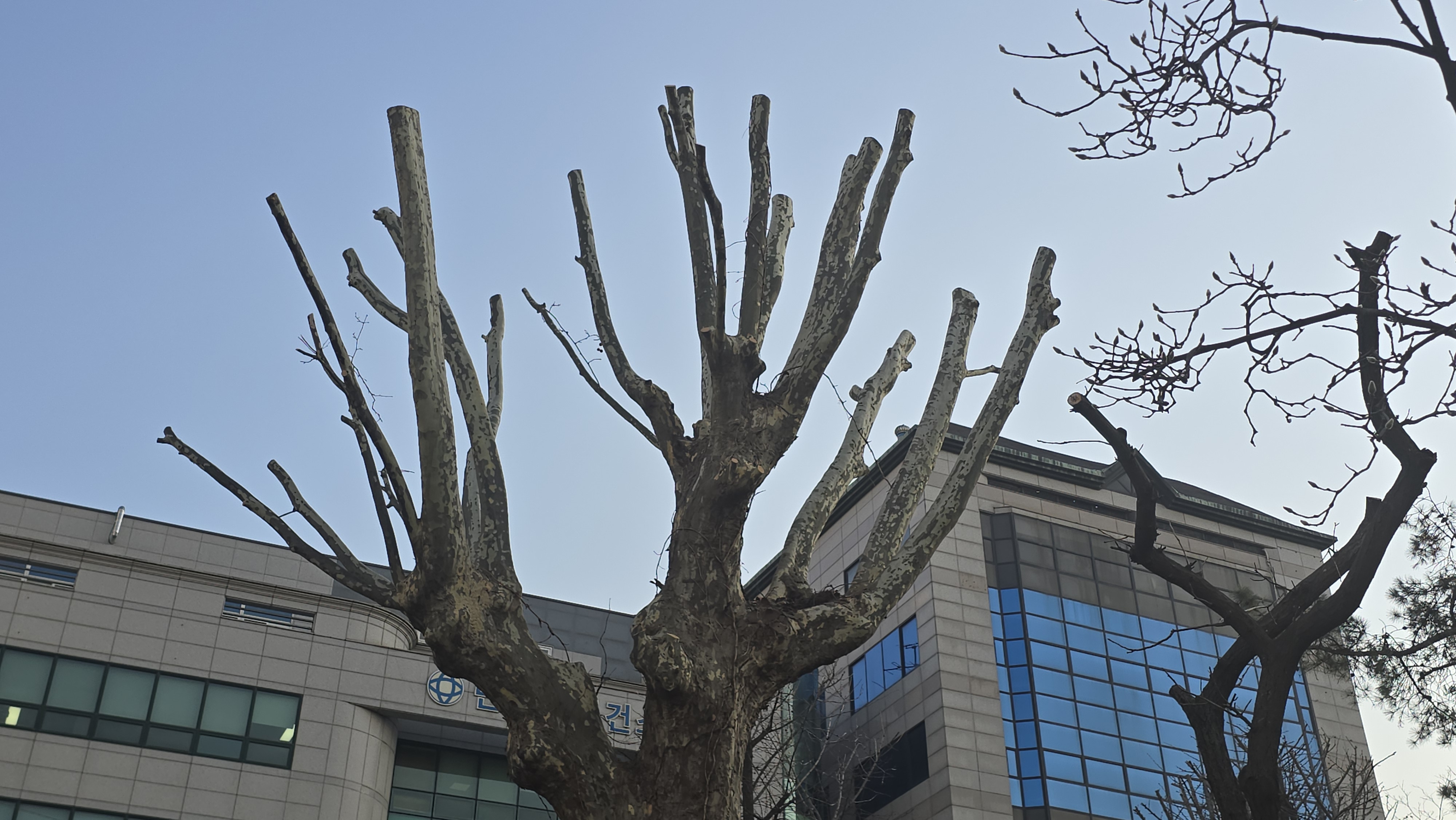 2025.01.24/ #도시기록 #안양 #만안구청 #나무전정/ 봄을 앞두고 안양시 만안구청 나무들이 가지치기를 했는데 나무 수종과 특성등은 고려하지 않고 일괄적으로, 모조리, 몽땅, 전부 다 심하게 강전정을 해서 보기 흉할 정도의 모습이 돼버렸다.
