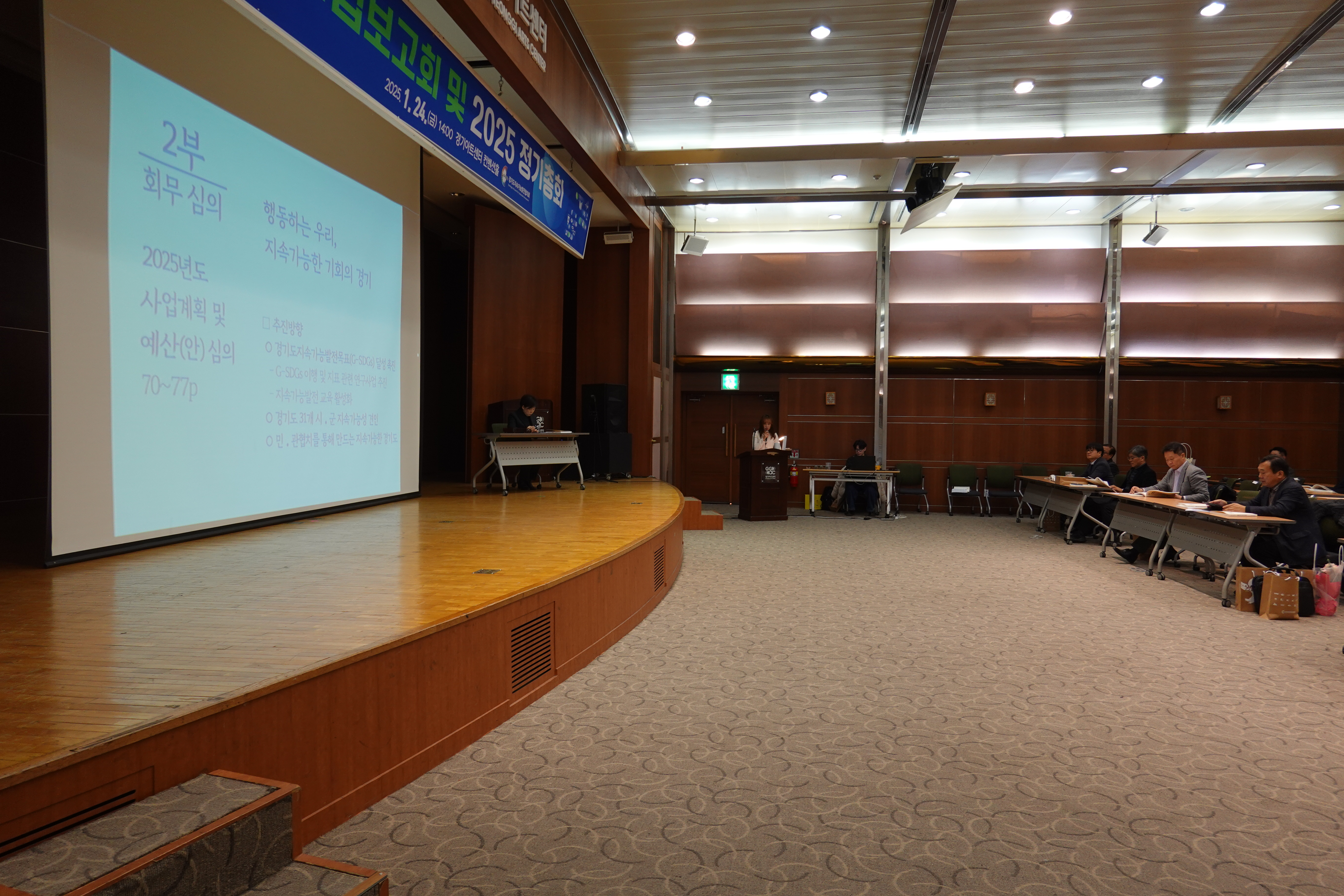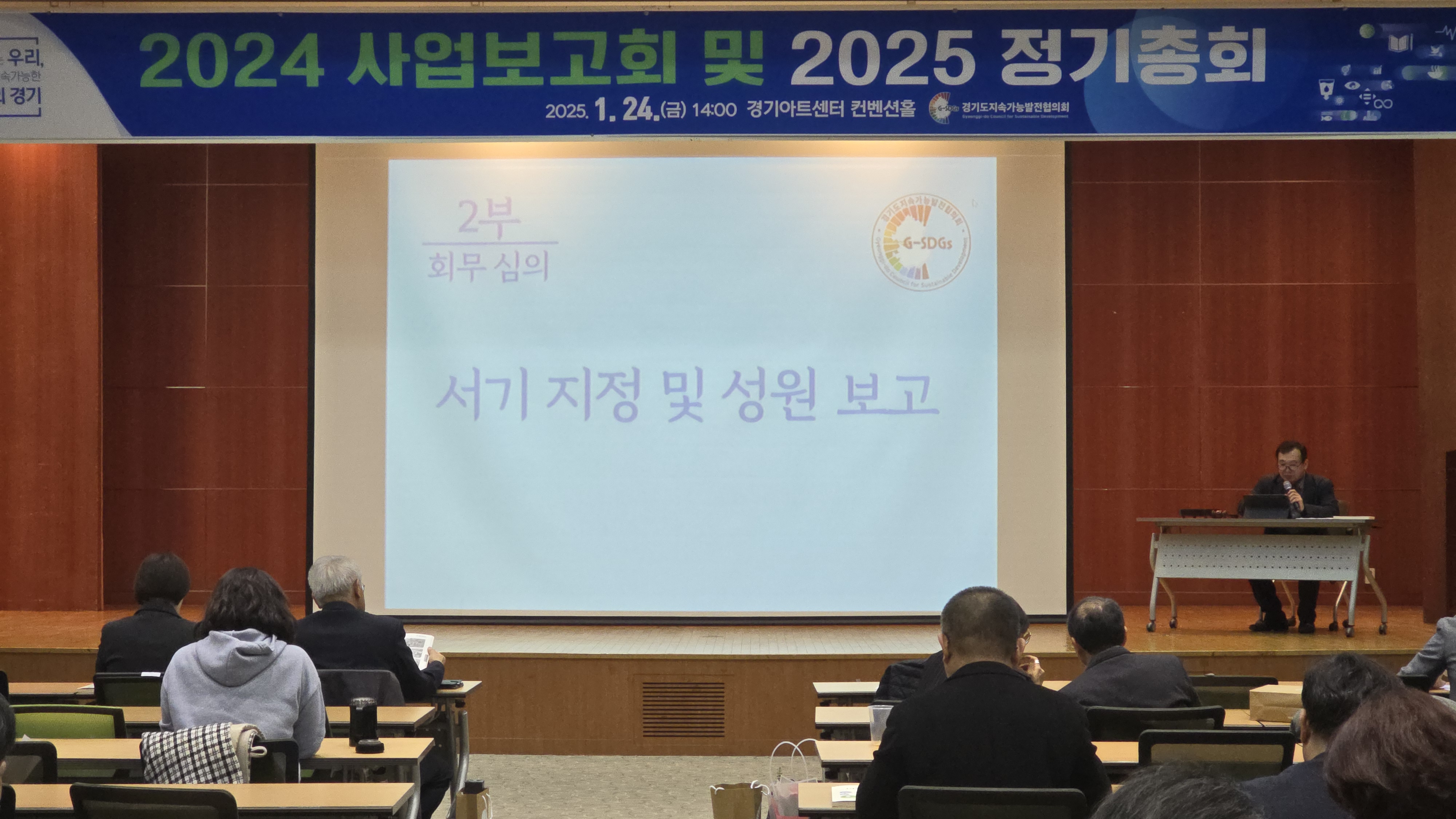 경기도지속발전협의회 2024년 사업보고 및 2025년 정기총회가 지난 1월 24일 수원아트센터 컨벤션홀에서 원호식 경기도지속협 상임회장, 시군협의회장, 14기 위원을 비롯 내빈으로 고영인 경기도 경제부지사, 윤성근 경기도의회 안전행정위원회 부위원장. 최윤정 중부일보 대표이사 겸 경기언론인클럽 이사장 등 160여명이 참석한 가운데 개최됐다.