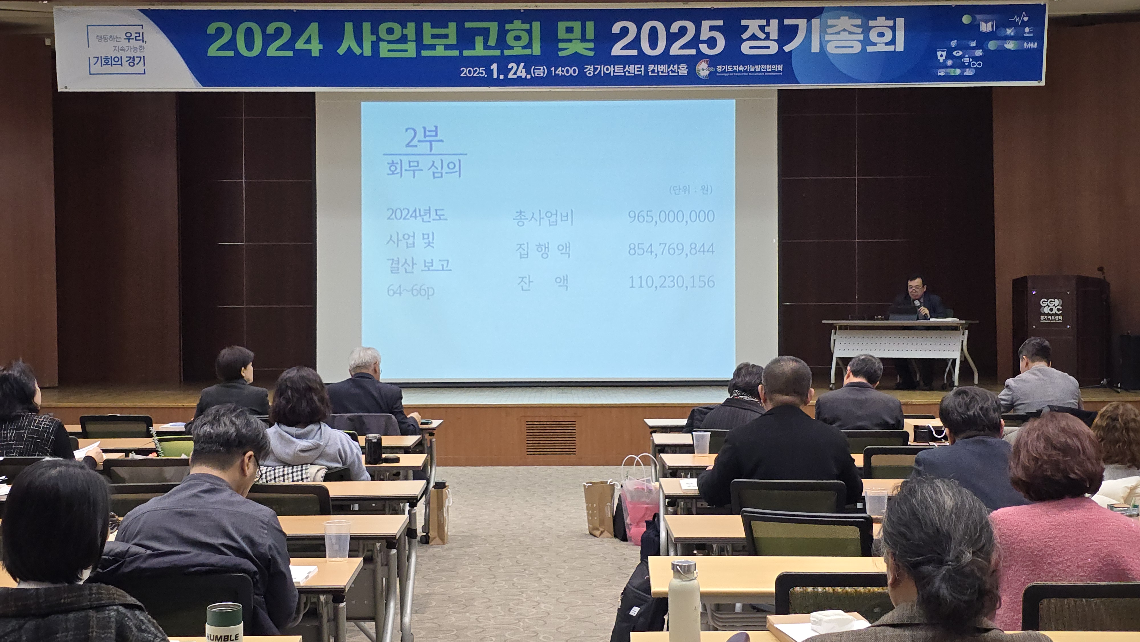 경기도지속발전협의회 2024년 사업보고 및 2025년 정기총회가 지난 1월 24일 수원아트센터 컨벤션홀에서 원호식 경기도지속협 상임회장, 시군협의회장, 14기 위원을 비롯 내빈으로 고영인 경기도 경제부지사, 윤성근 경기도의회 안전행정위원회 부위원장. 최윤정 중부일보 대표이사 겸 경기언론인클럽 이사장 등 160여명이 참석한 가운데 개최됐다.