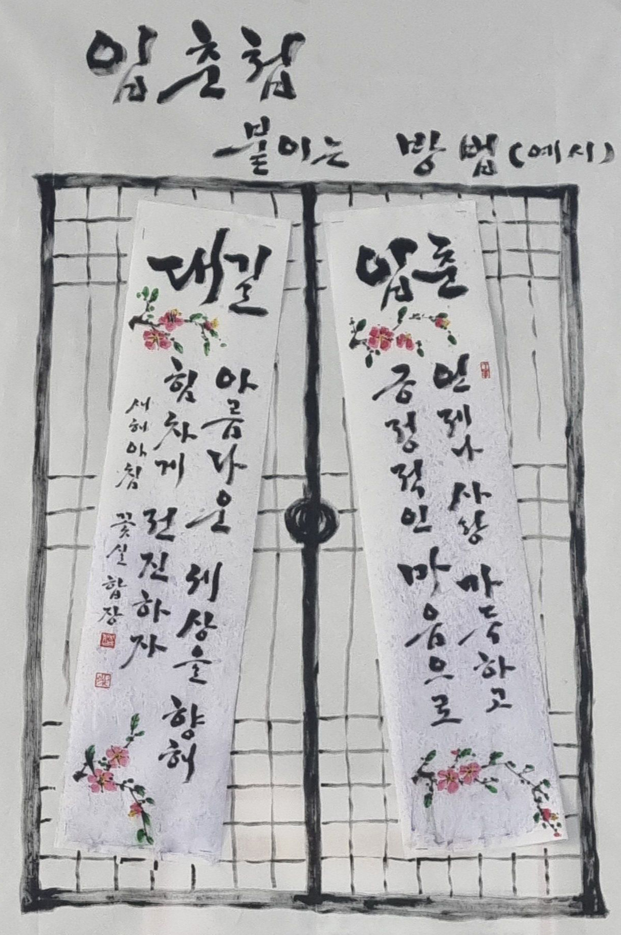 2025.01.02/ 2025년도 입춘이 들어오는 시각이 2025년 2월 3일 오후 11시10분으로 입춘을 앞두고 한글 서예가 꽃실 김영남 작가의 입춘첩 써주기 행사가 2월 3일(월) 오후 2시부터 4시까지 안양7동에 자리한 아이에스비즈센터 B동 1층 로비에서 열린다.