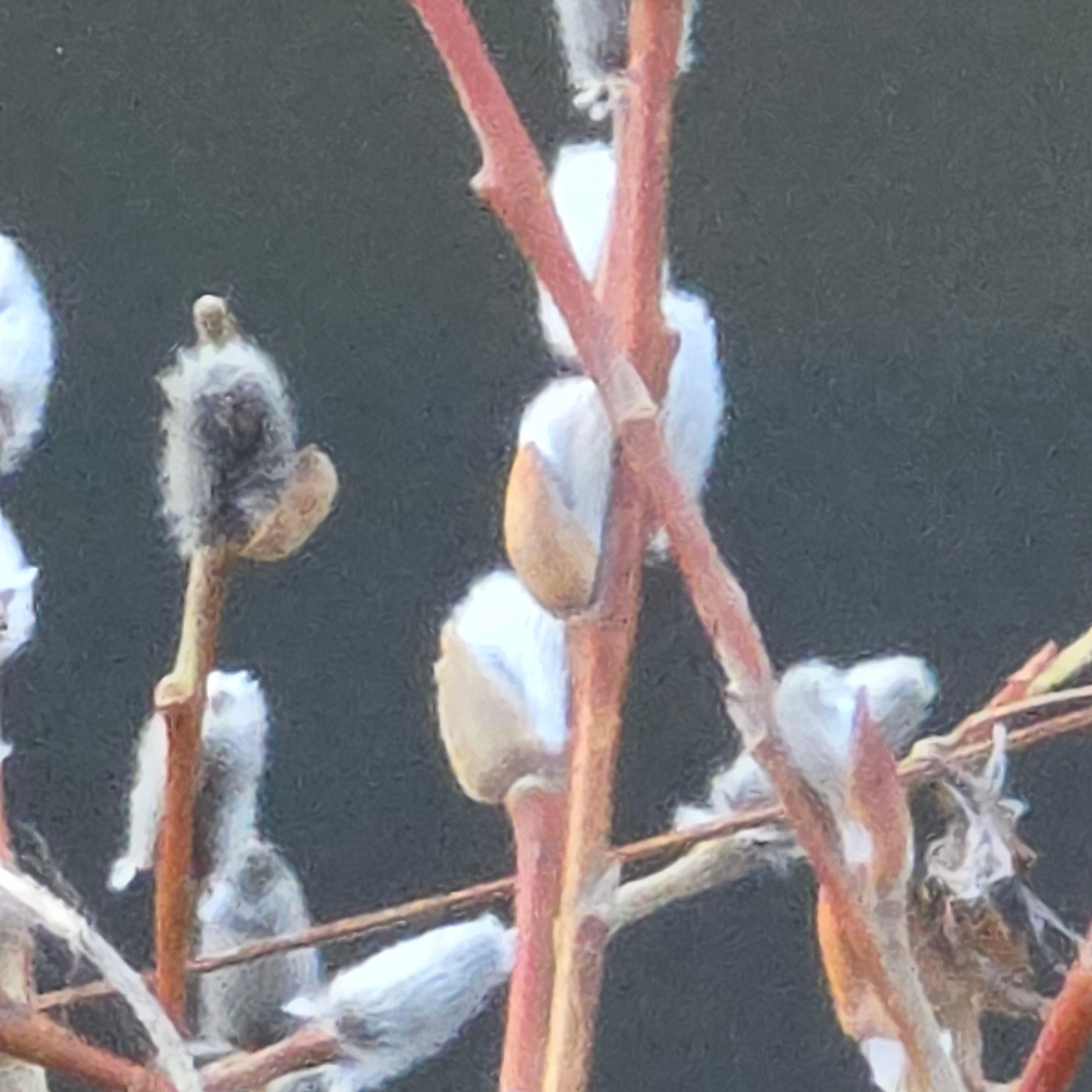 버들강아지는 이른 봄, 입춘 무렵에 피어나는 버드나무의 꽃눈입니다. 부드럽고 솜털 같은 모습 덕분에 한국에서는 ‘버들강아지’라는 귀여운 이름으로 불리며, 영어로는 ‘Pussy Willow’라고 합니다. 이는 마치 작은 고양이(pussycat)의 발바닥처럼 보인다는 데에서 유래된 이름입니다.