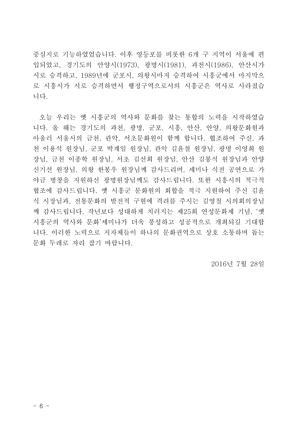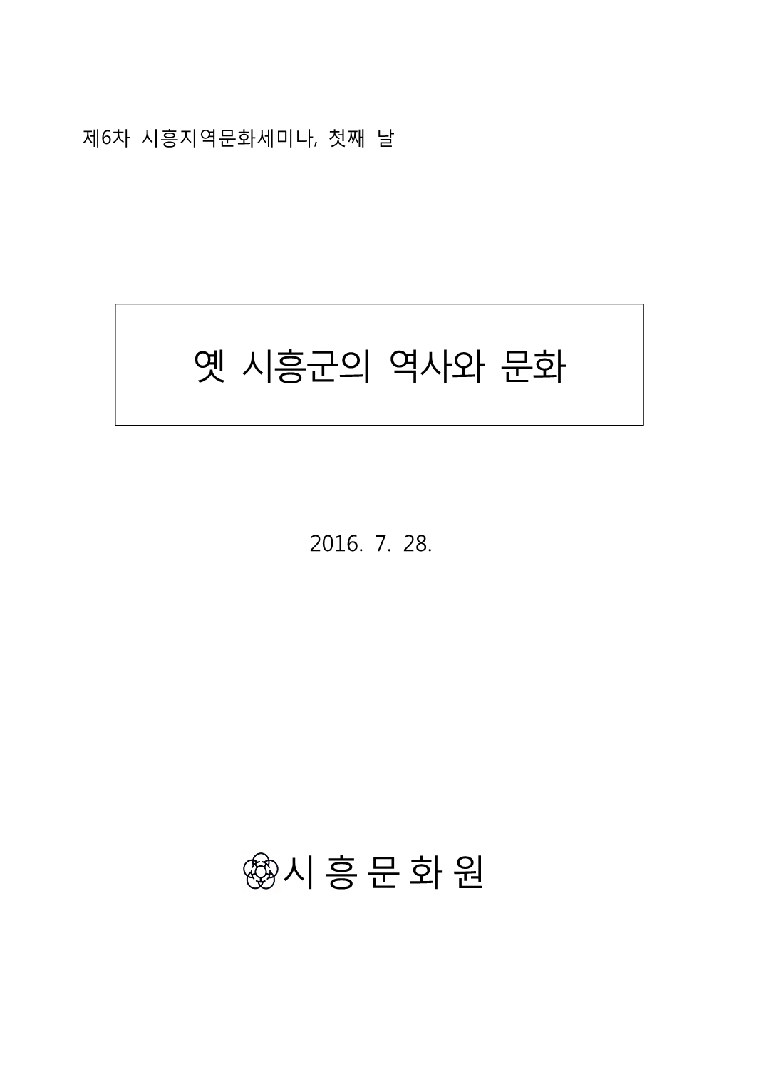 시흥문화원 주최로 2016년 7월28일 열린 제6차 시흥지역문화세미나 <옛 시흥군의 역사와 문화> 자료