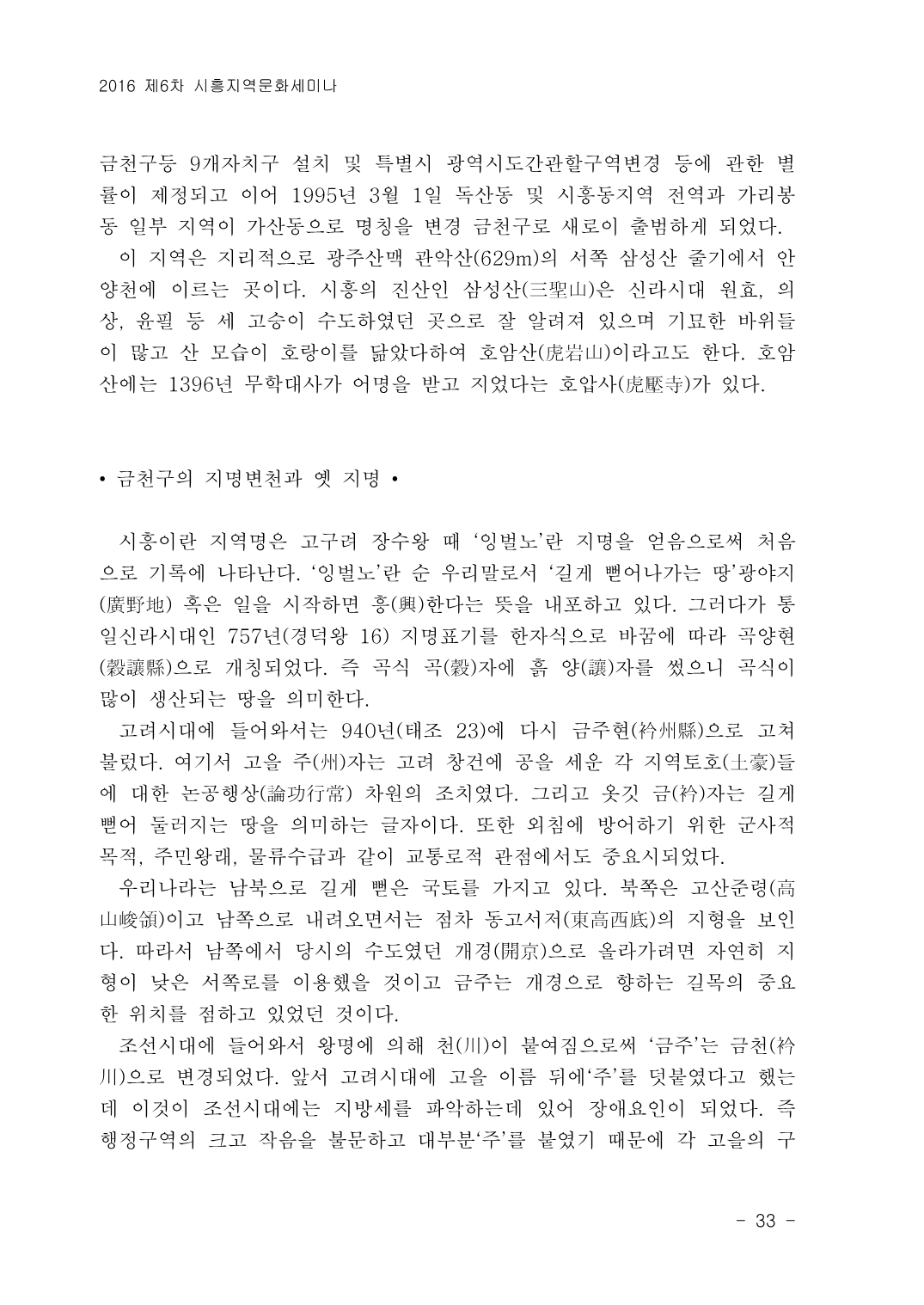 시흥문화원 주최로 2016년 7월28일 열린 제6차 시흥지역문화세미나 <옛 시흥군의 역사와 문화> 자료에 실린