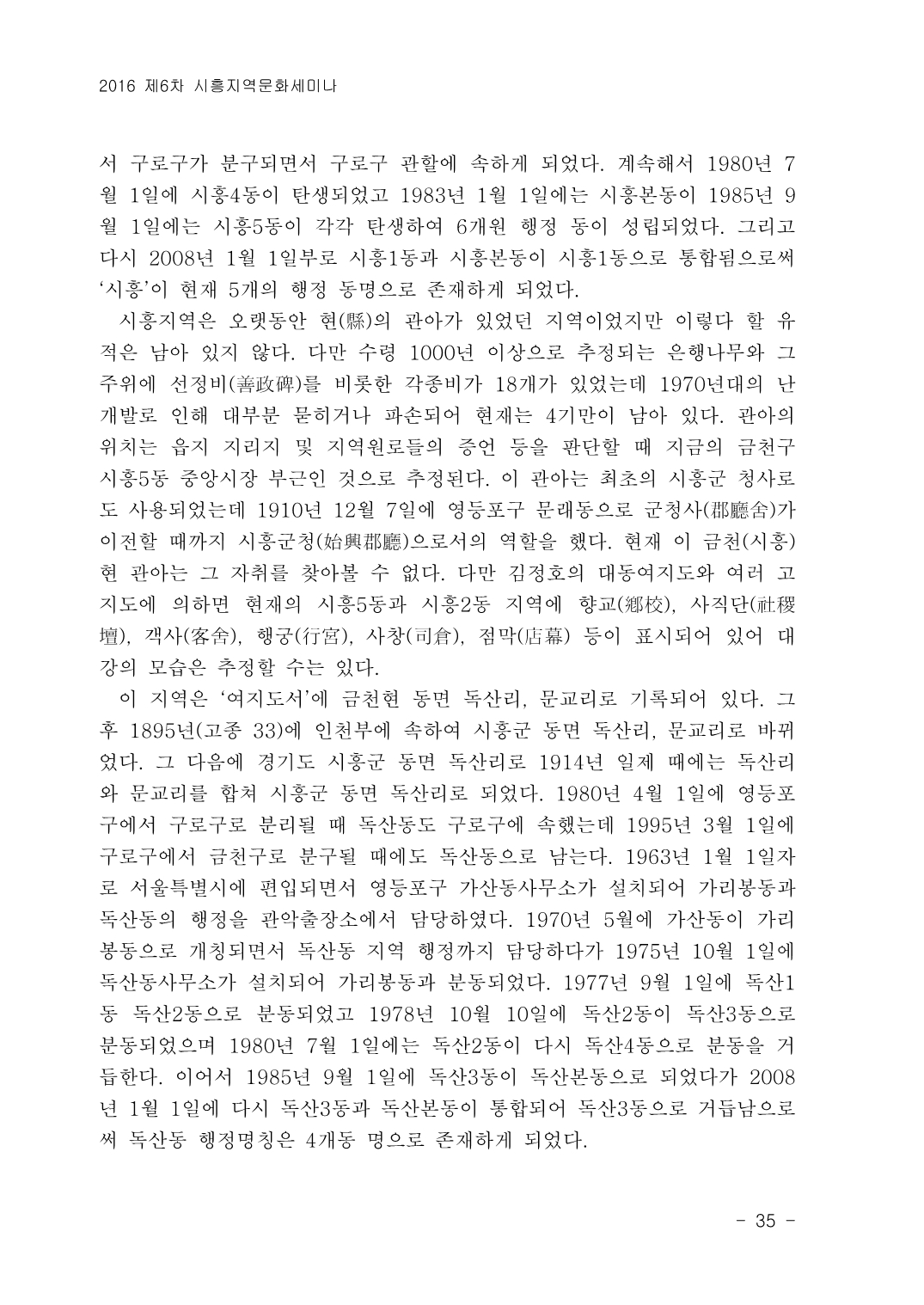 시흥문화원 주최로 2016년 7월28일 열린 제6차 시흥지역문화세미나 <옛 시흥군의 역사와 문화> 자료에 실린