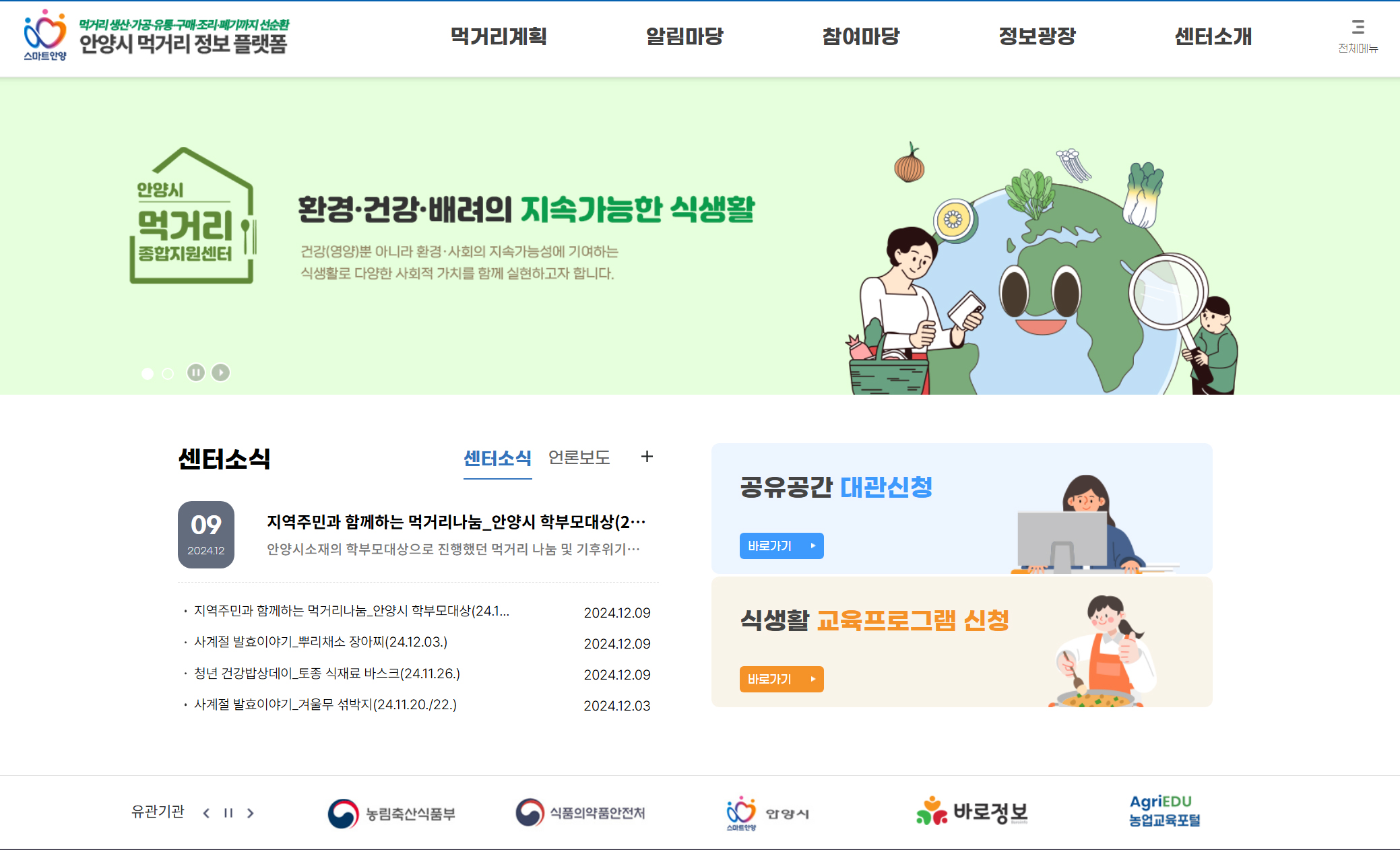 안양시 먹거리종합지원센터가 '먹거리 정보 플랫폼'(https://www.ayfoodplan.or.kr)을 새롭게 개편했다.