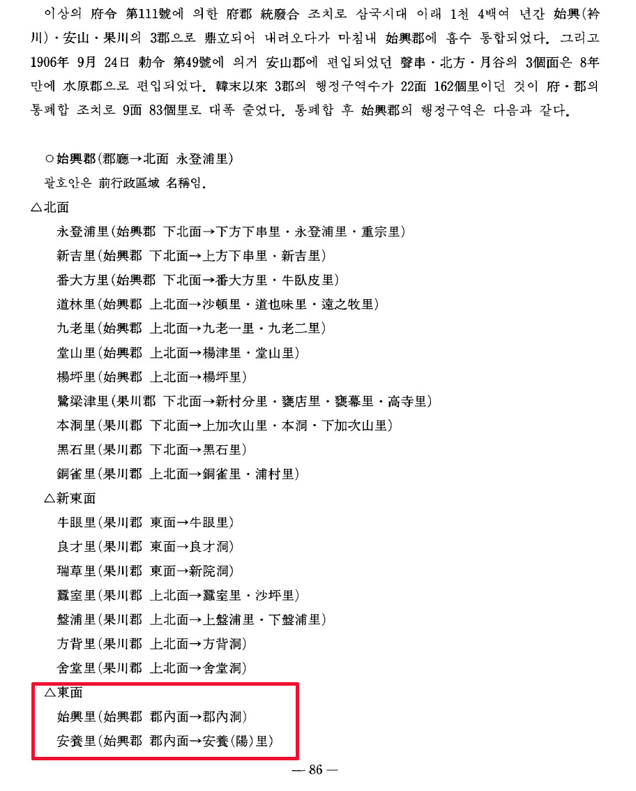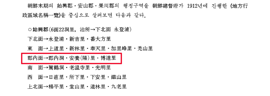 하지만 시흥군읍지 등 옛 문헌을 정리한 글을 보면 시흥군(始興郡) 군내면(郡內面) 당시 안양리 한자 표기가 安陽里다.