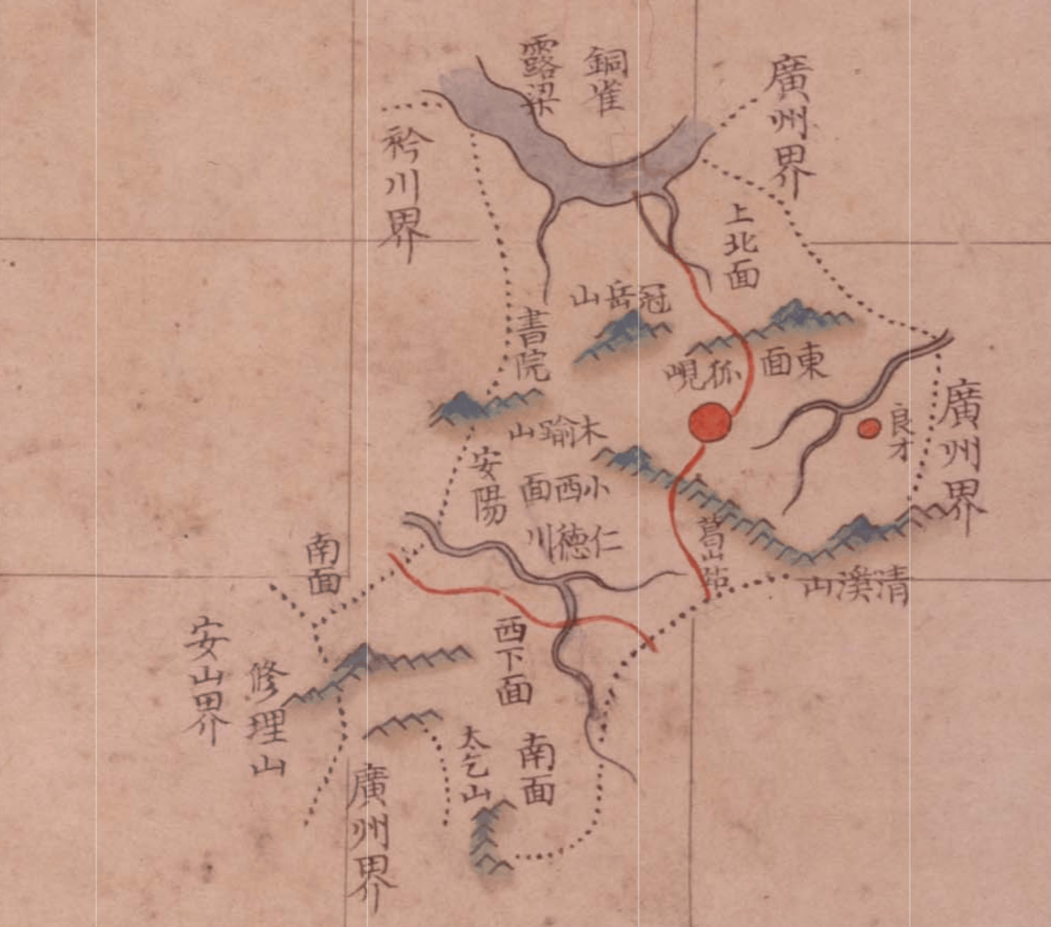 반면 지승의 과천현과 금천현 하천표기에서는 안양(安養)으로 한자 표기가 기를양으로 기록돼 있다.
