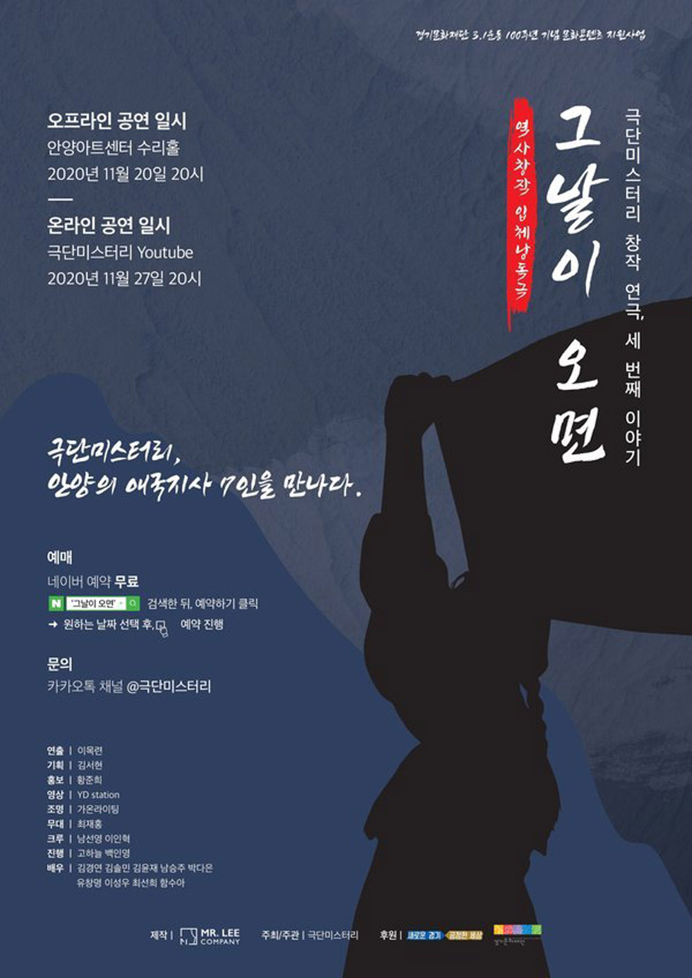 경기도 안양시에 위치한 극단미스터리(MR.Lee Company/, 대표 이목련)는 이번 3.1운동 101주년 기념 역사문화체험프로그램 ‘그날이 오면’(이하 ‘그날이 오면’)을 기획으로 극단의 정체성을 확립