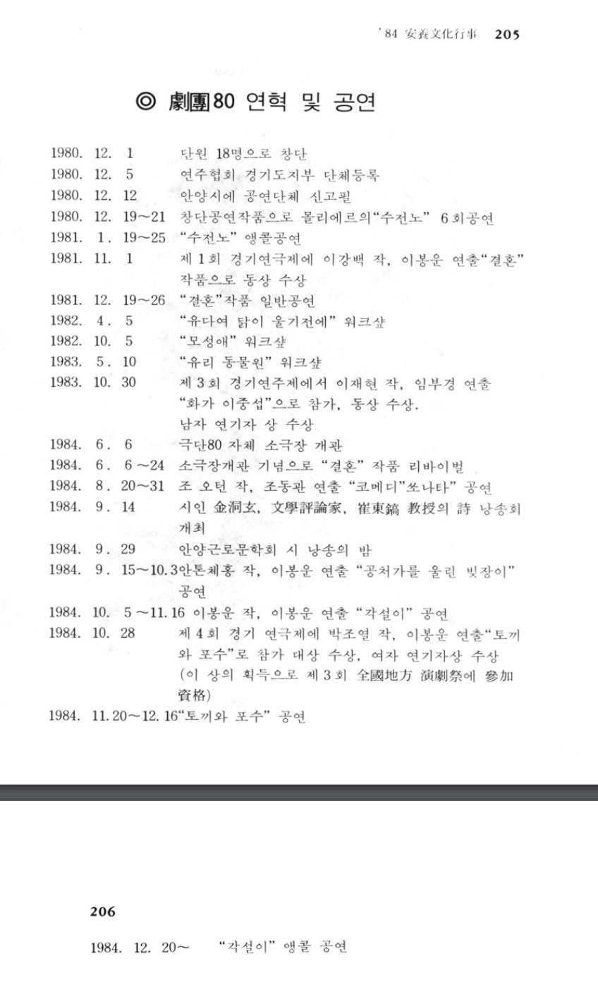 안양4동에 극단 <창가>와 소극장 <마당> 있었다