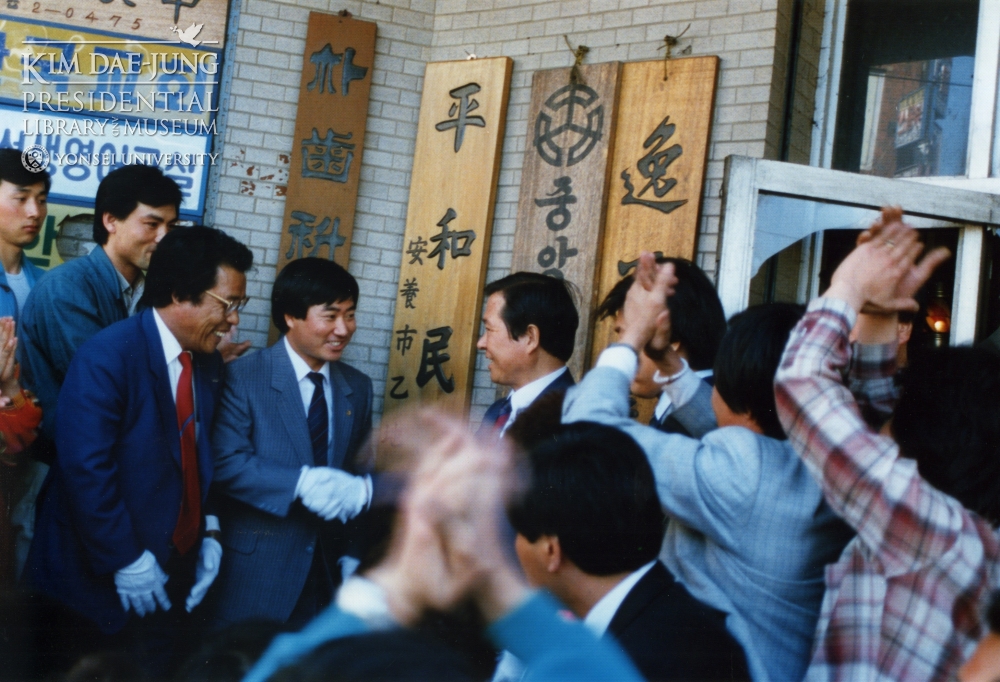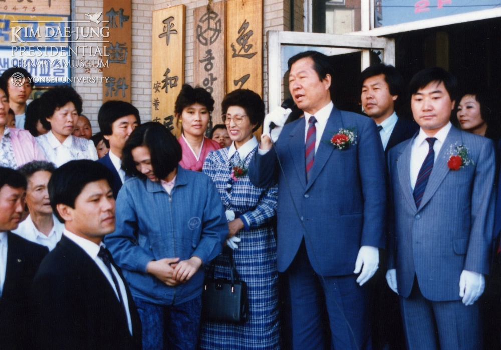 김대중 총재와 이희호 여사는 이날 안양을 방문하면서 평화민주당 안양시 을지구당 사무소 현판식 일정과 함께 안양2동에 있었던