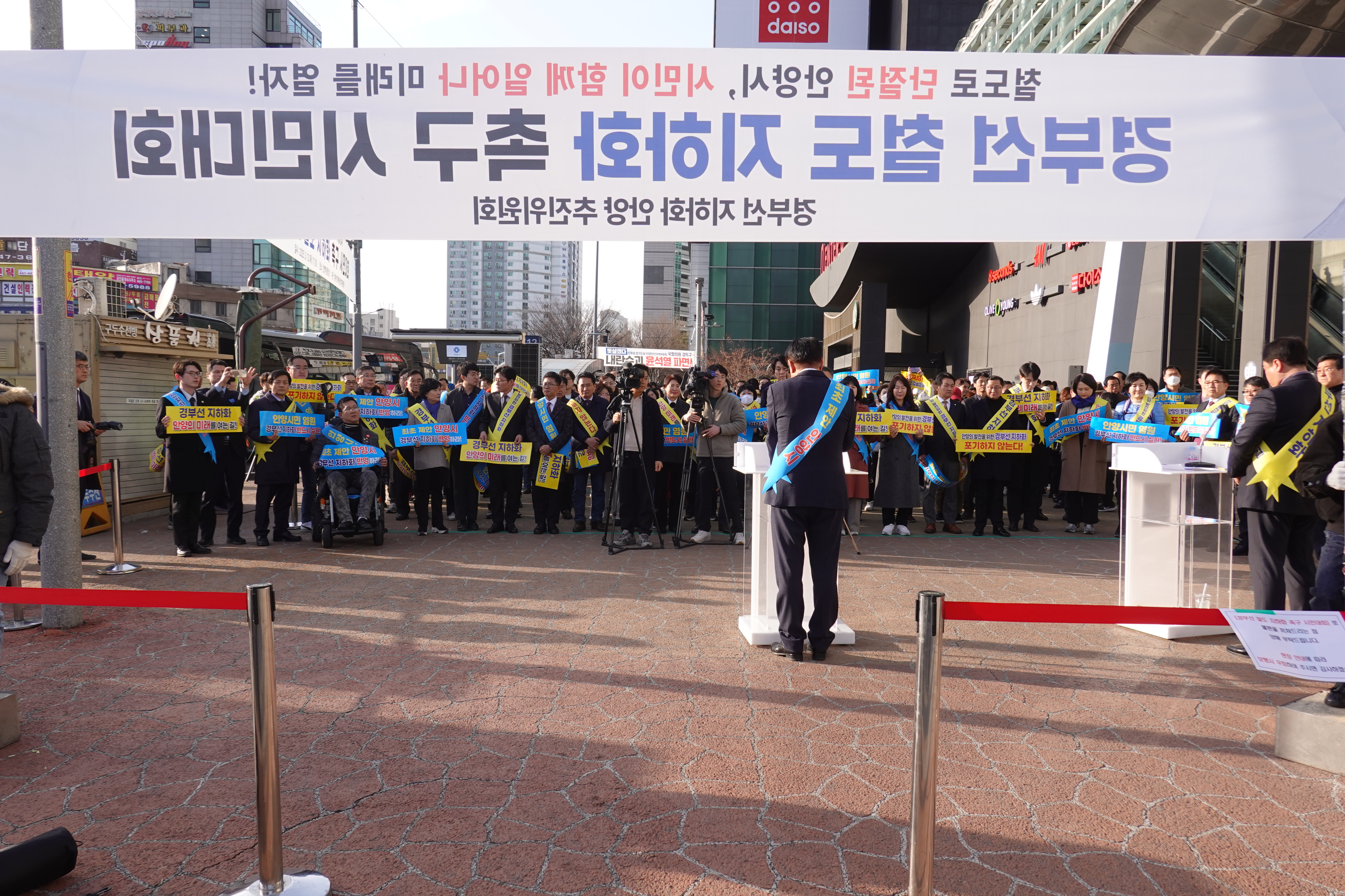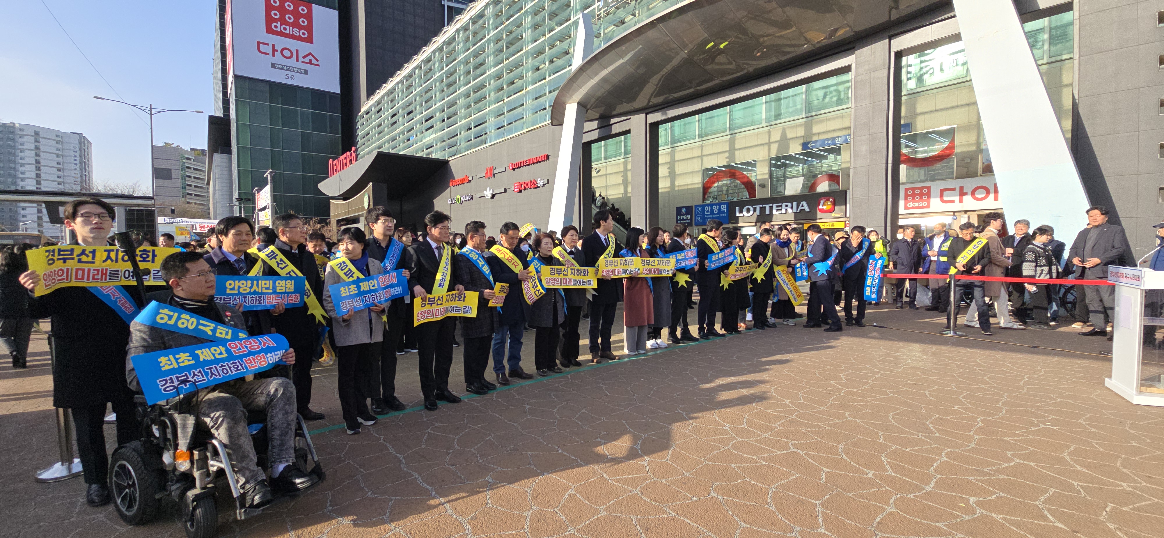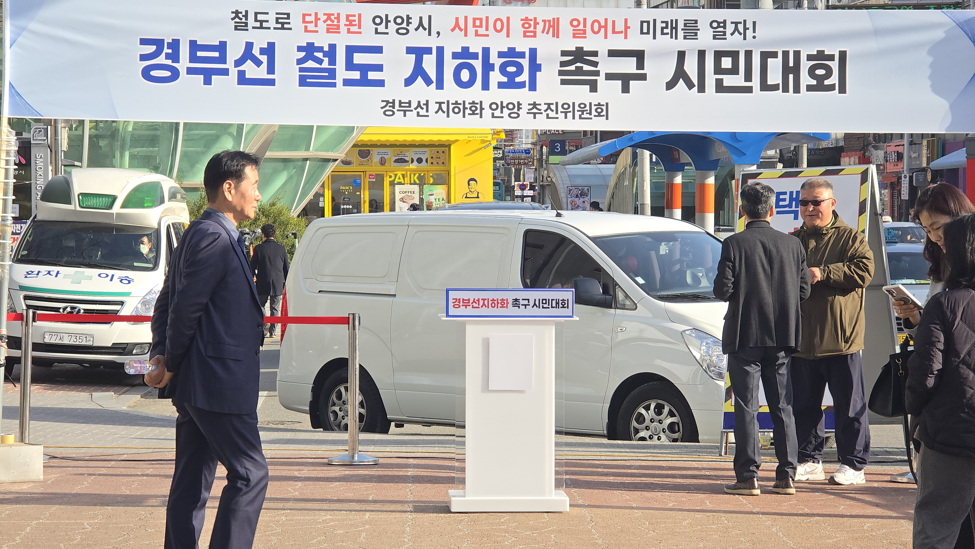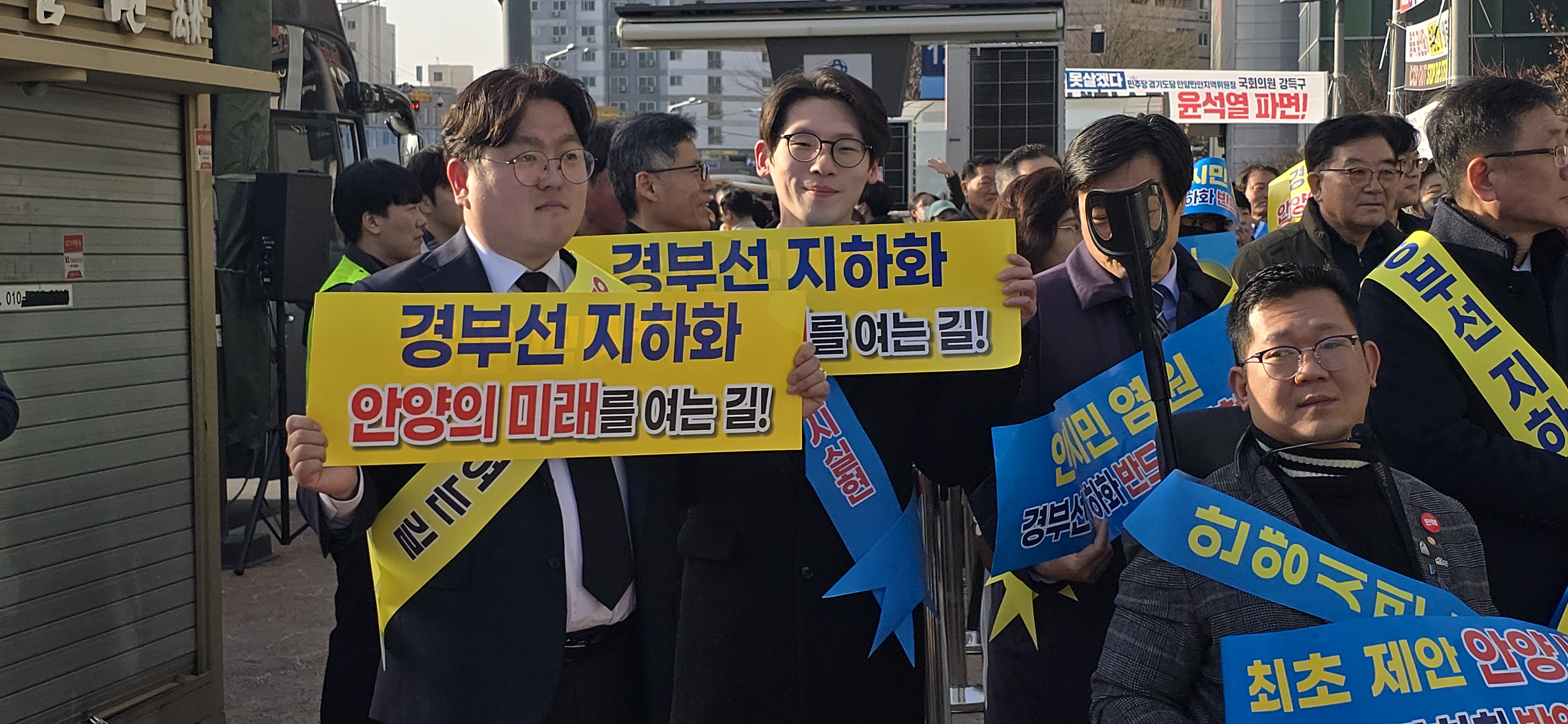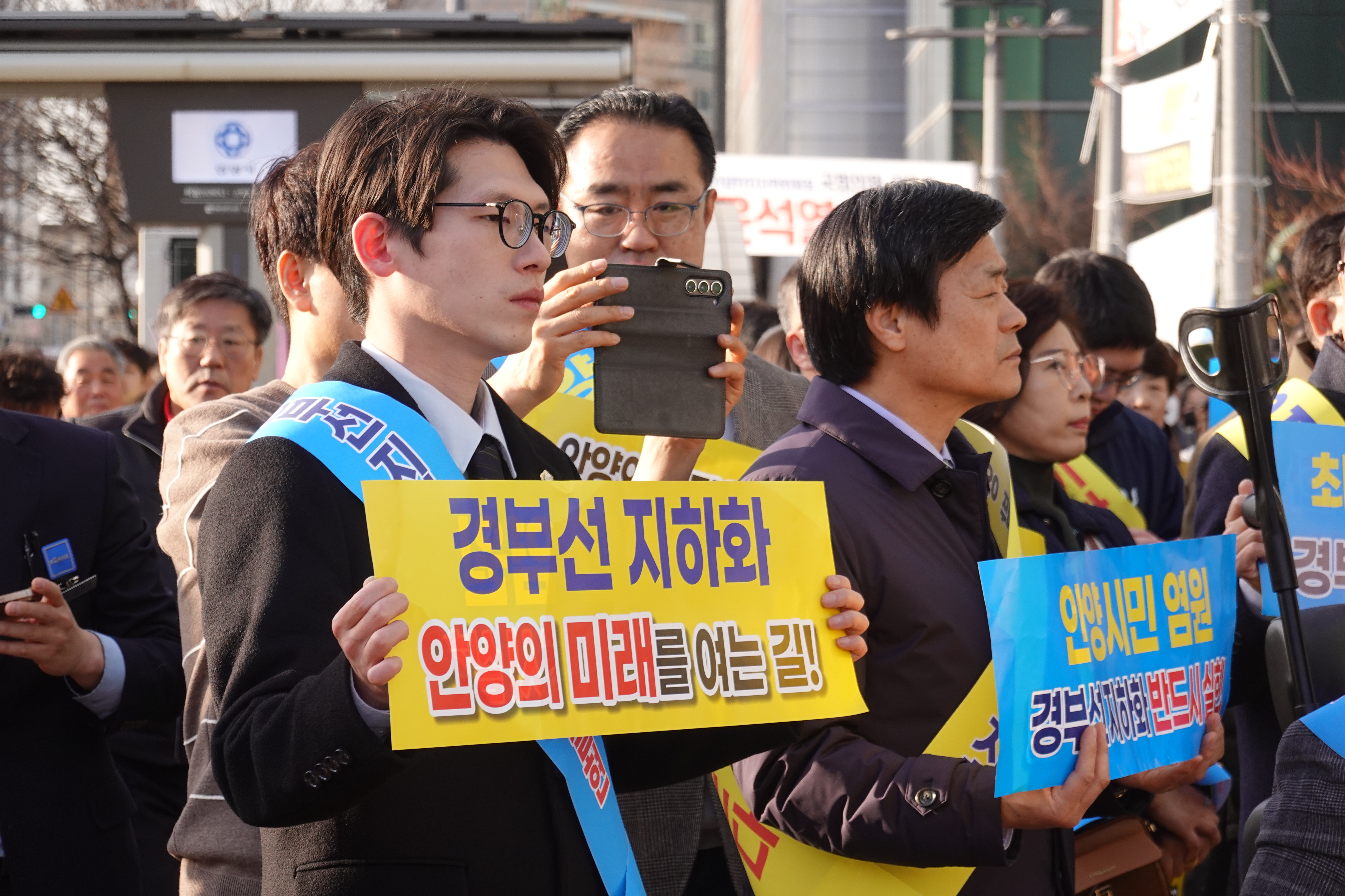 경부선 지하화 촉구 시민대회.‘경부선 지하화 안양 추진위원회’(위원장 김의중)가 13일 오후 5시 안양역 광장에서 철도 지하화 촉구 시민대회를 개최했다. 이날 행사에는 최대호 안양시장과 박준모 안양시의장을 비롯 경기도의원, 안양시의원 및 추진위원회와 시민 400여명이 참석해 경부선 철도 지하화의 필요성을 강조하고, 정부의 종합계획 반영을 촉구하는 성명서를 발표했다.