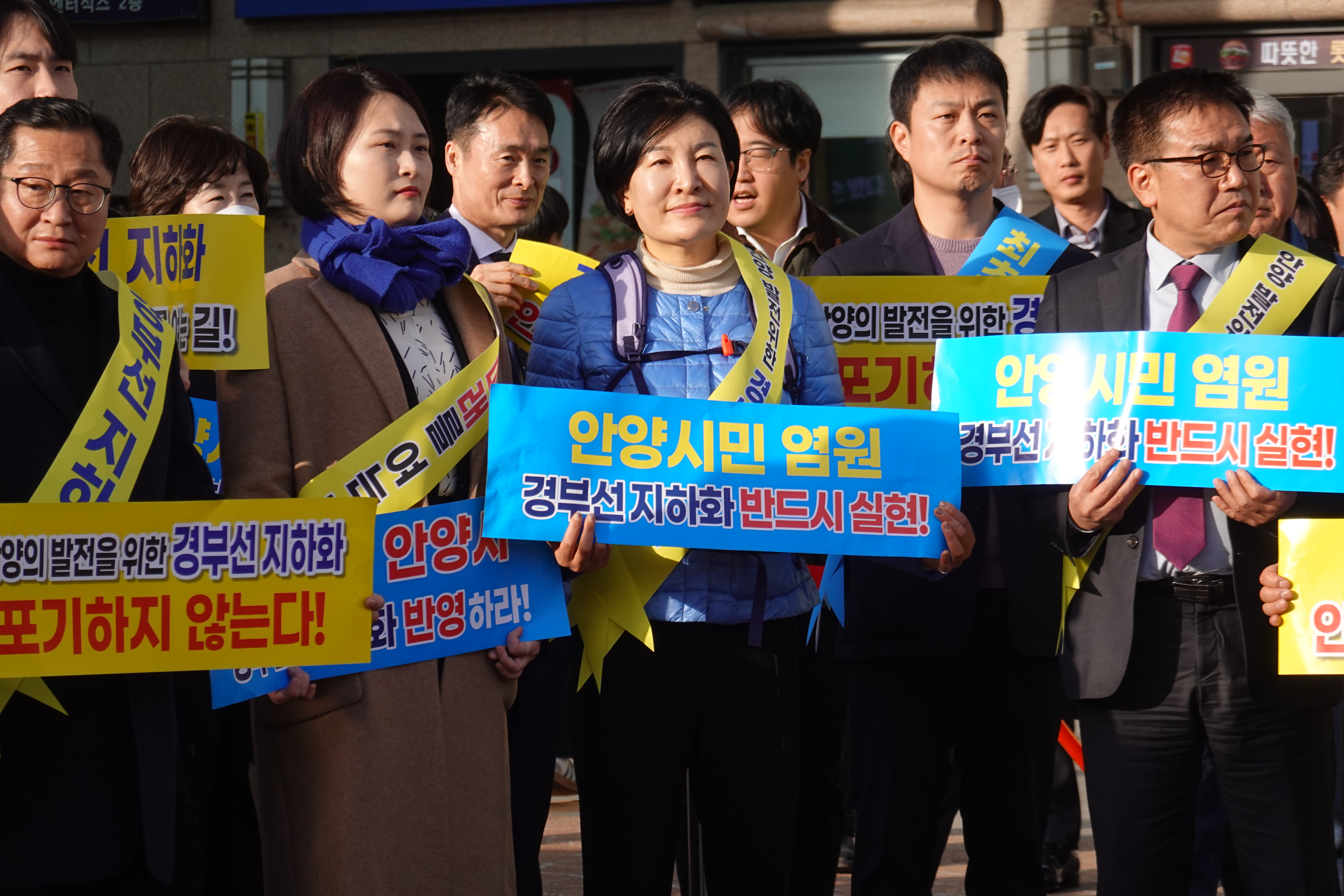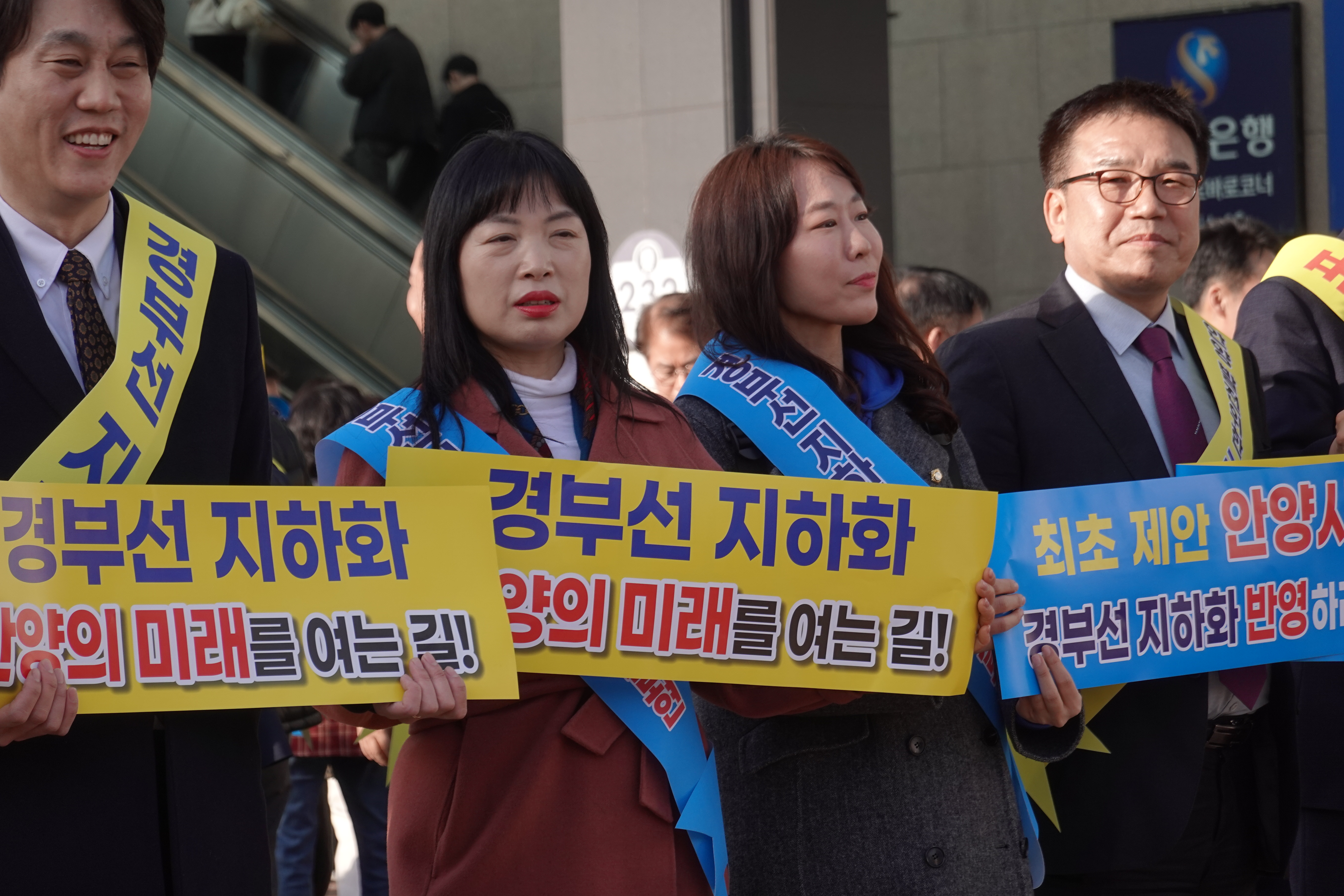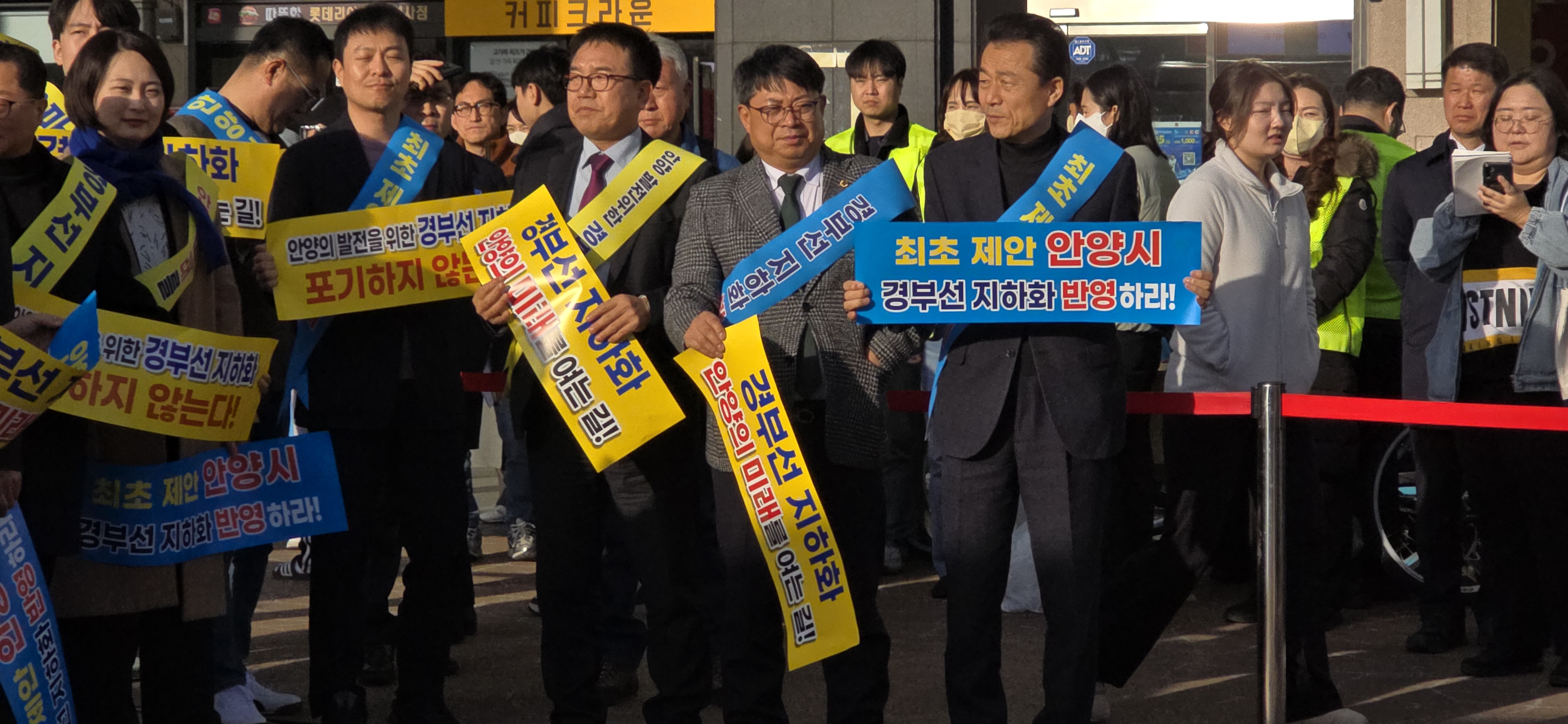 경부선 지하화 촉구 시민대회.‘경부선 지하화 안양 추진위원회’(위원장 김의중)가 13일 오후 5시 안양역 광장에서 철도 지하화 촉구 시민대회를 개최했다. 이날 행사에는 최대호 안양시장과 박준모 안양시의장을 비롯 경기도의원, 안양시의원 및 추진위원회와 시민 400여명이 참석해 경부선 철도 지하화의 필요성을 강조하고, 정부의 종합계획 반영을 촉구하는 성명서를 발표했다.