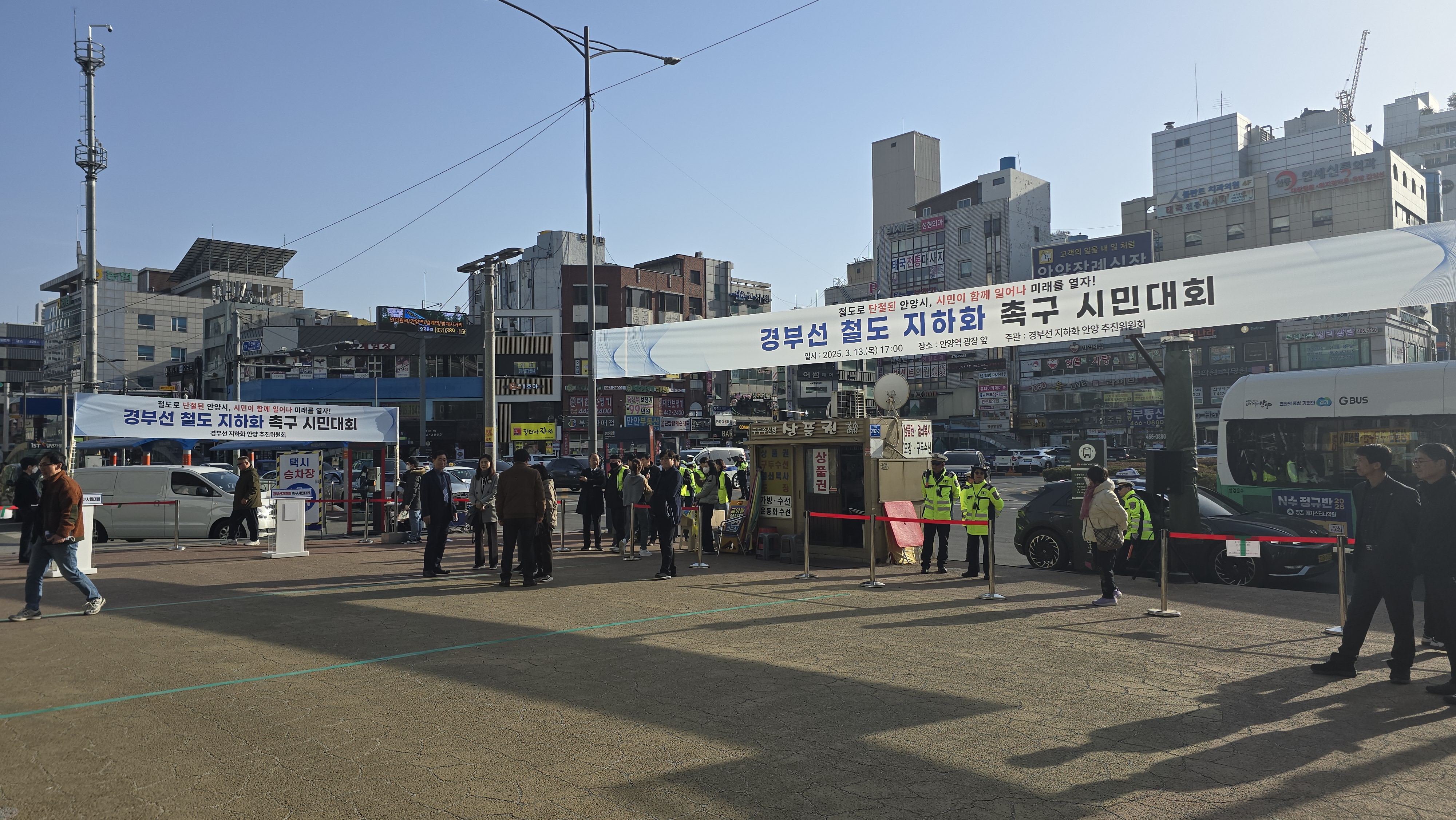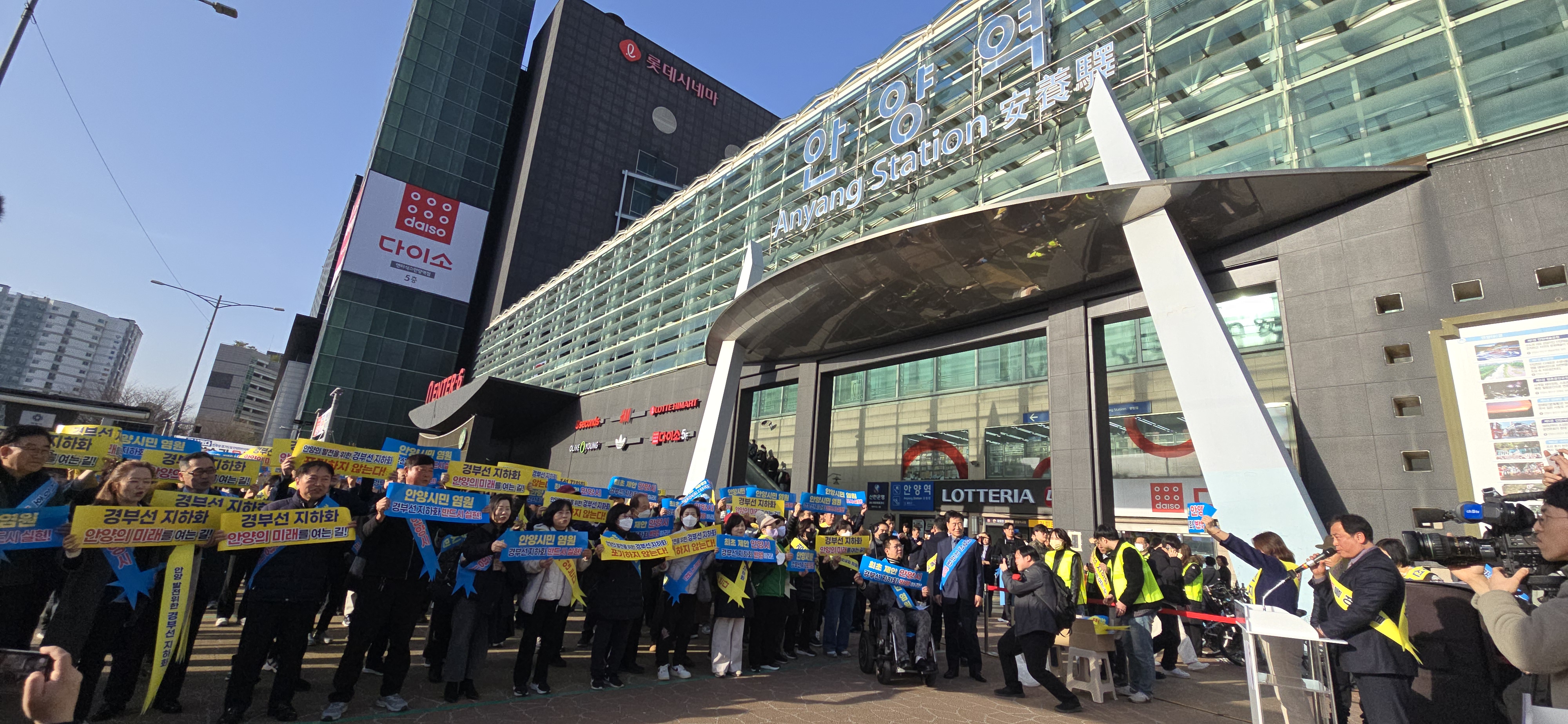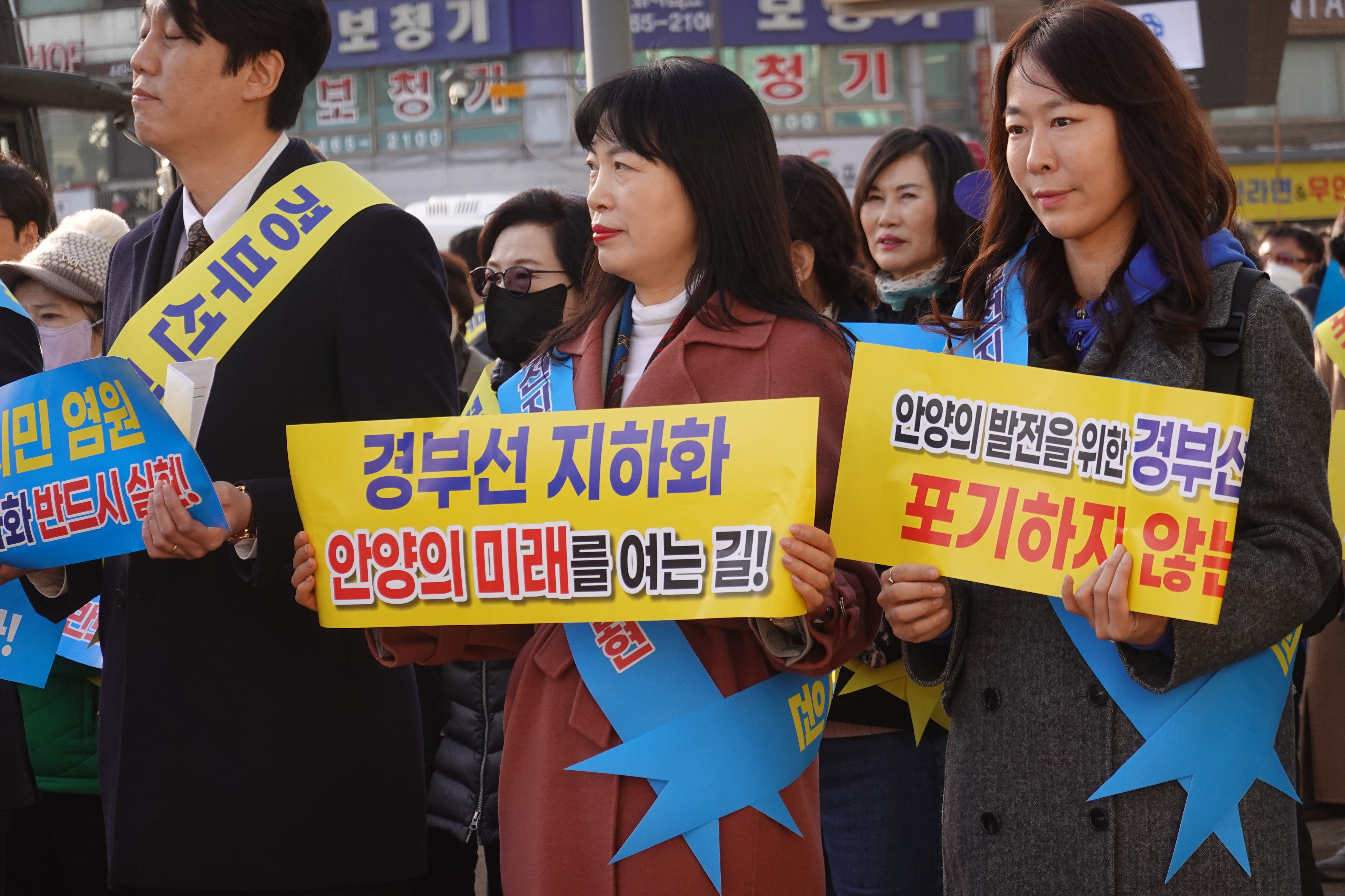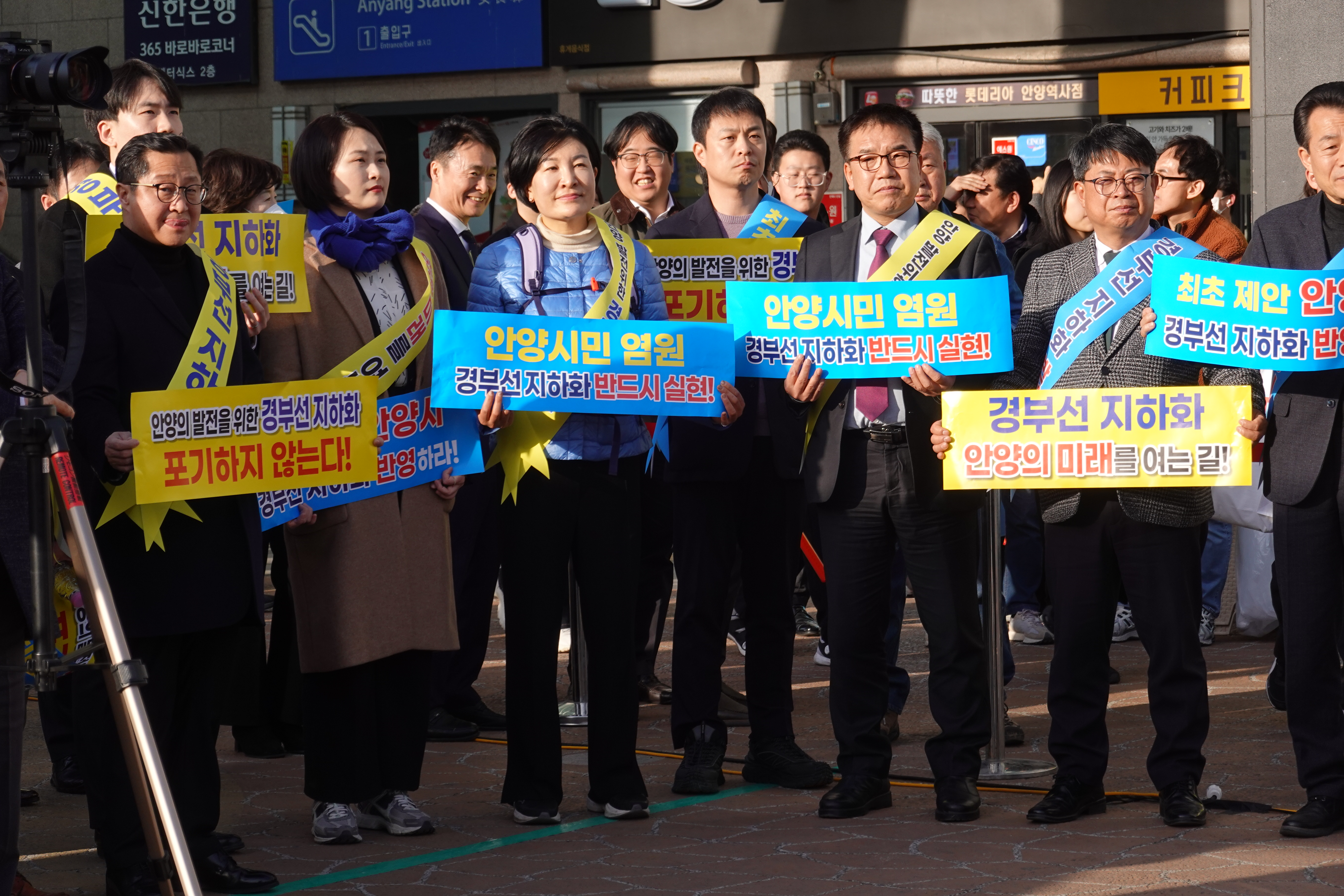 경부선 지하화 촉구 시민대회.‘경부선 지하화 안양 추진위원회’(위원장 김의중)가 13일 오후 5시 안양역 광장에서 철도 지하화 촉구 시민대회를 개최했다. 이날 행사에는 최대호 안양시장과 박준모 안양시의장을 비롯 경기도의원, 안양시의원 및 추진위원회와 시민 400여명이 참석해 경부선 철도 지하화의 필요성을 강조하고, 정부의 종합계획 반영을 촉구하는 성명서를 발표했다.