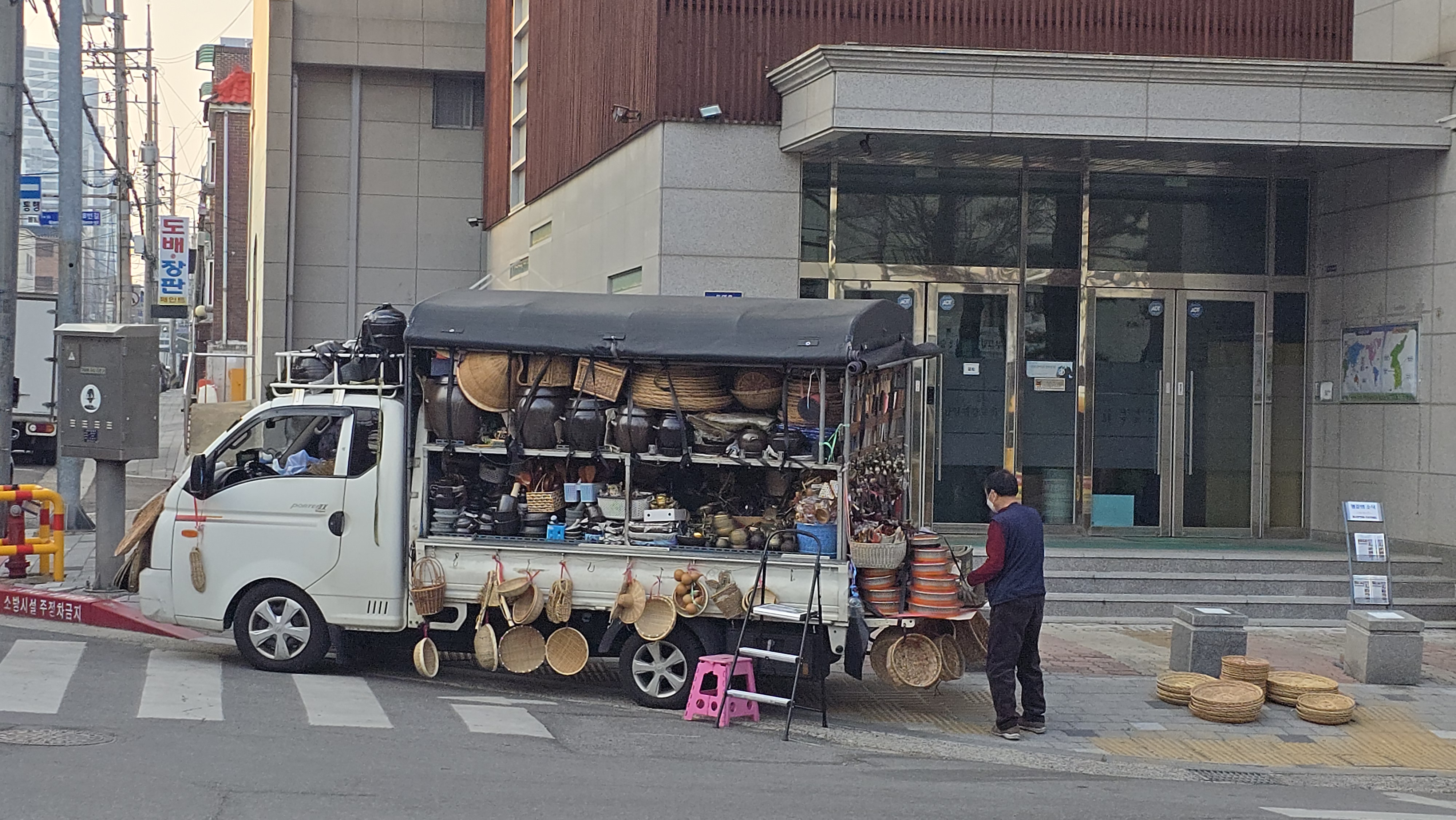 2025.03.12/ #도시기록 #안양 #동네 #골목 #만물상트럭/ 안양6동 골목에서 오랜만에 다시 만난 만물상트럭 아저씨. 전국을 누비다 오랫만에 왔다고 하네요. "언제 다시 오세요" 질문하니 정해진 날은 없고 50여일후 쯤 올듯 싶다고 하네요. 트럭에 빗자루, 주걱, 식칼, 항아리, 골동품 등 다양한 물건들이 진열된 자체가 눈길을 사로잡는 그림이지요. 어떤 물건이 있나 구경하는 것만으로도 재미가 쏠쏠합니다.