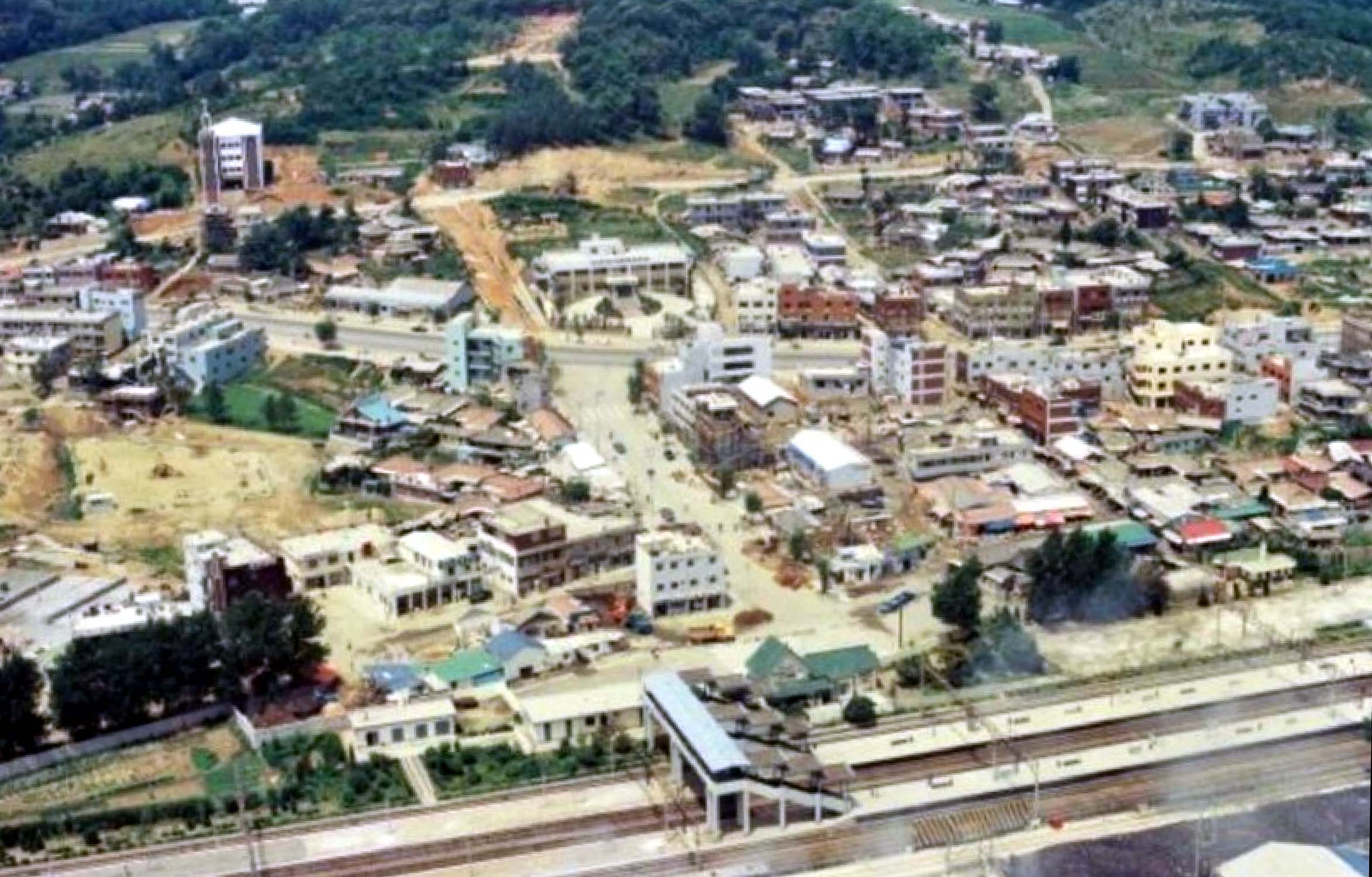 [20230129]1980년대 군포역과 군포1동 등 원도심 풍경 2023.01.29/ #아카이브 #기록 #군포역 #군포1동 #1980년 #항공사진/ 1980년에 찍은 항공사진. 군포역과 군포1동 일대 군포 원도심 모습이 한눈에 들어온다. 사진 중간을 지나는 철길과 군포역은 전철이 생긴 이후의 모습이다. 군포역 뒤로 보이는 동네는 산본1동이며 그 뒷쪽으로 보이는 녹색의 야산은 밤바위산(현 당동체육공원 일대)이다. 타임머신/옛사진읽기 2023.01.29