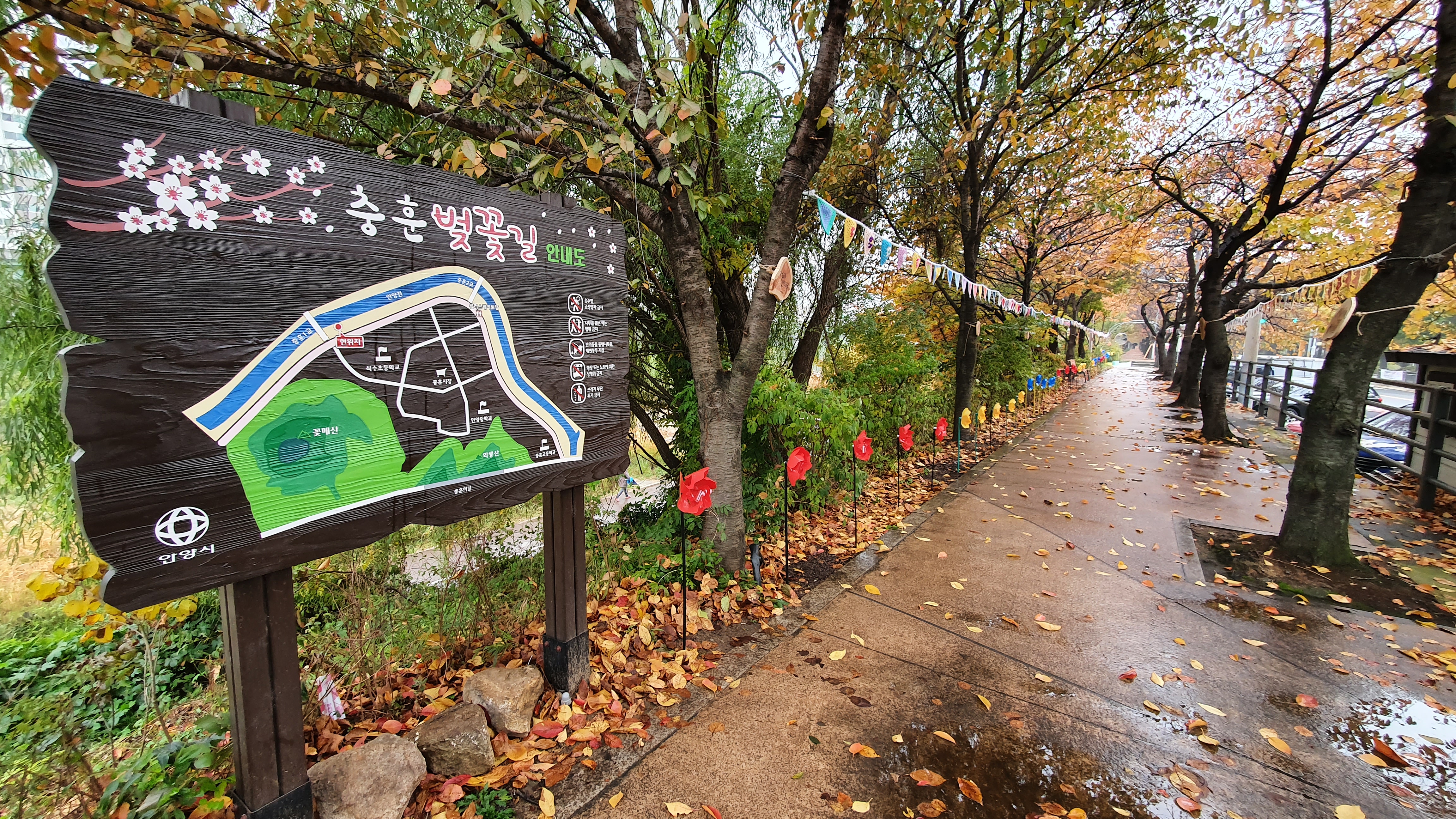 2021.11.04/ #안양 #동네 #석수3동 #충훈벚꽃길 #가을단풍. 2021 만안구청장과 우리동네 마을한바퀴 길라잡이로 나선지 마지막날인 7일차 여정 석수3동에서 둘러본 충훈벚꽃길. 벚봄이 피는 봄 보다는 울긋불긋 단풍이 물든 가을이 멋진듯 싶습니다. 아름다운 산책로 중간에 설치된 벤치에 앉아 음악도 듣고 책도 읽고, 스마트폰을 하는 모습이 고즈녁한 가을 정취를 느낄수 있는 아름다운 풍경입니다. 한가지 안타까운 것은 떨어지는 낙엽이 산책길에 쌓여야 밟고 거니는 멋도 있고 포토존 사진도 찍을수 있는데 청소를 부지런히 잘하시는 어르신, 또는 주민이 았으신지. 알부구간에는 깨끗이 치워버려 그 멋을 지속적으로 느껴보지 못한다는 점이지요. 이왕이면 석수3동에서 충훈벚꽃길을 가을에 낙엽을 밟으며 걷기 좋은 아름..