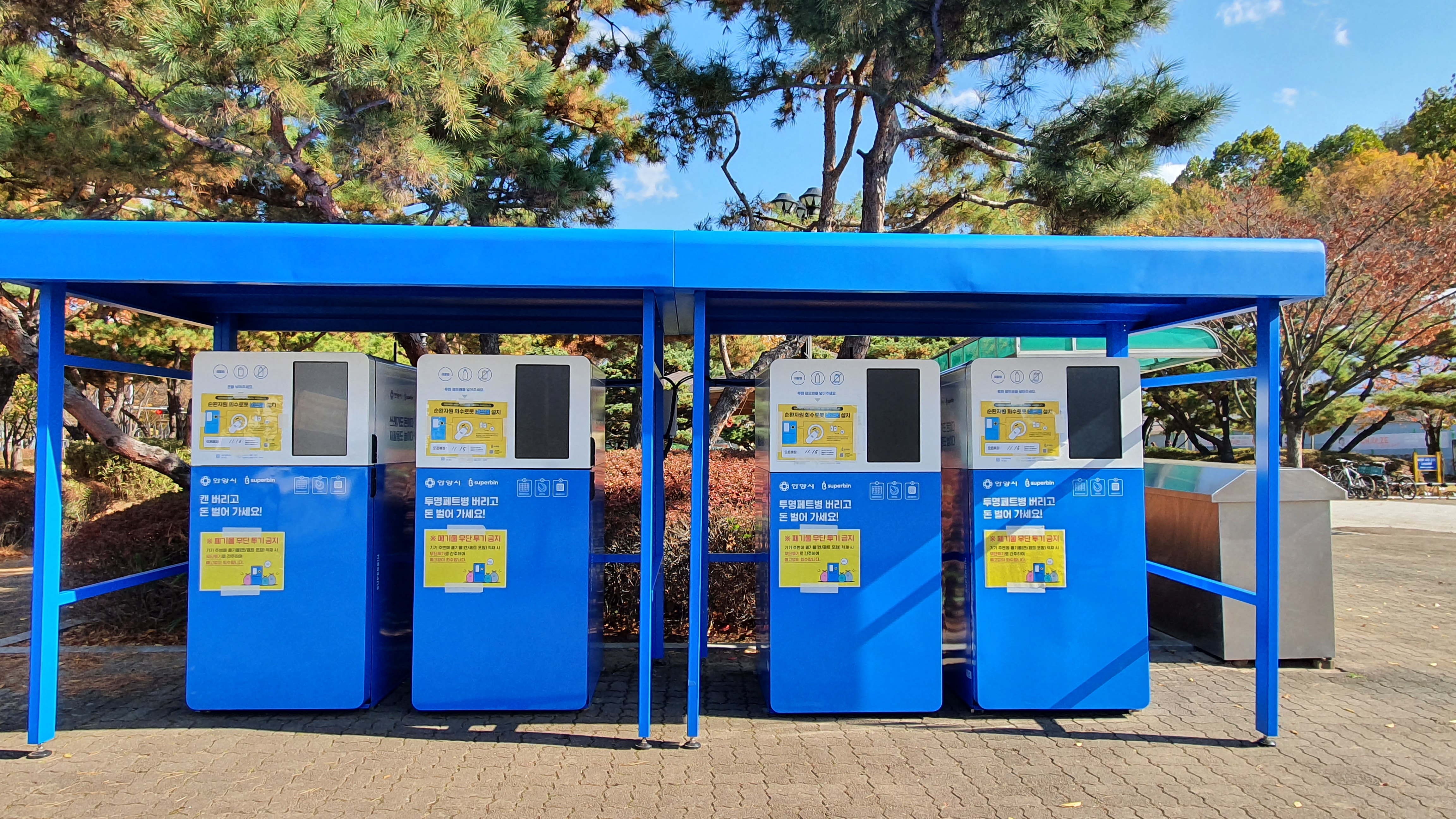 2021.11.12/ #안양 #자유공원 #폐자원수거기 #네프론/ 안양 자유공원에 설치된 폐자원수거기 네프론 4대 . 네프론은 지난 2015년 6월 설립한 친환경 스타트 기업 수퍼빈이 제작한 자판기 형태의 순환자원 회수로봇으로 투명패병과 캔을 깨끗하게 씻어서 회수로봇에 넣으면 하나에 10원씩 적립되고 2천원이상이면 계좌이체를할수 있다. 자판기처럼 생긴 네프론에 쓰레기를 넣으면 인공지능(AI)이 쓰레기 형태를 판독해 자동으로 분류한다. 재활용 가능한 자원만 선별해 회수하고 이용자에게 일정 금액을 지불하는 구조다. 현재 전국 각지에 설치되고 있는데 안양시는 1차로 시 전역에 100대를 설치한다는 계획이다.