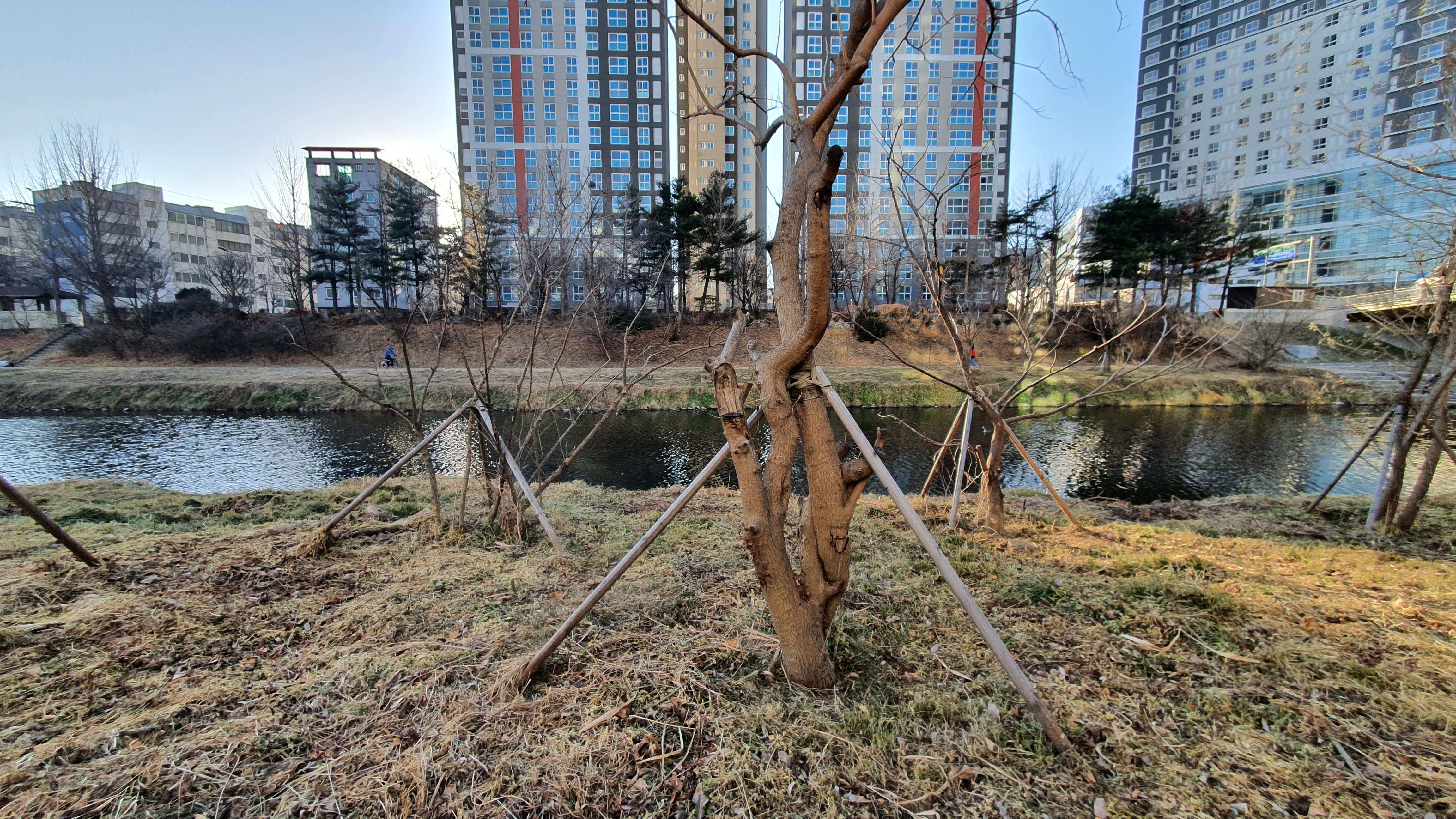 [20220119]천변 나무 짜르면서 새로 나무 심는 안양시의 요상한 풍경 2022.01.16/ #안양 #안양천 #안양산책/ 안양천을 산책하면서 안양7동 아이에스비즈타워 건너편 천변에서 목격한 납둑하기 어려운 요상한 풍경. 안양시가 여른철 홍수와 수해를 대비해 천변에 심어진 나무들을 모조리 베어내고 판국에 이곳에는 최근 나무들을 심었다. 왜 나무들을 심었을까 알수가 없다. 안양시 생태하천과장도 모른다고 한다.. 대체 누가 무엇 때문에 심었을까. 천변에서 잘 자라온 수많은 나무들을 베어내면서 왜? 도시사진기록/골목풍경 2022.01.19